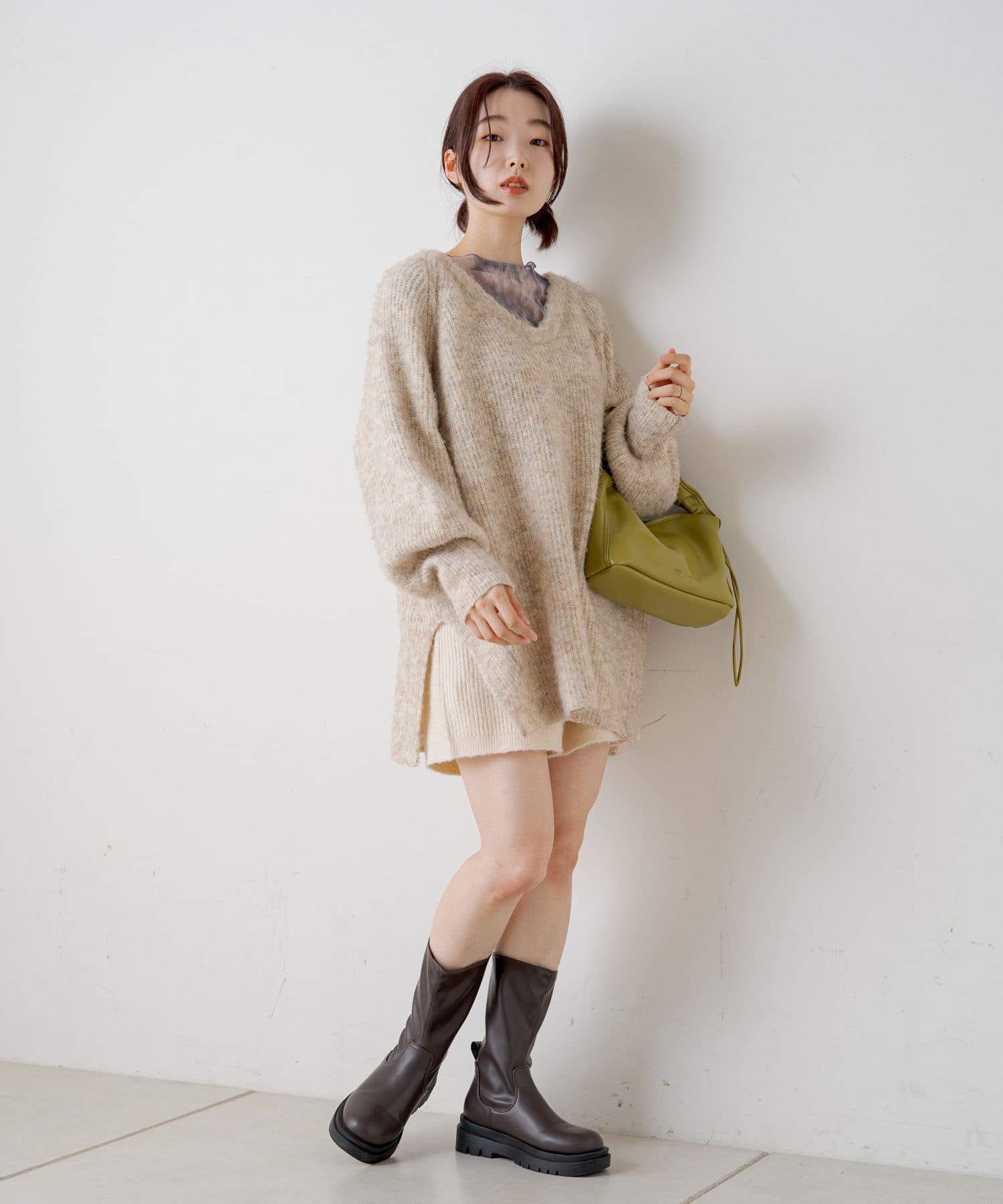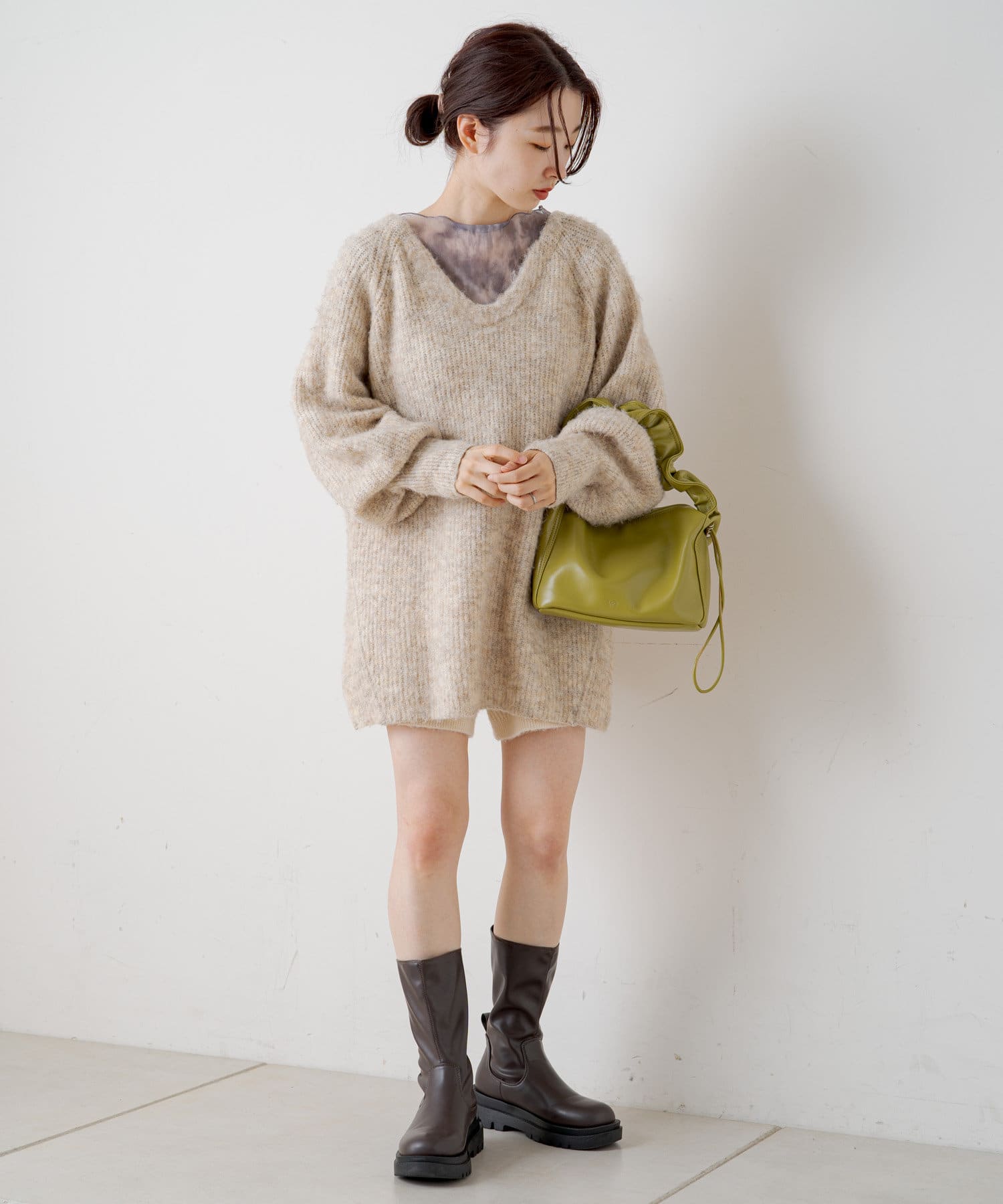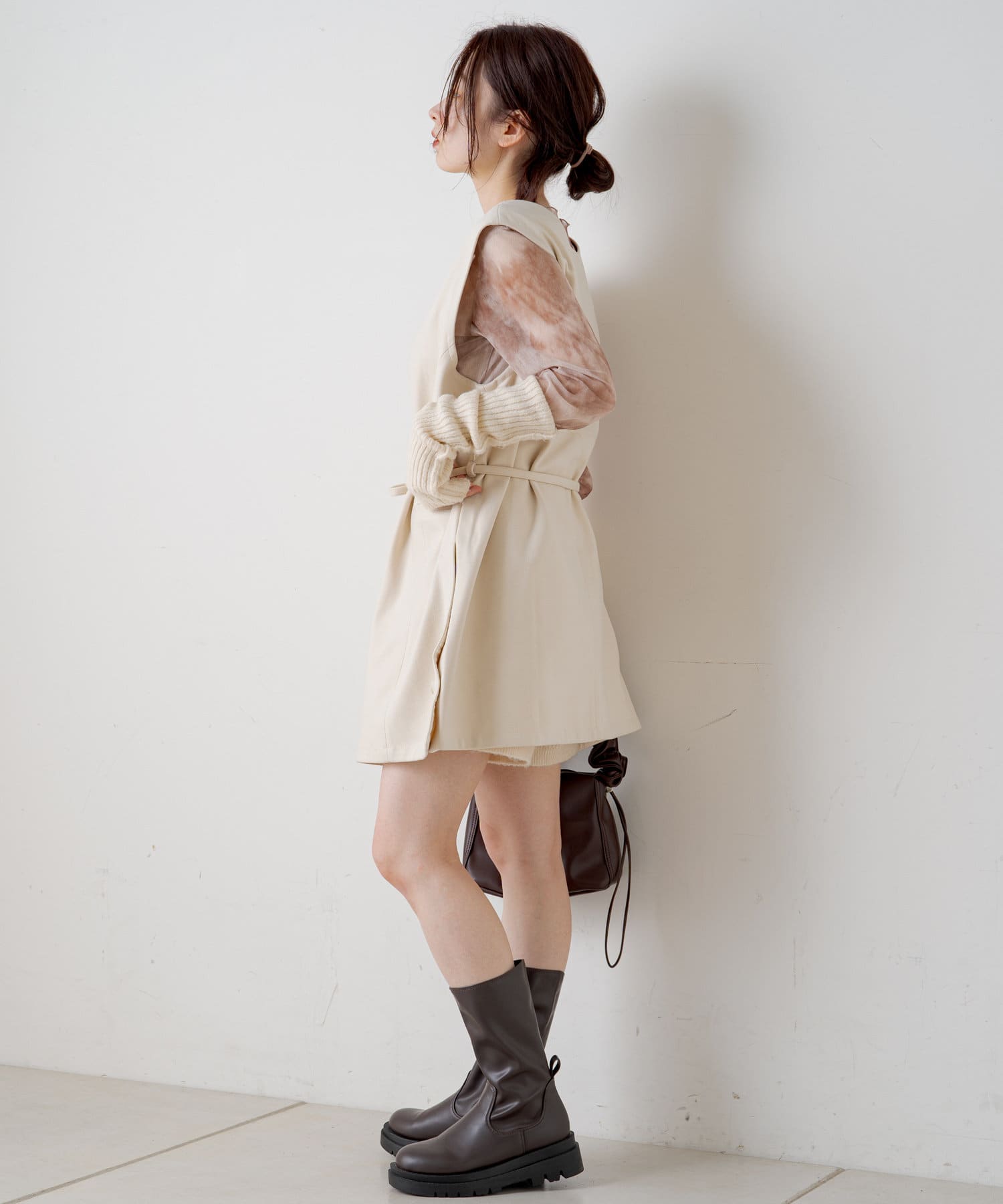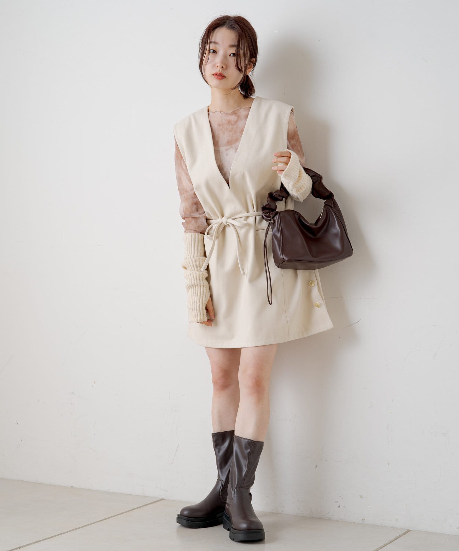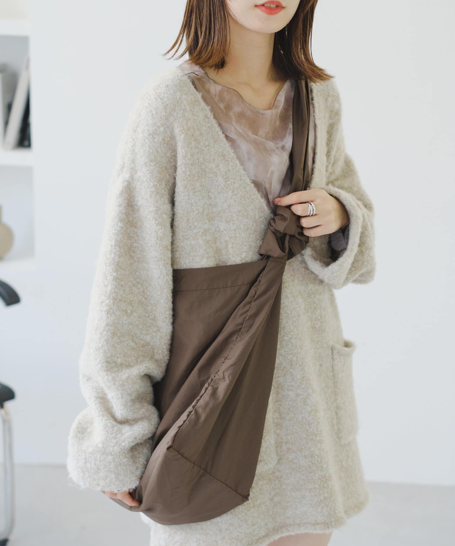 同系色のインナー付きなので一枚でも着用でき、オールシーズンお使いいただけます。