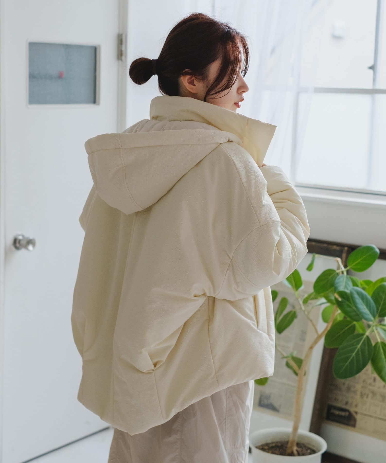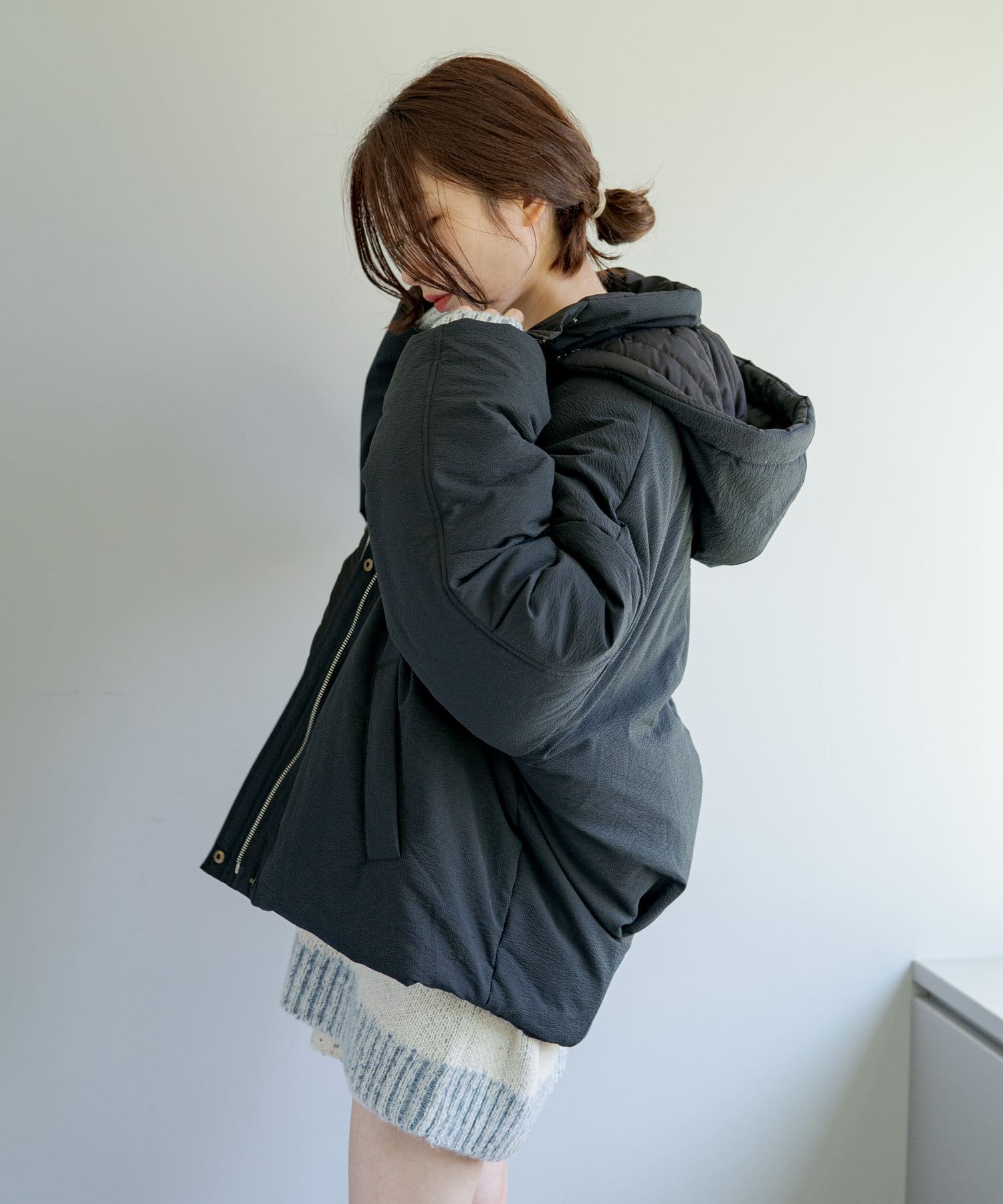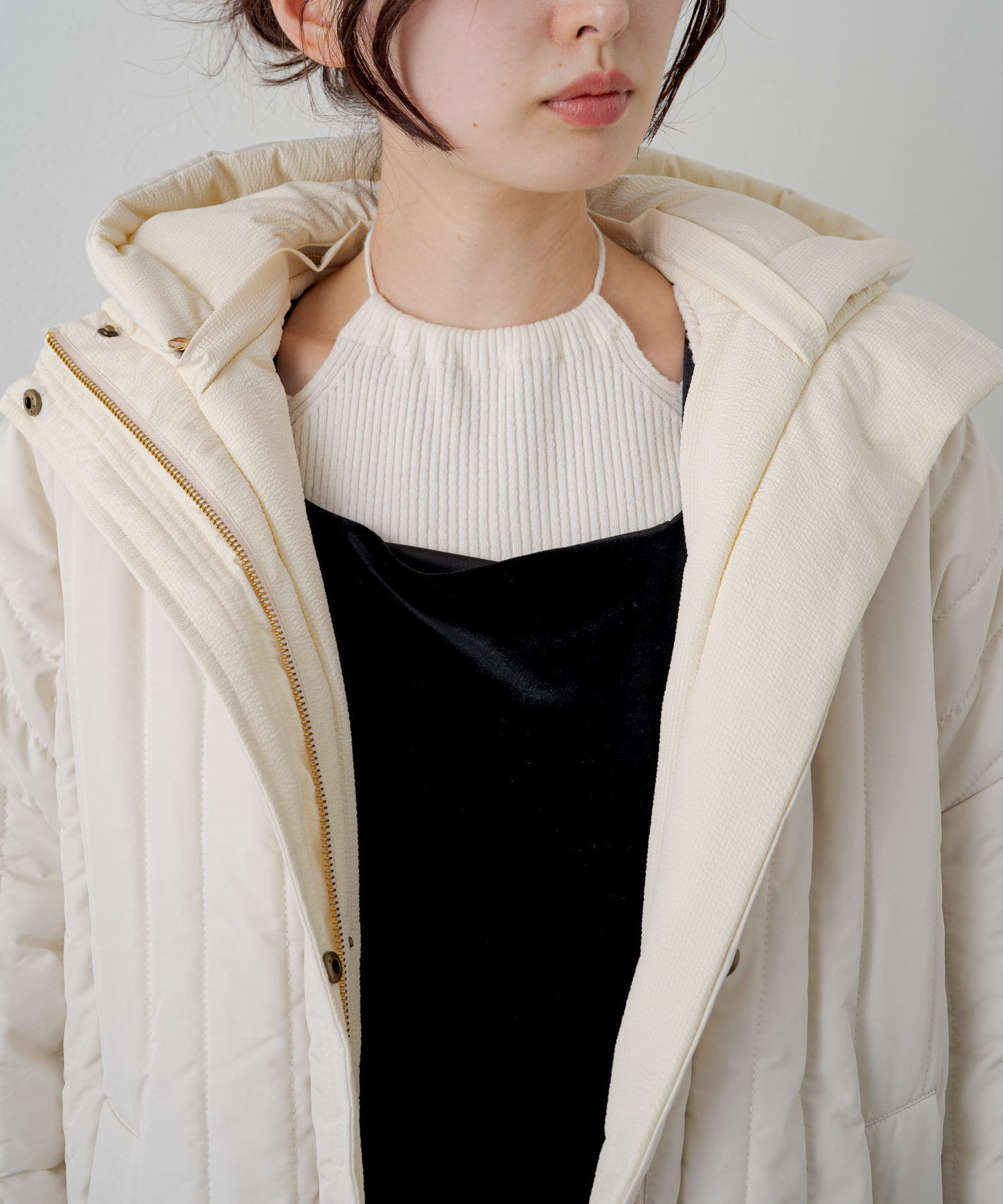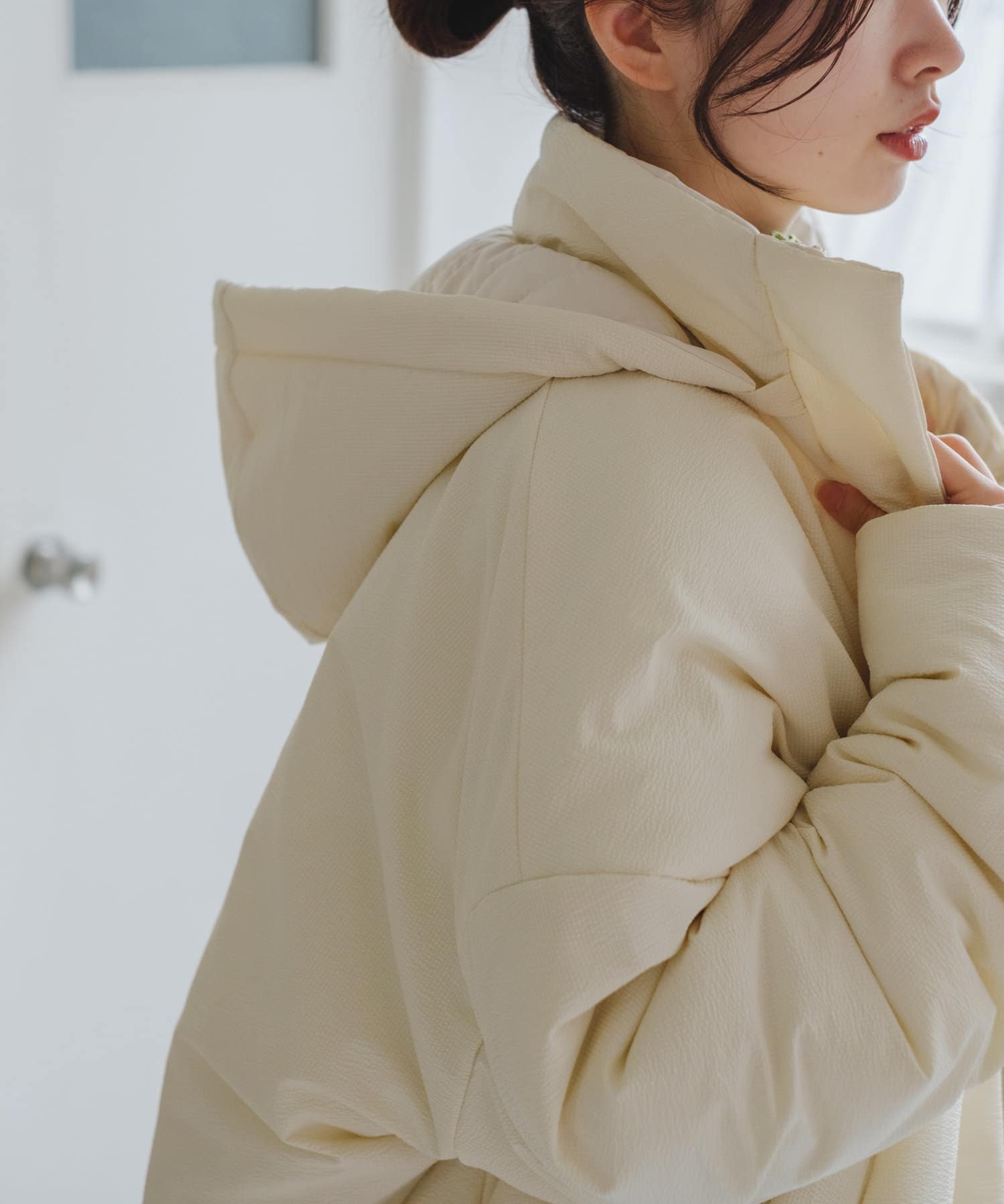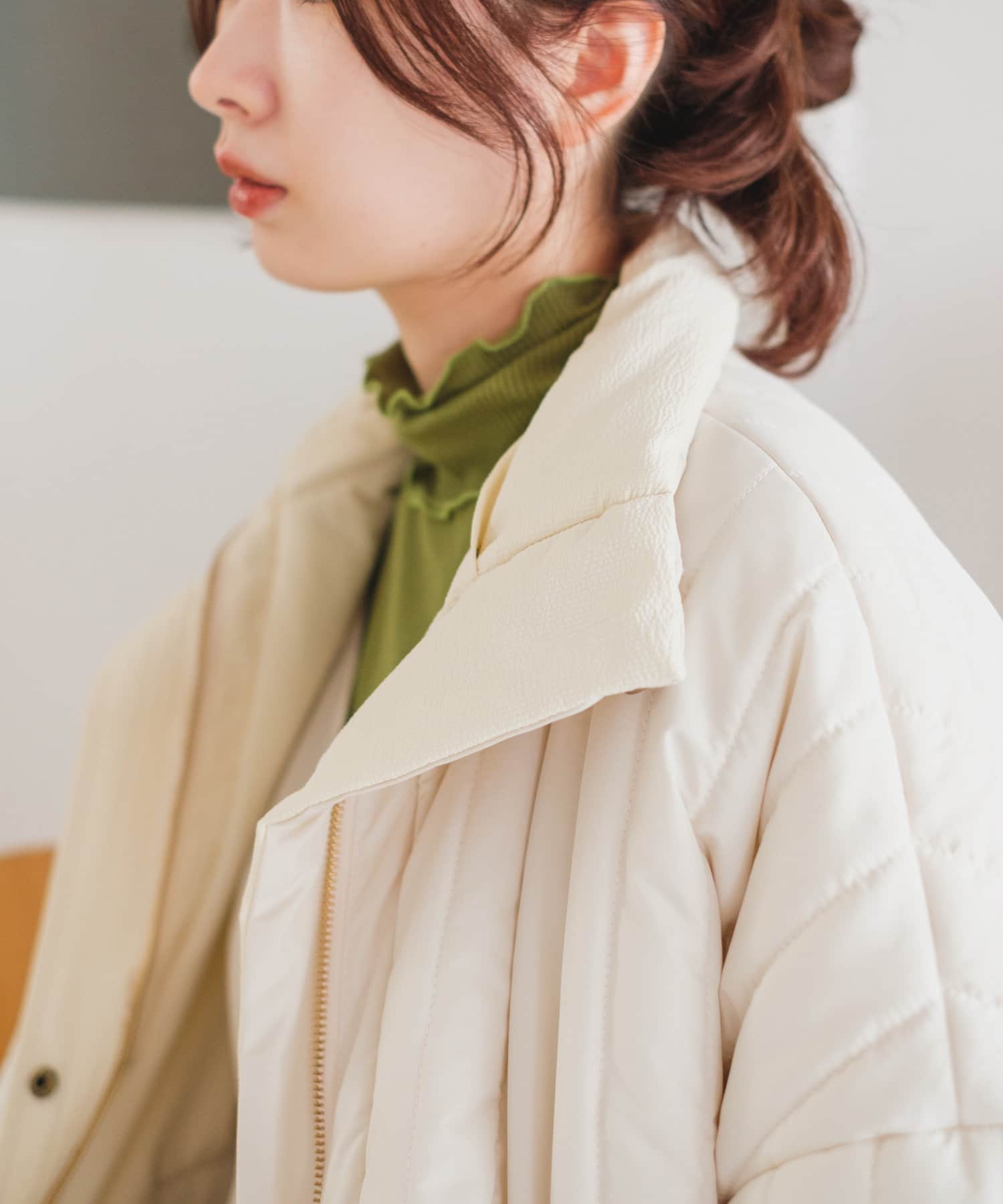 しゃらっとした独特な優しい肌触りのペーパータッチの中綿コート。