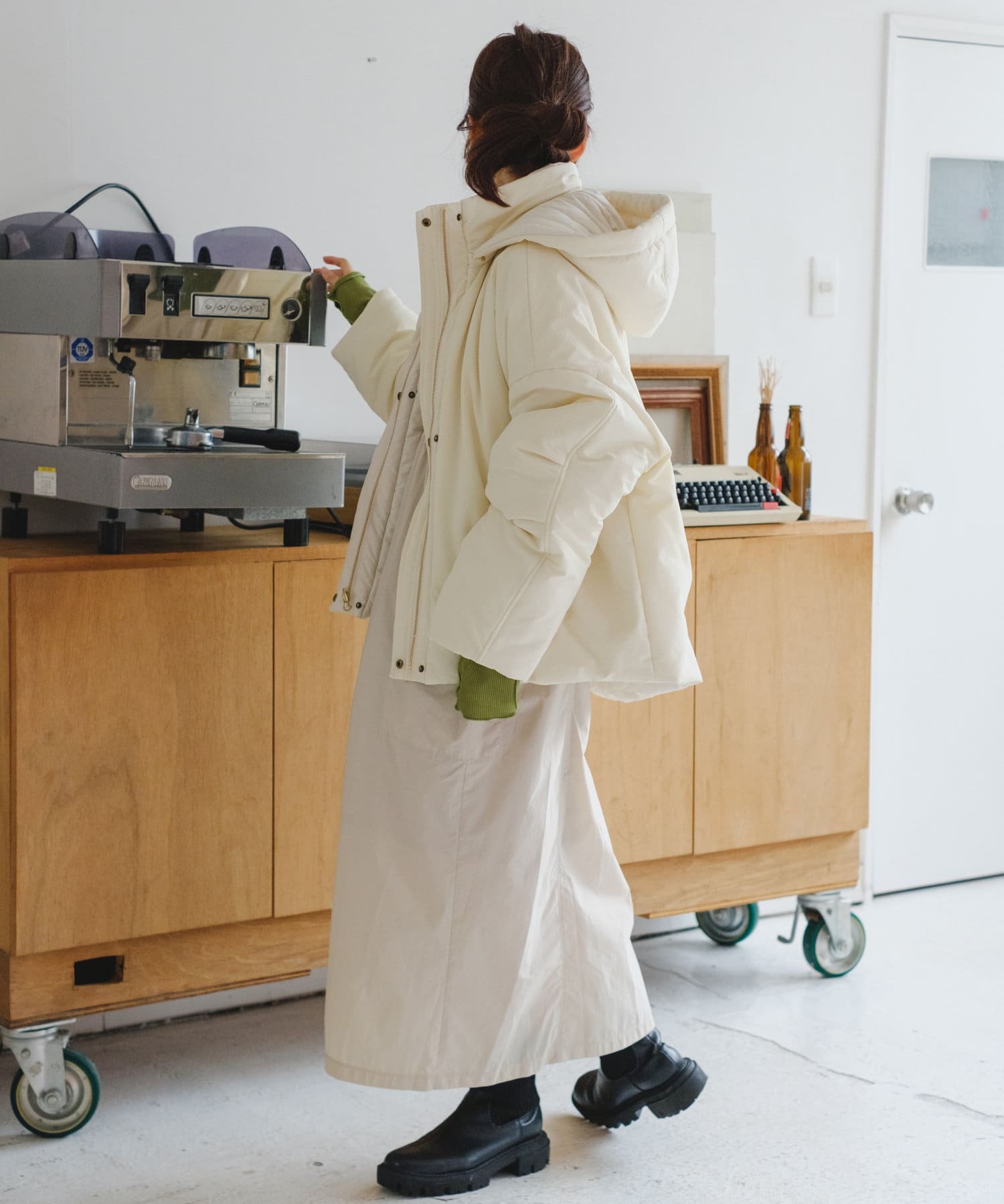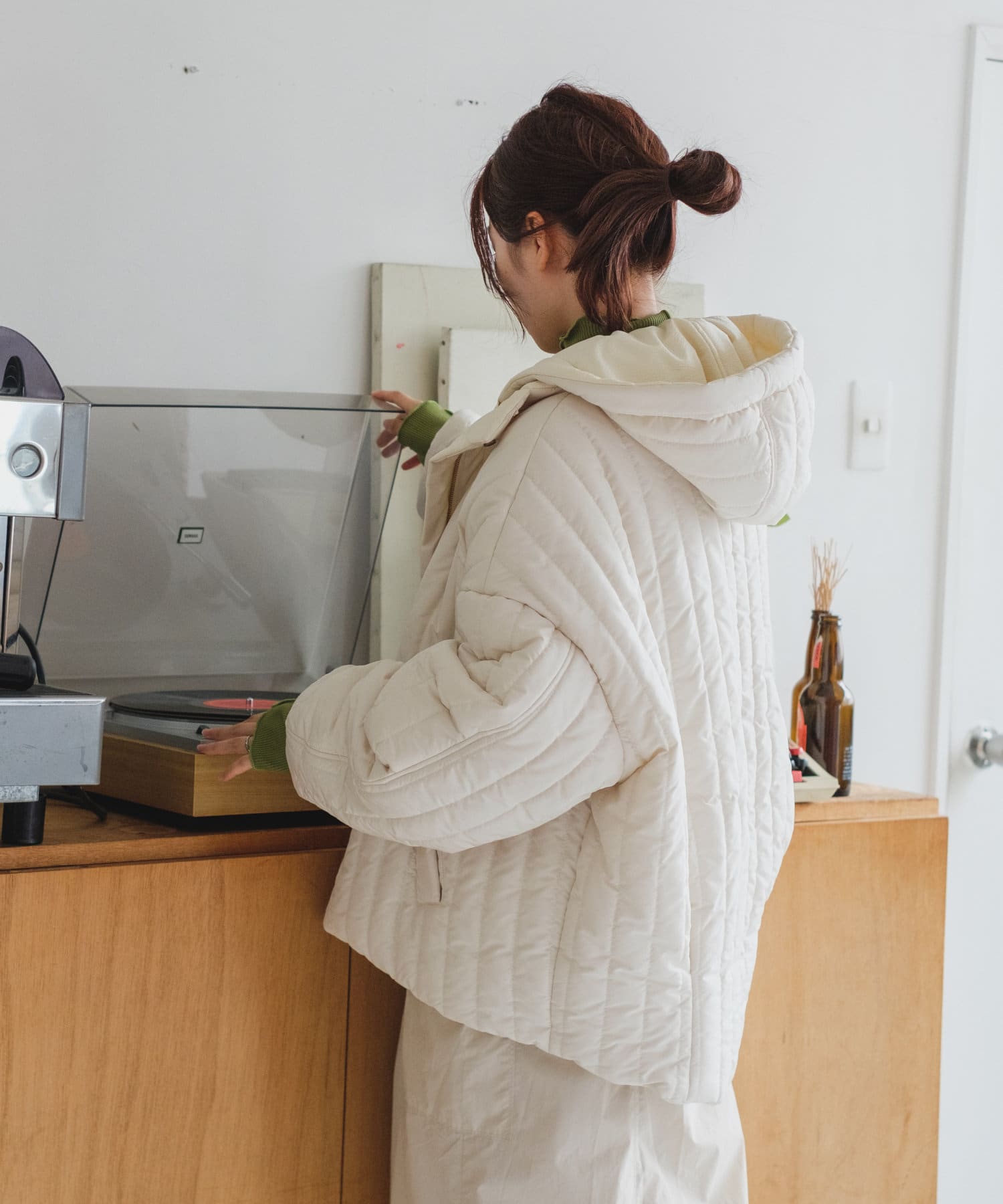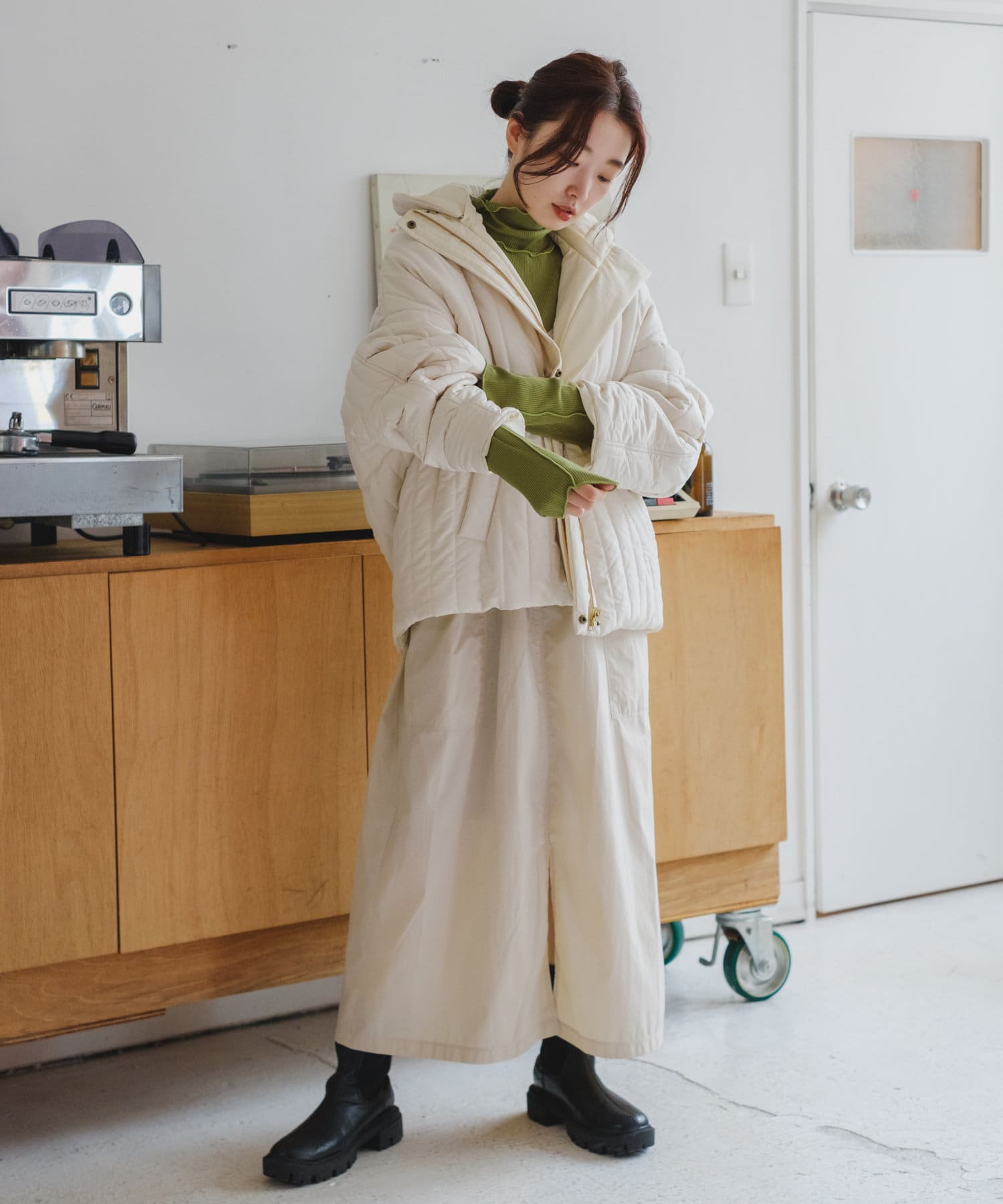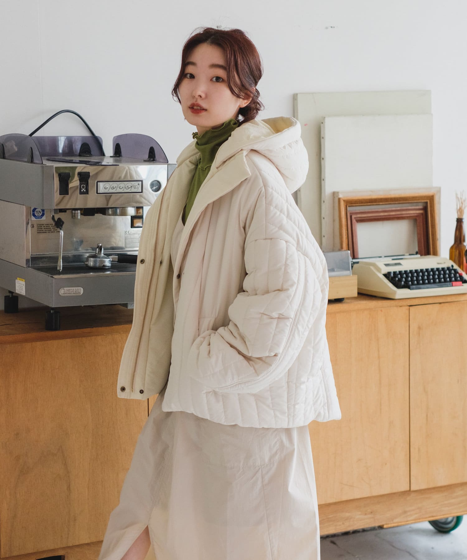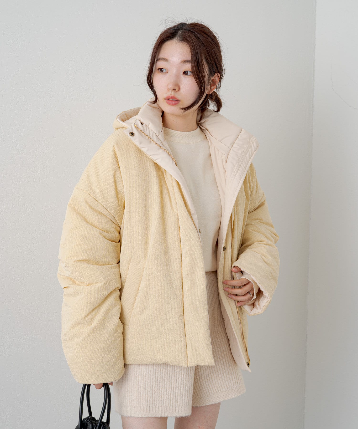 しゃらっとした独特な優しい肌触りのペーパータッチの中綿コート。