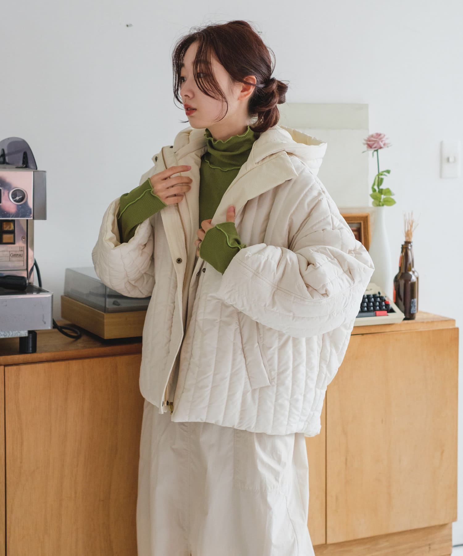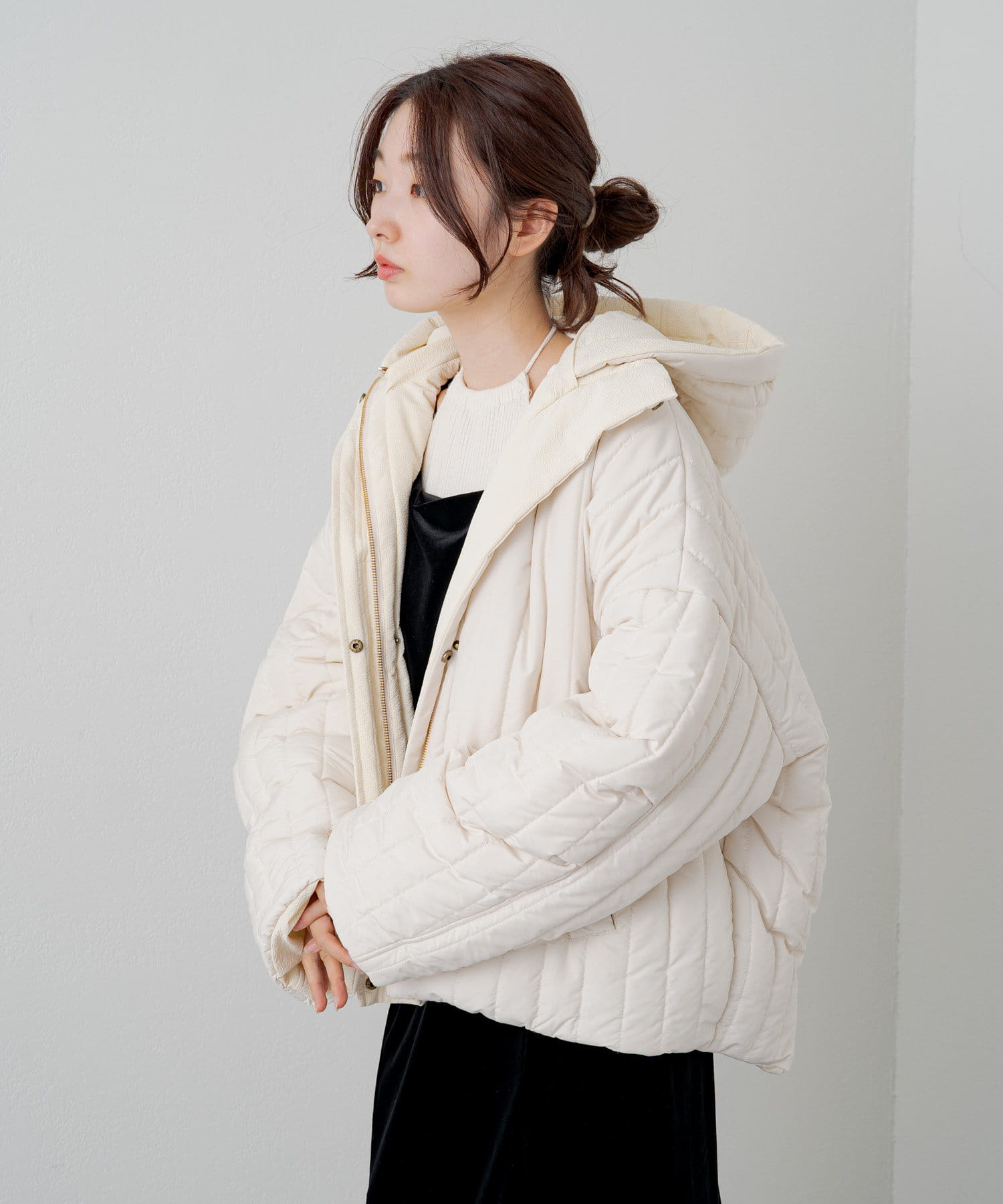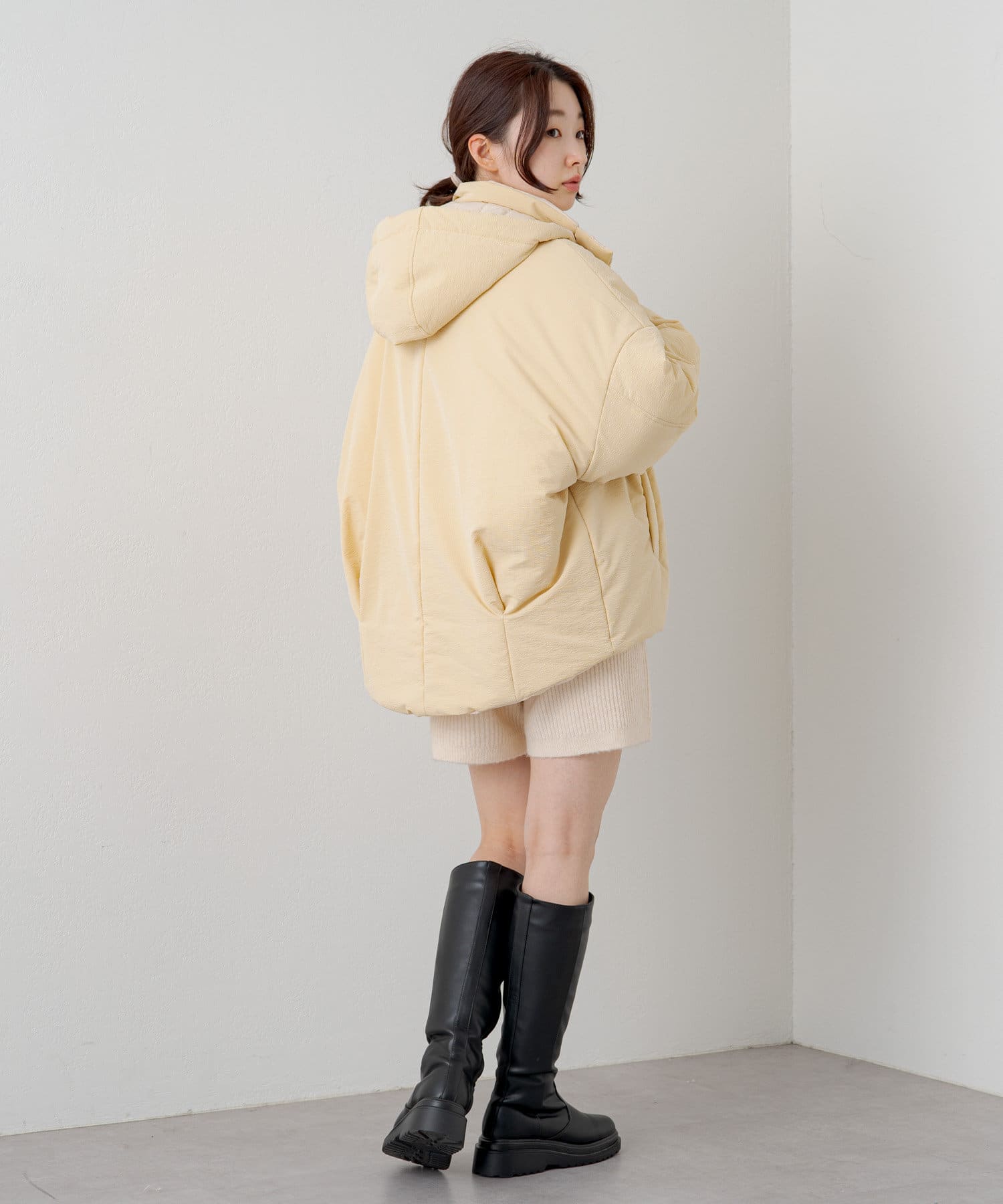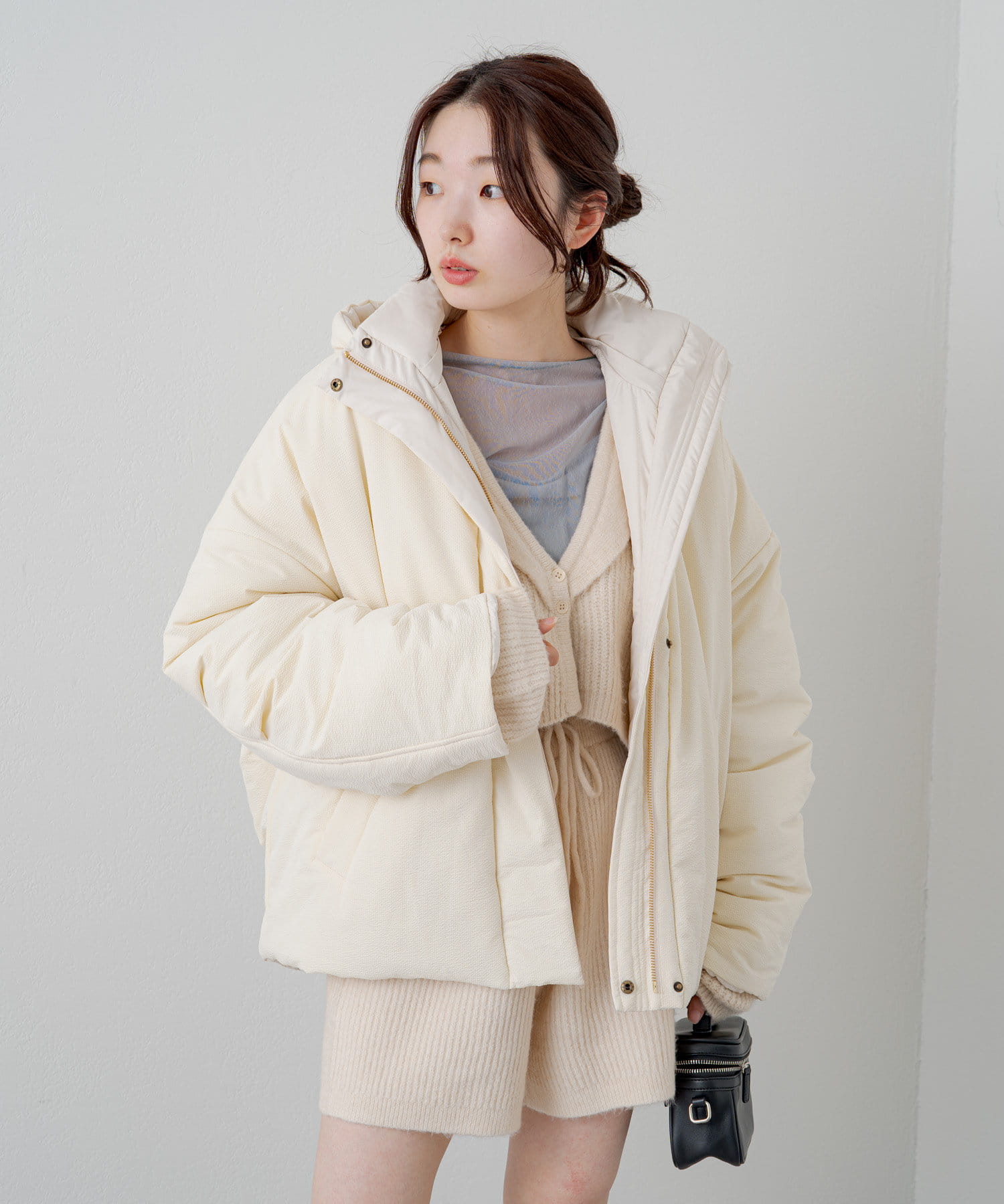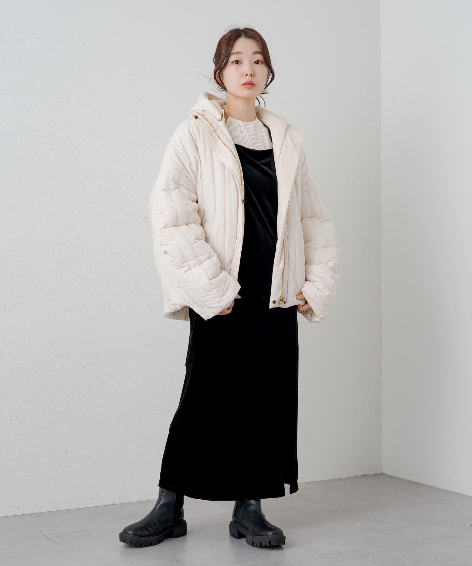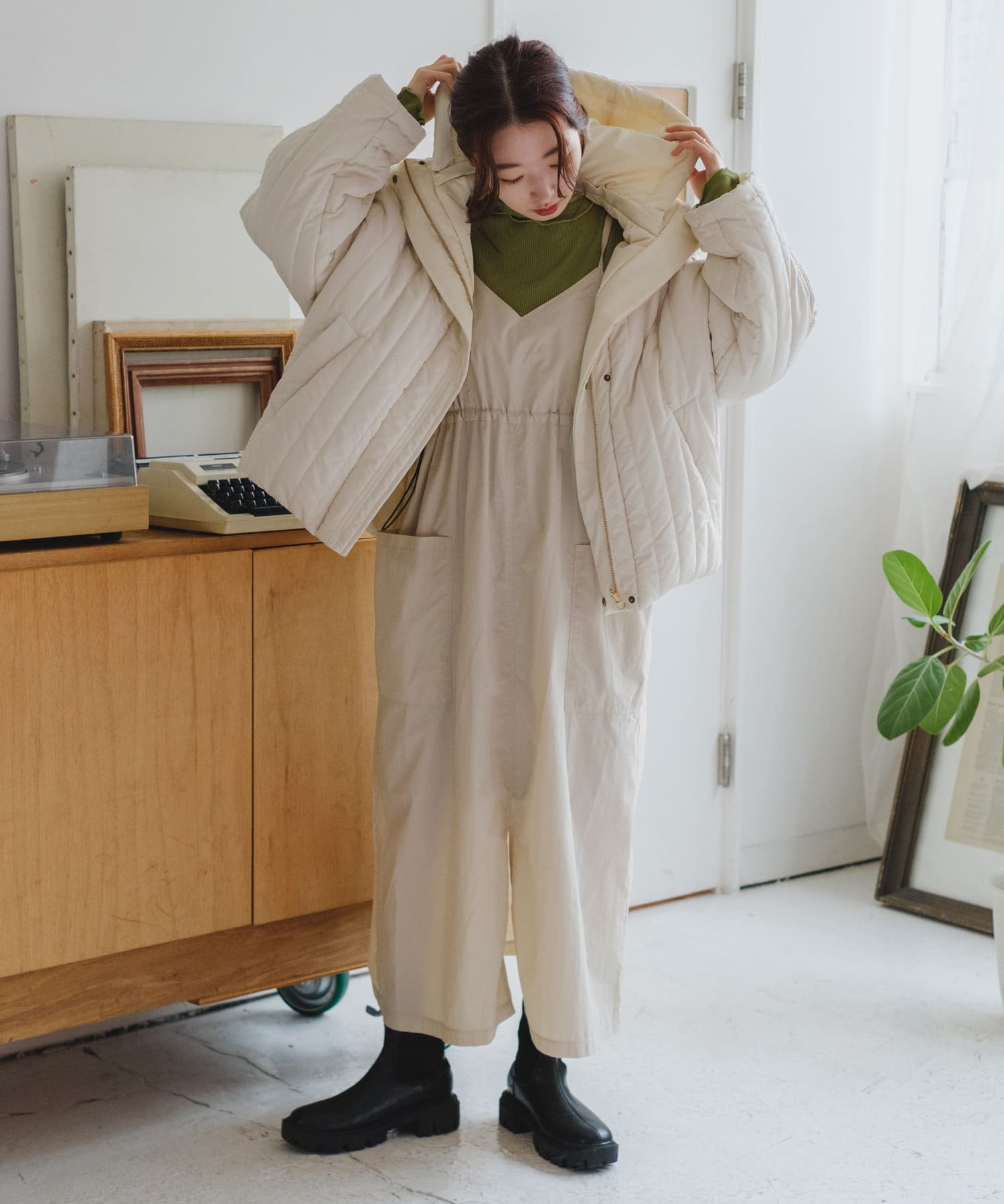 しゃらっとした独特な優しい肌触りのペーパータッチの中綿コート。