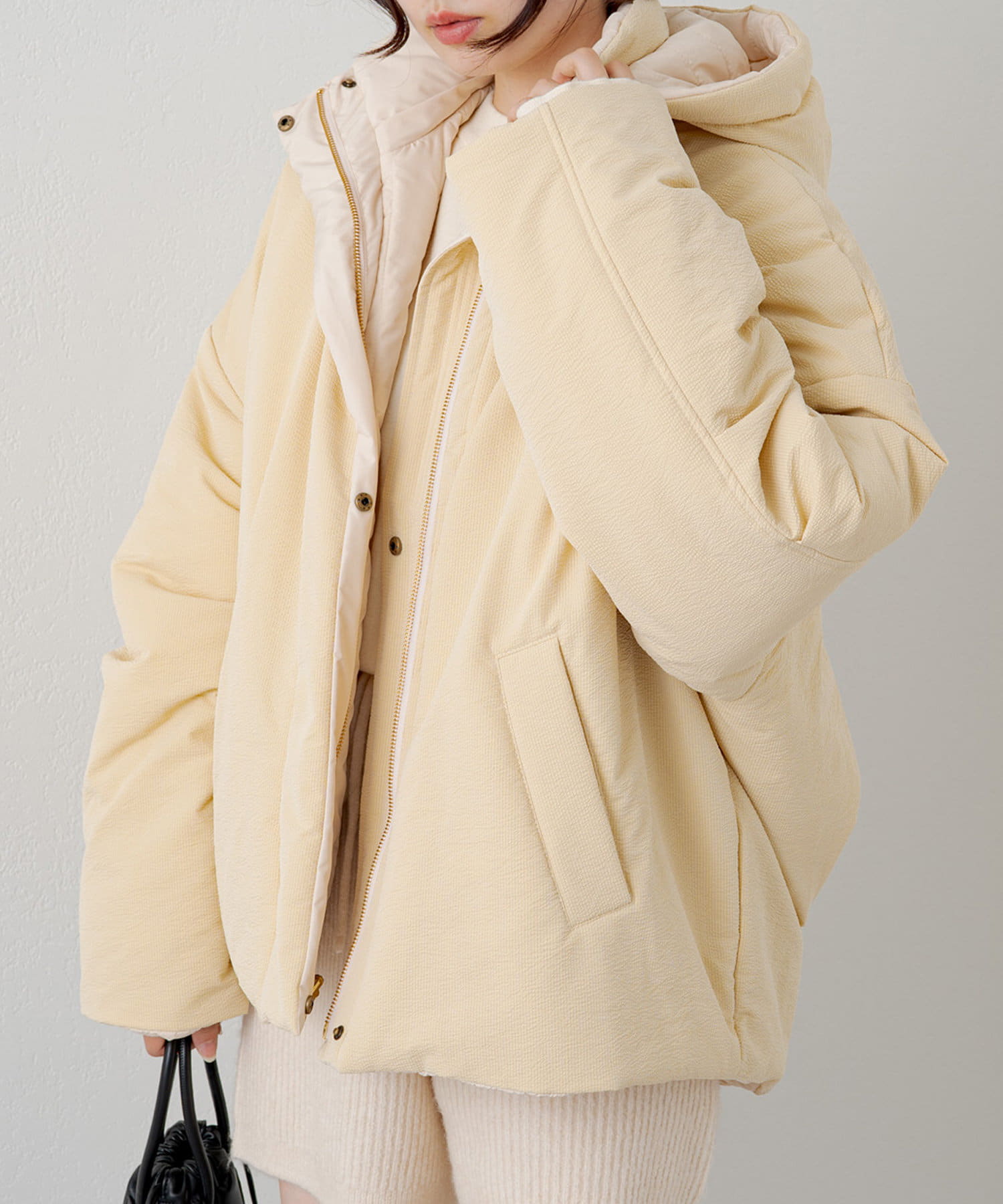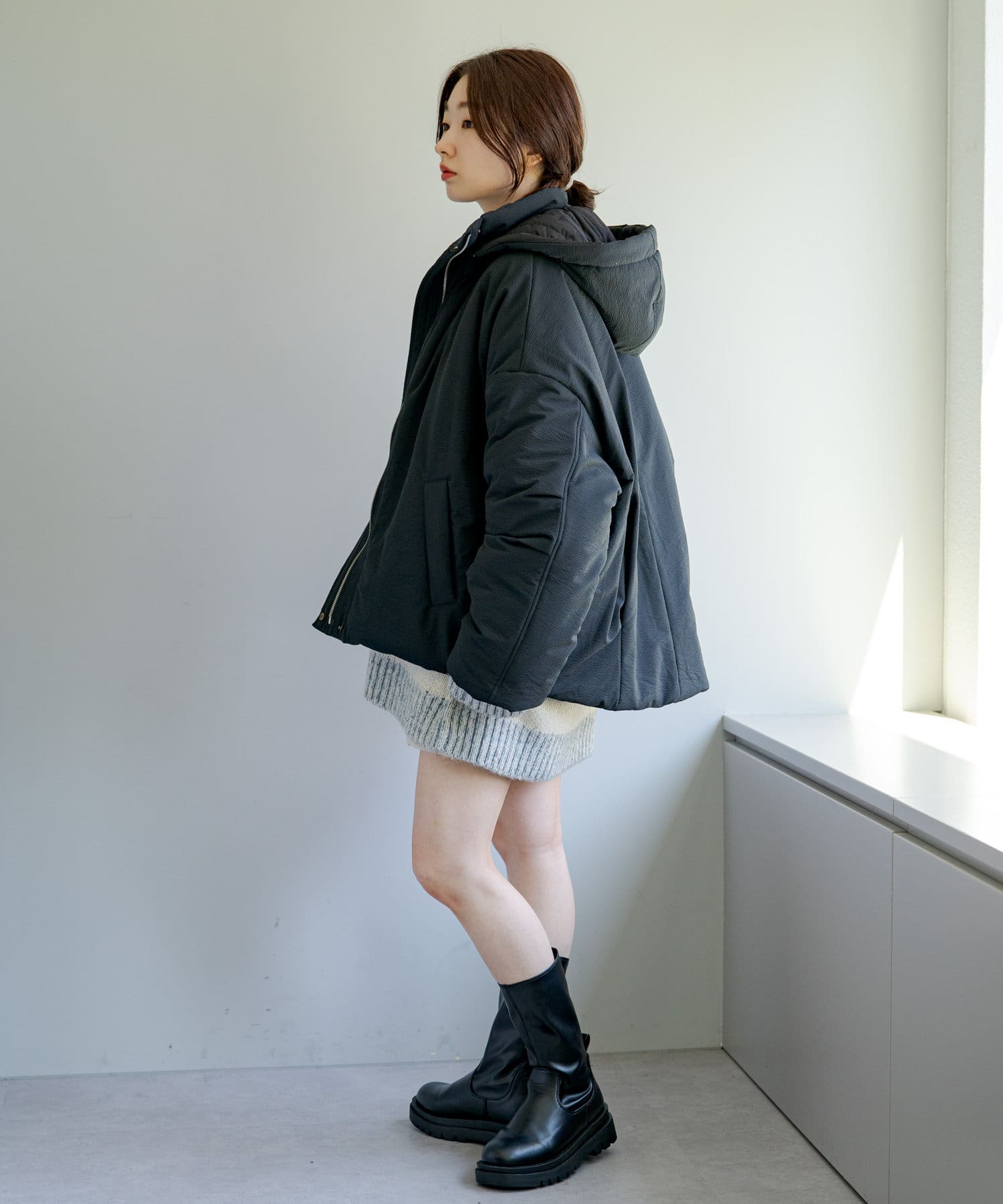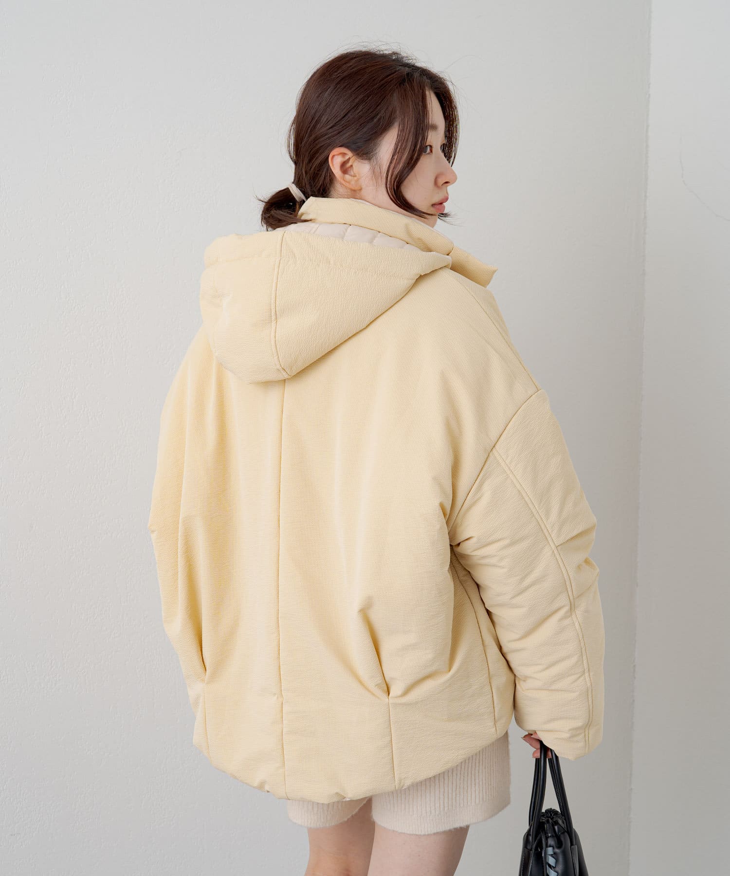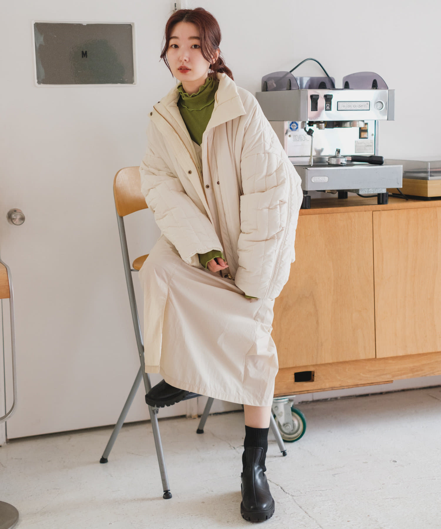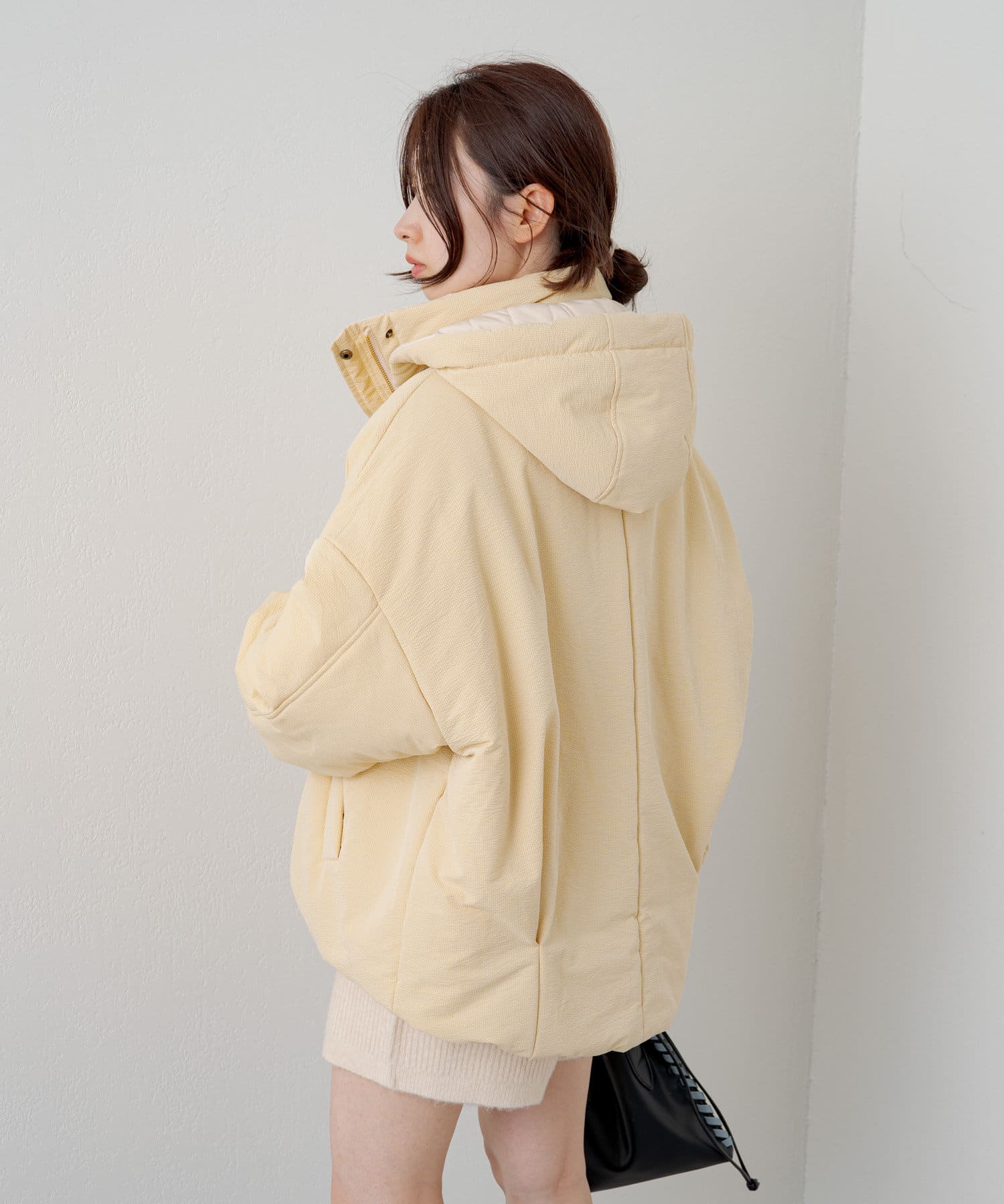 しゃらっとした独特な優しい肌触りのペーパータッチの中綿コート。