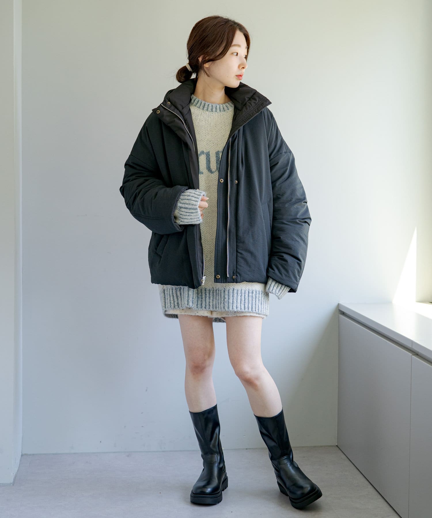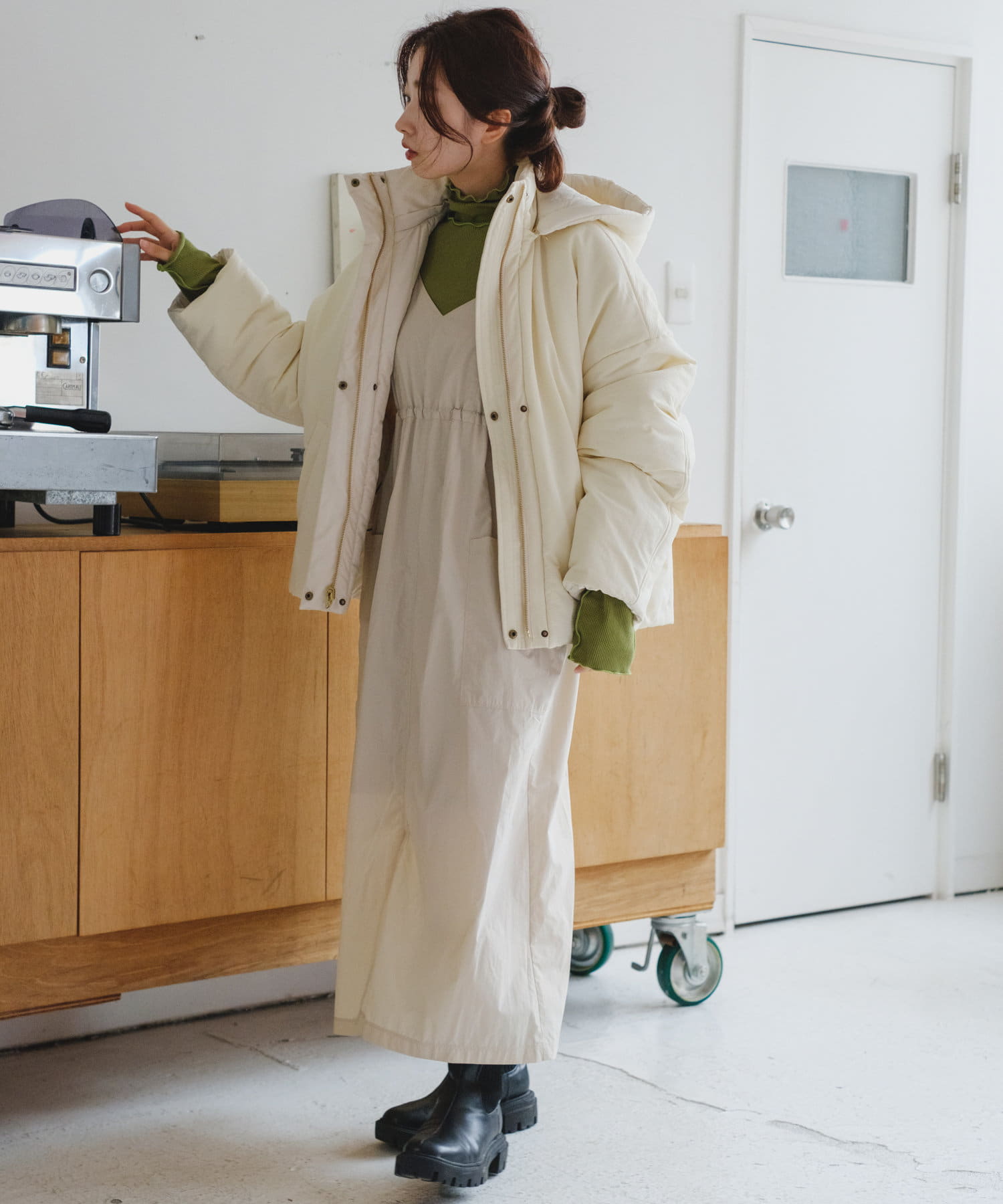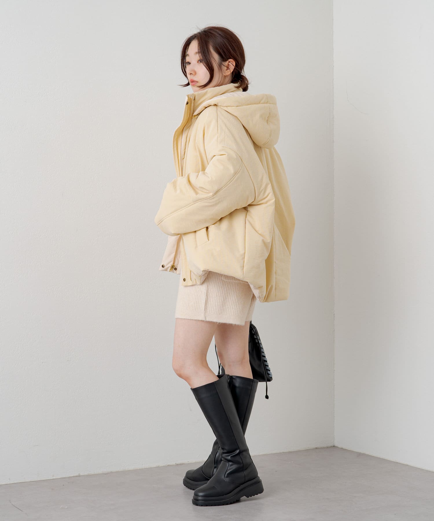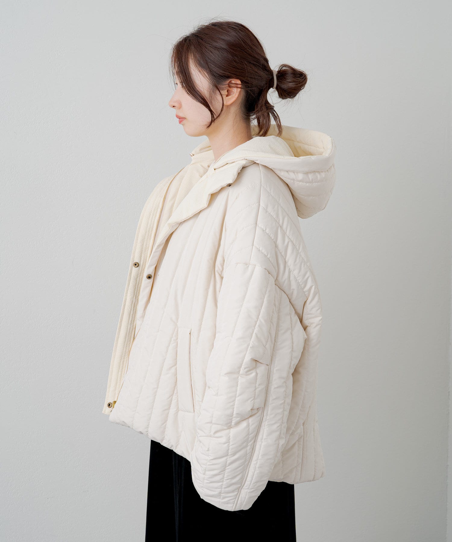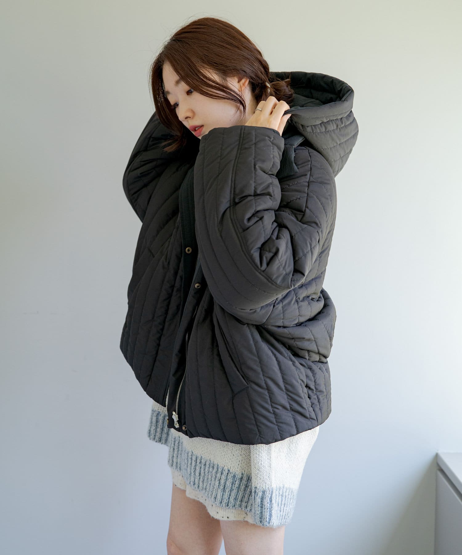 しゃらっとした独特な優しい肌触りのペーパータッチの中綿コート。