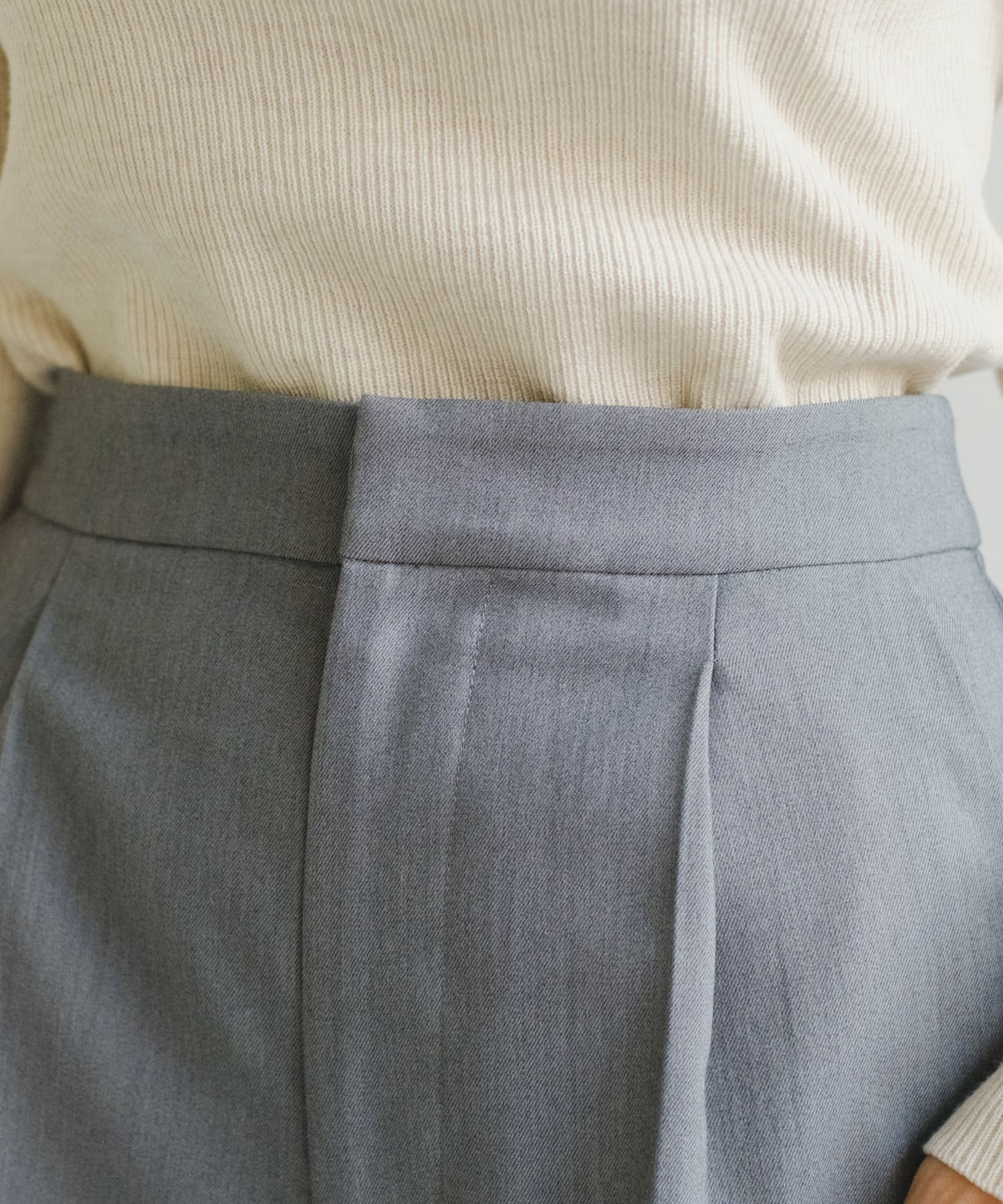 脚を長く見せてくれるハイウエストデザインと、縦のラインを強調してくれるセンタープレスが、スタイルアップ見えを叶えてくれます。