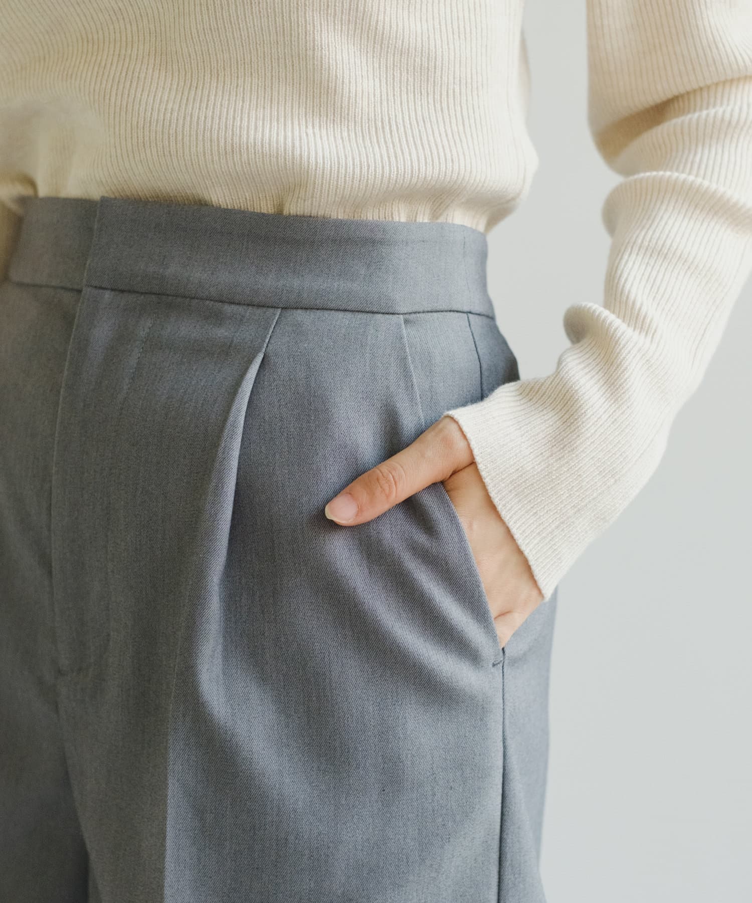 キレイめなタックパンツをツイル素材でカジュアルダウンに。