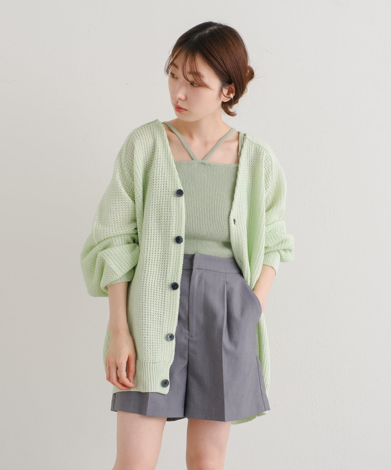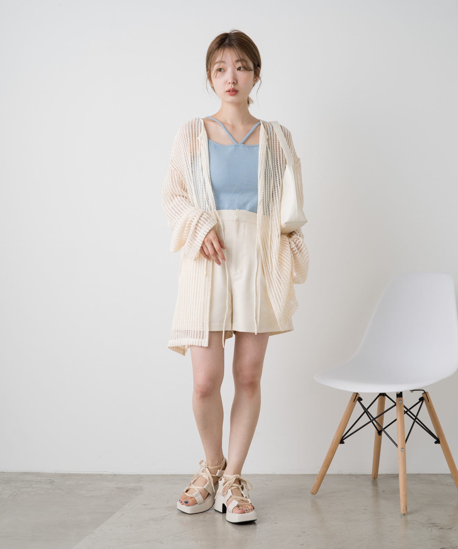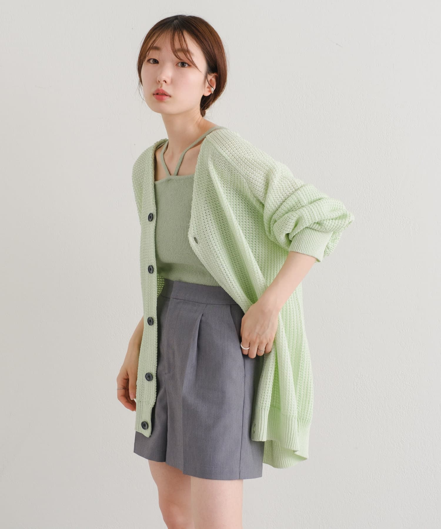ロング丈のシャツやカーディガンを合わせて、ミニワンピース風に着用していただくのがオススメ!