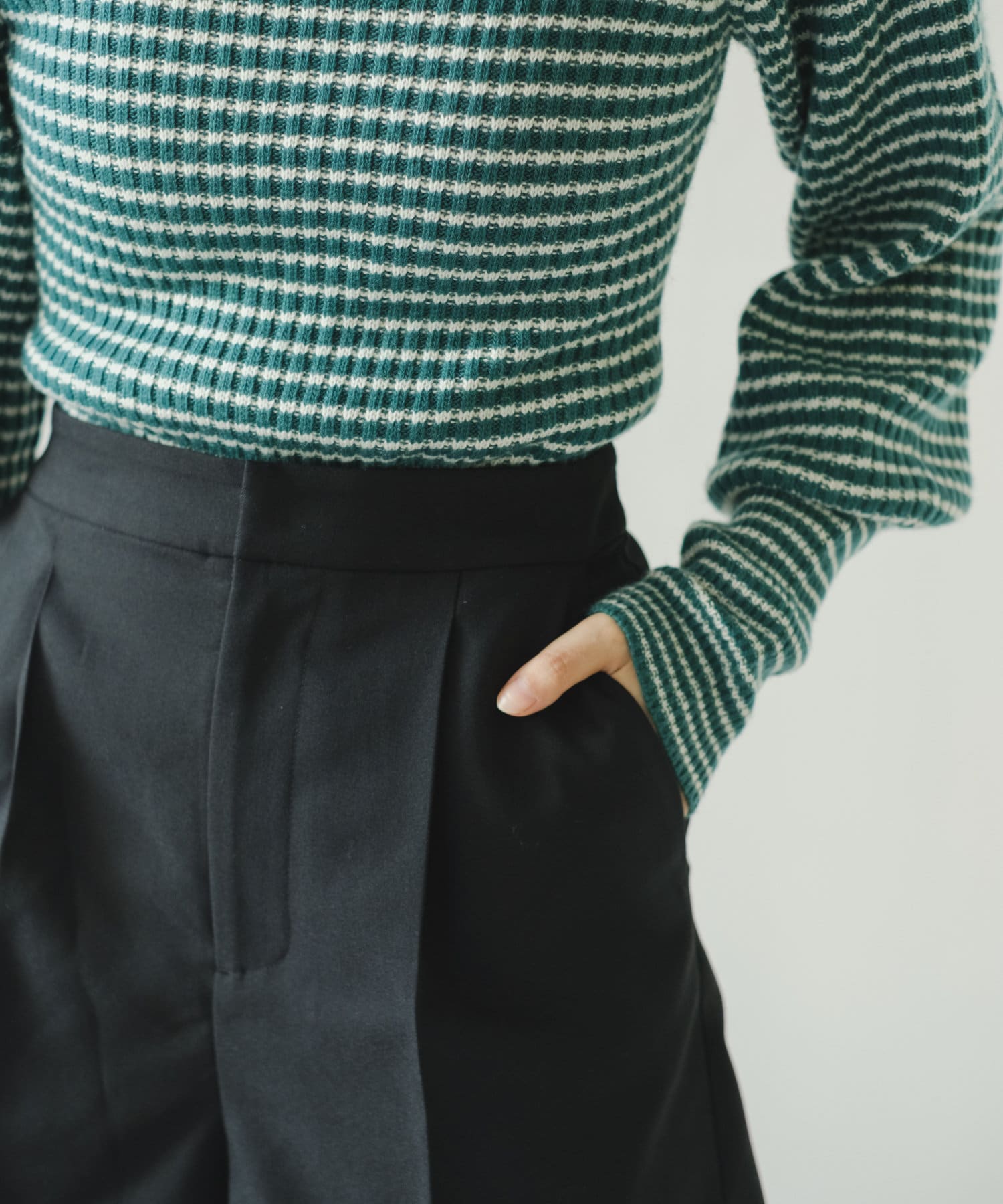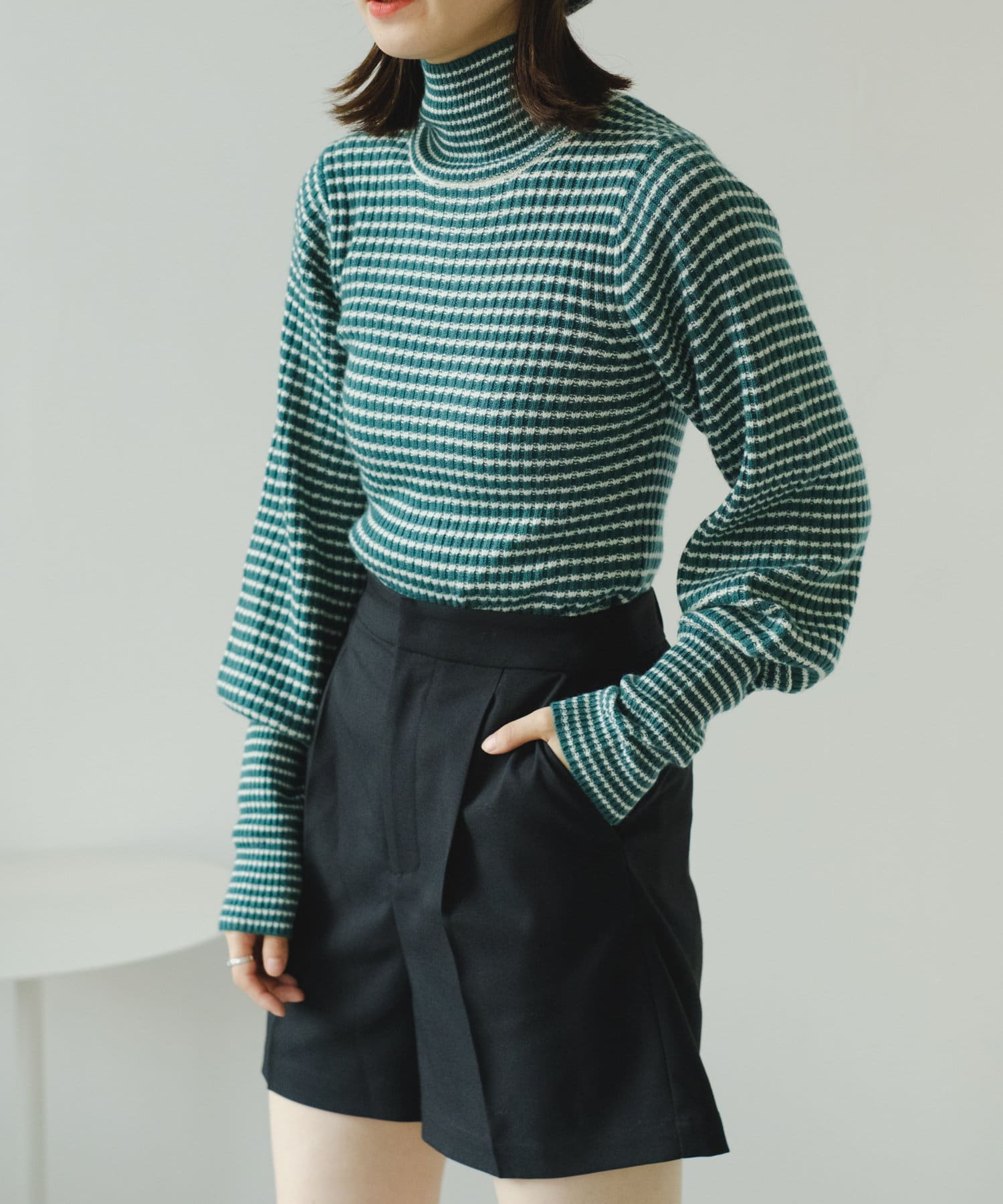 コーディネートのベースとなるシンプルなTシャツから、トレンドライクなハイネックデザインが登場。着心地のよさにもこだわり、柔らかな風合いのレーヨンコットン素材を使用しました。メインとしてはもちろん、インナーレイヤードにもおすすめ。着回しに役立つボーダー柄をご用意しました★