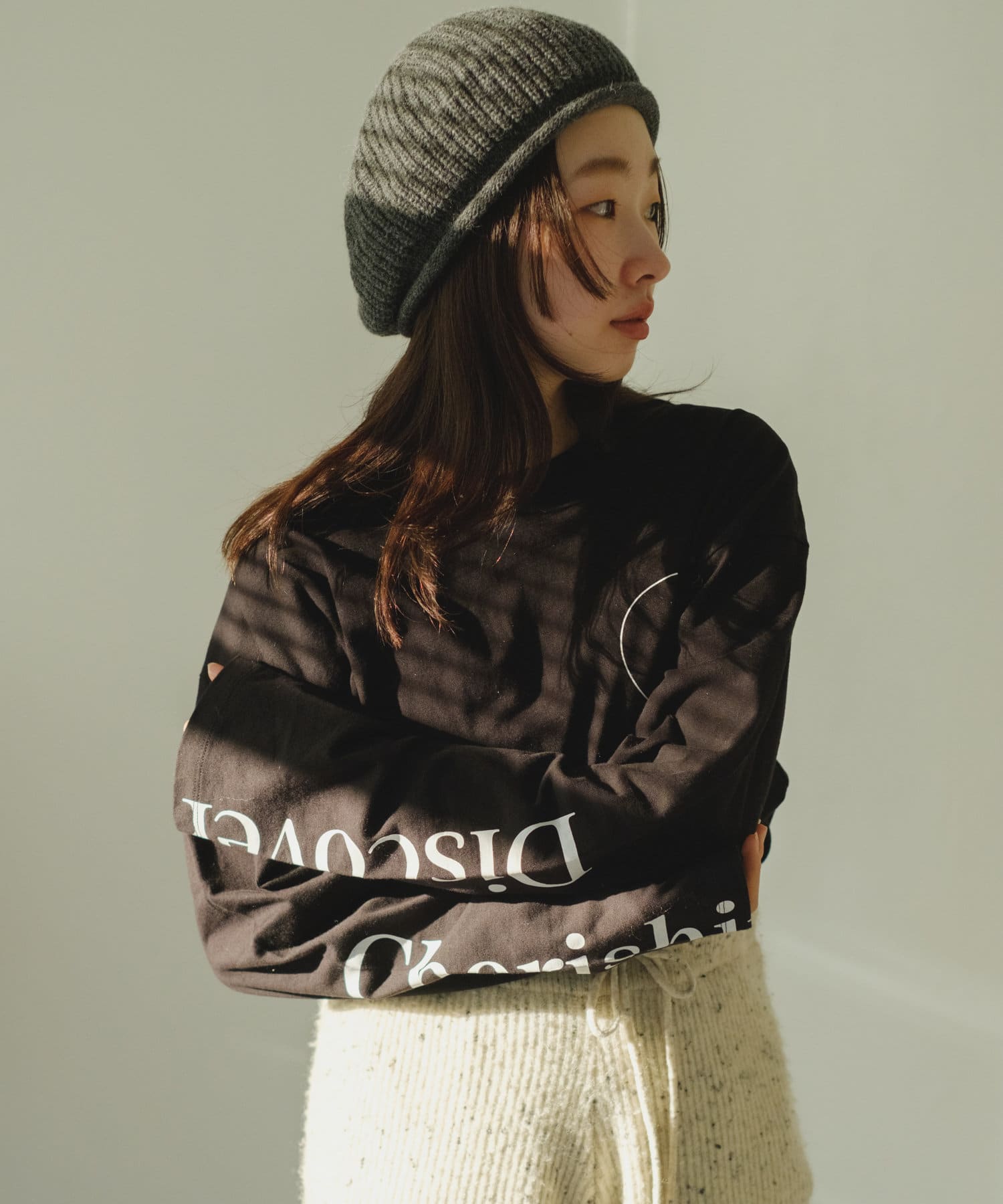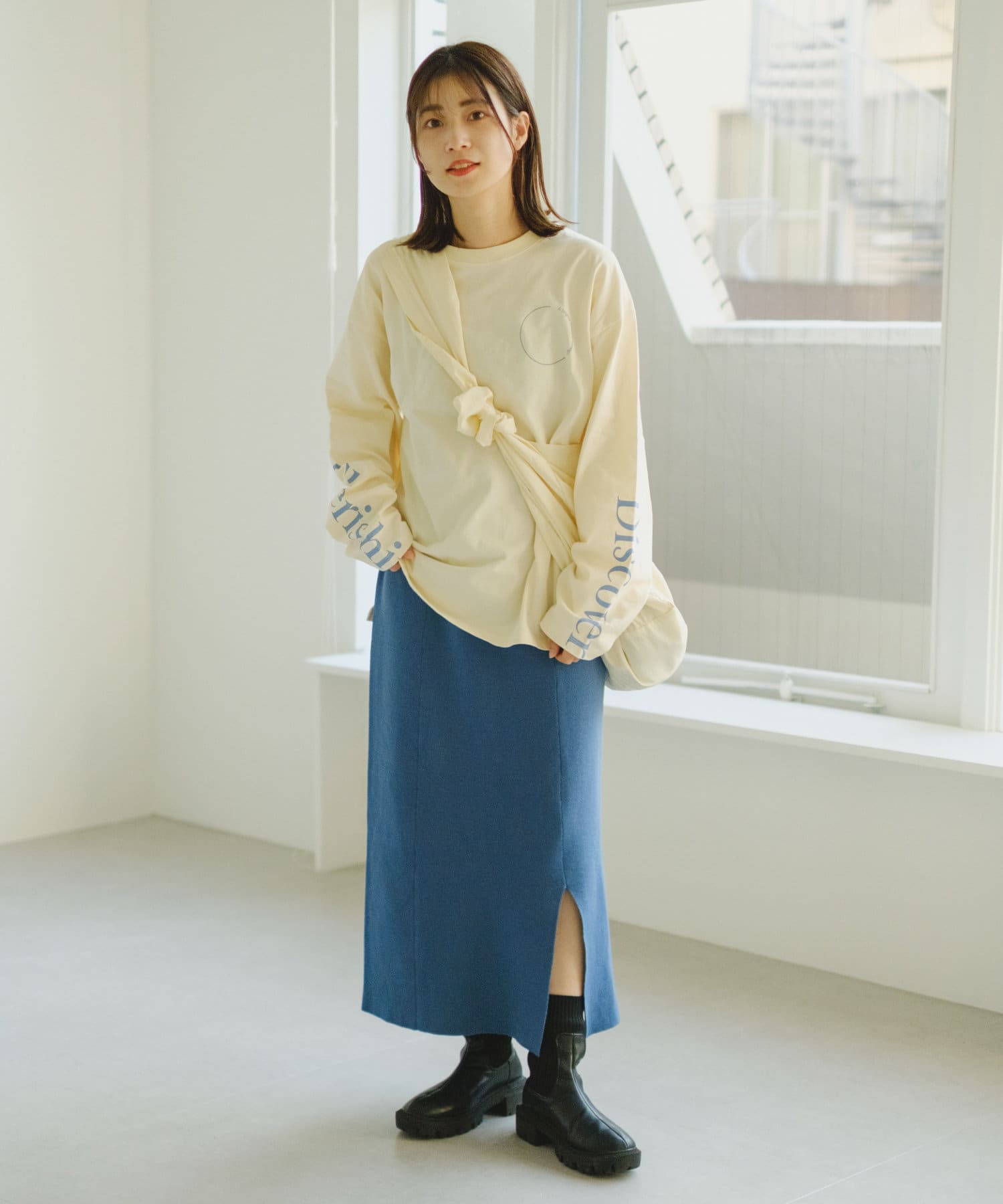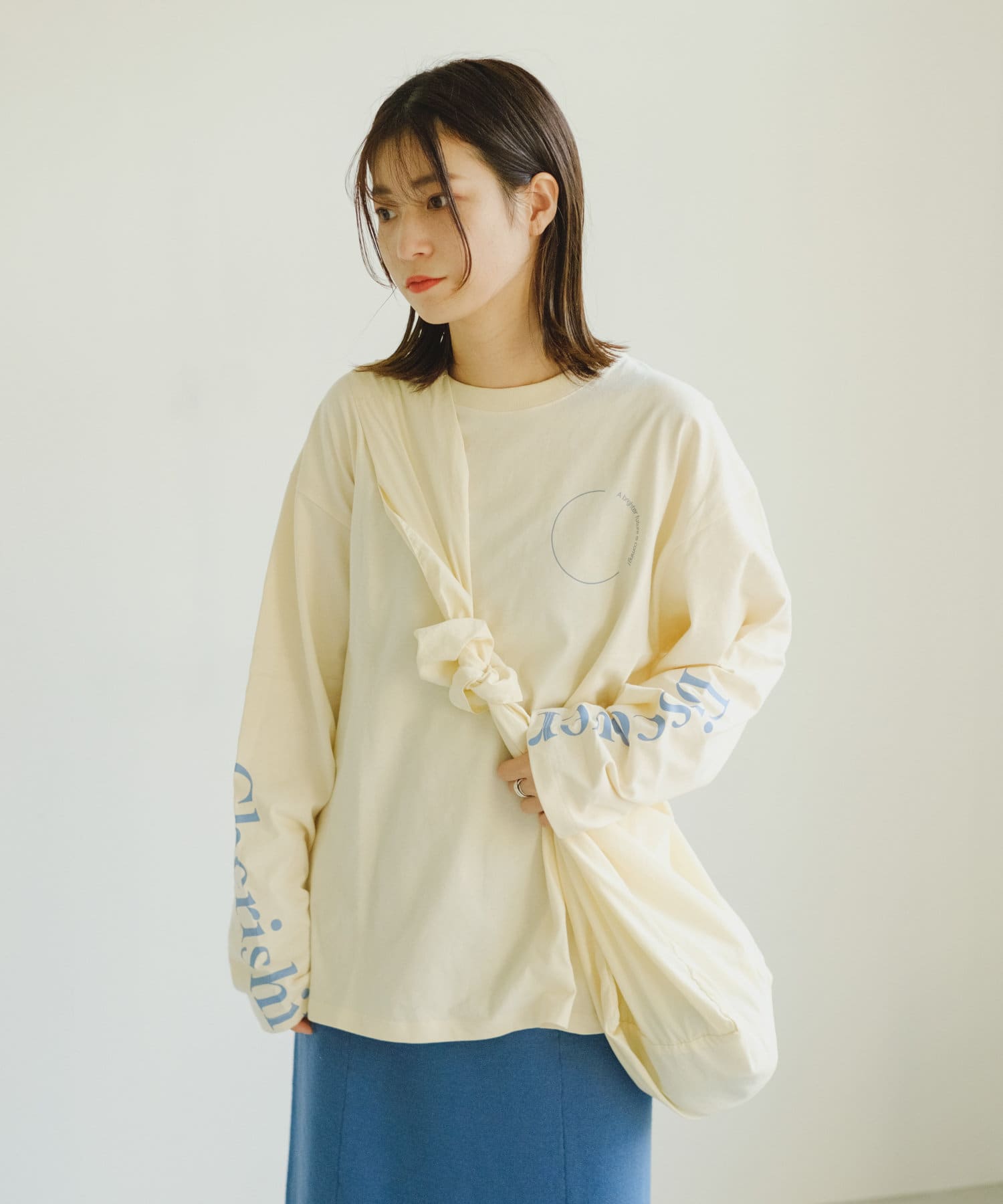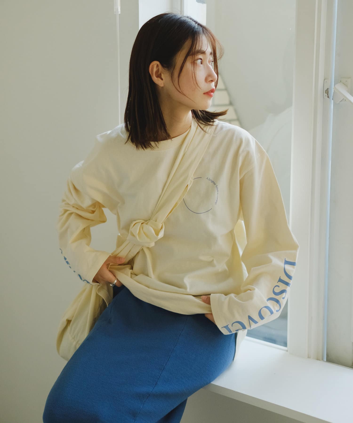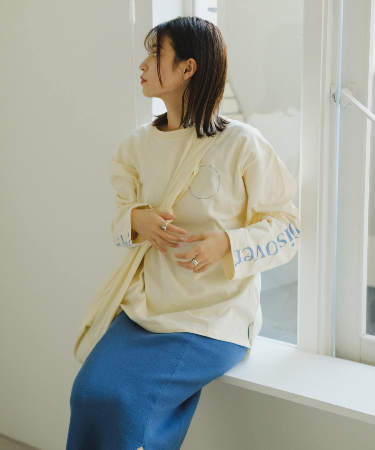 スタッフさんがこちらのロンTにダウンジャケットのブルーを着ているコーディネートが可愛すぎてまずロンTを購入しました。