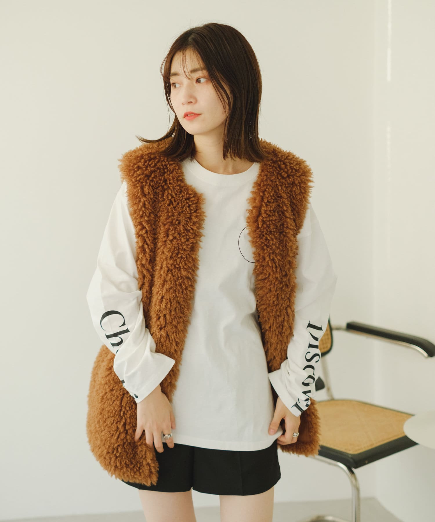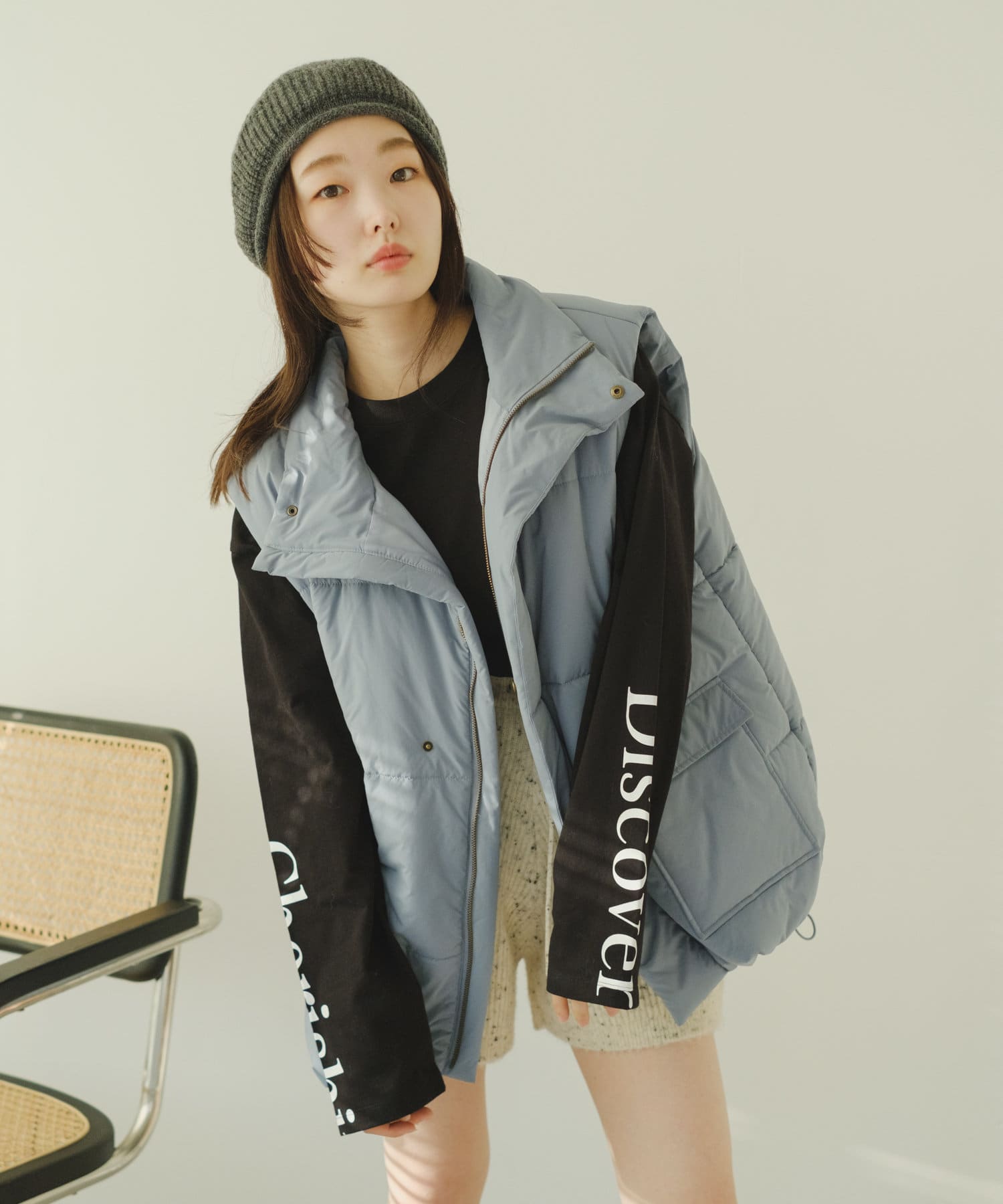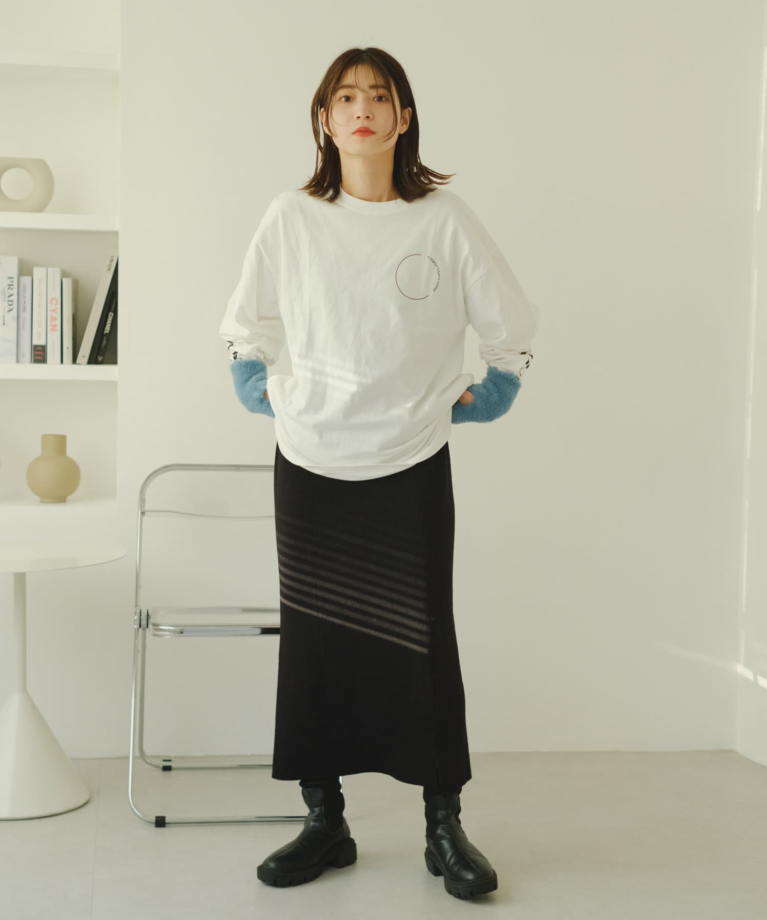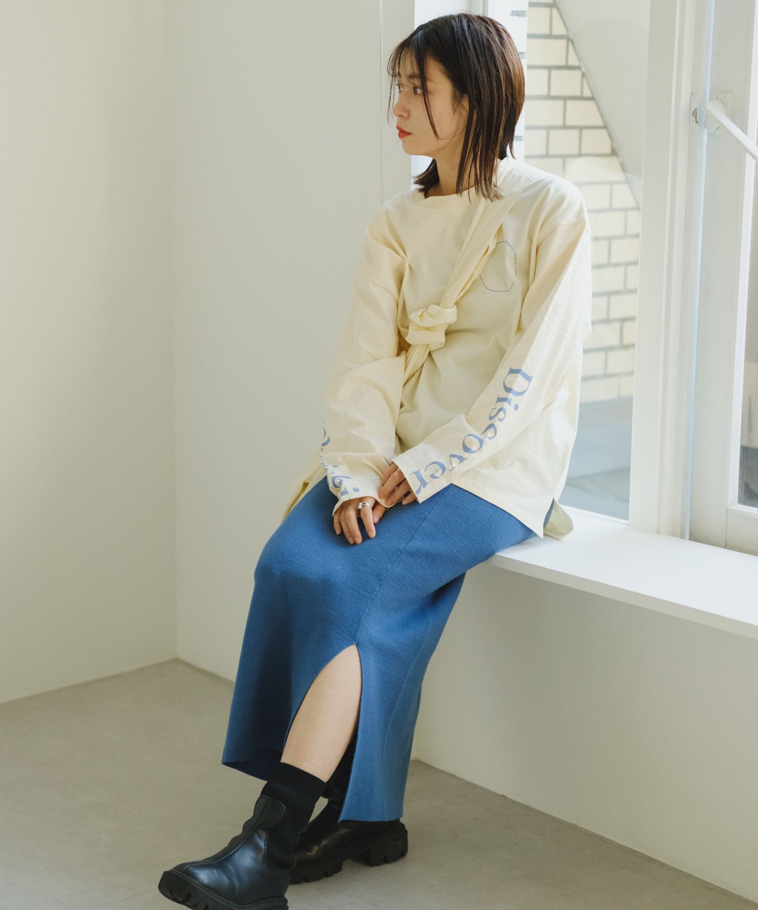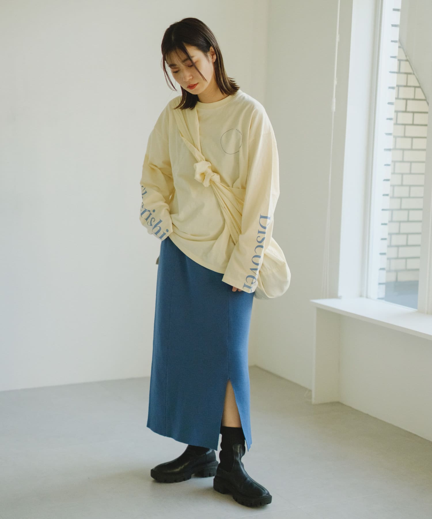 スタッフさんがこちらのロンTにダウンジャケットのブルーを着ているコーディネートが可愛すぎてまずロンTを購入しました。
