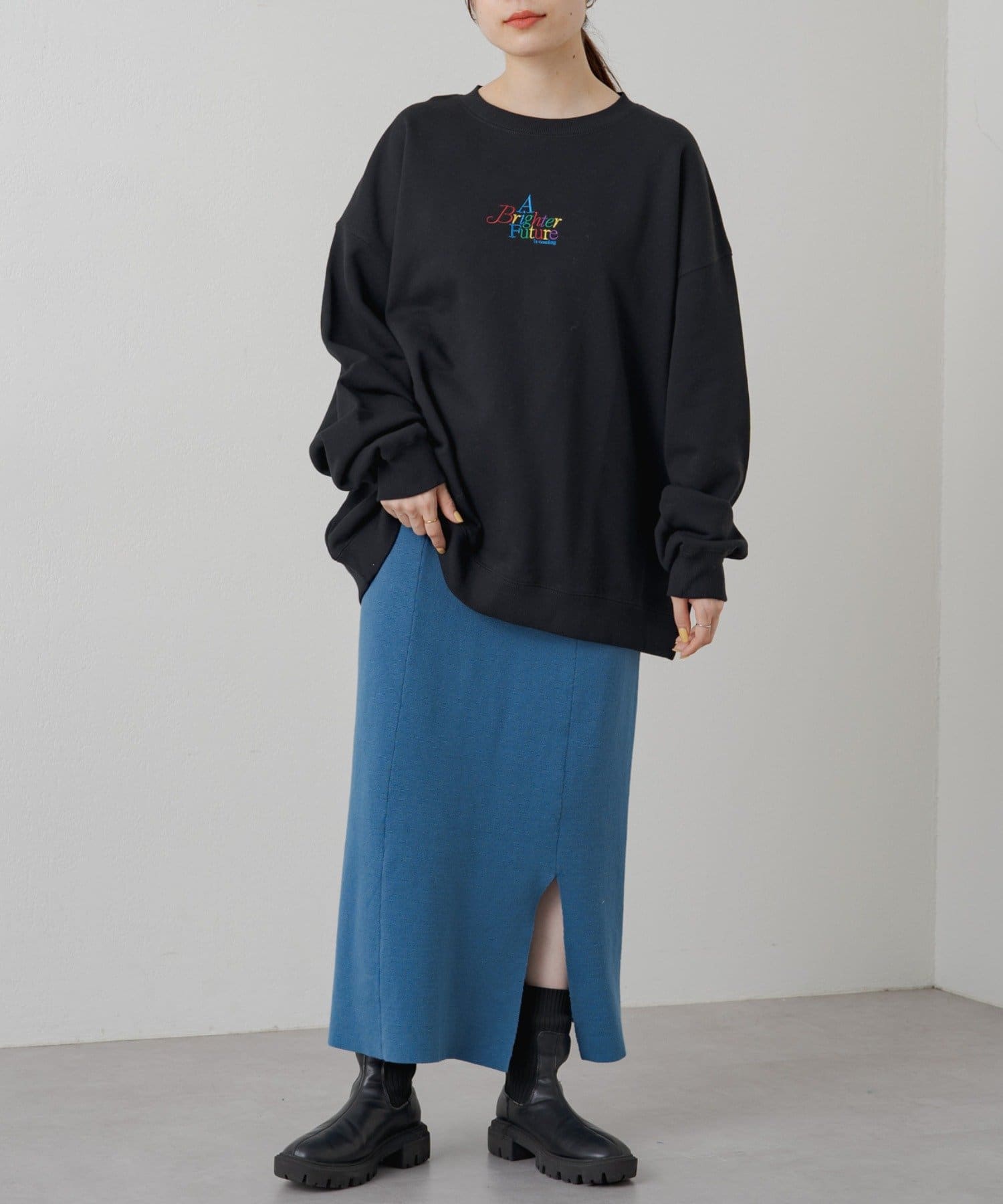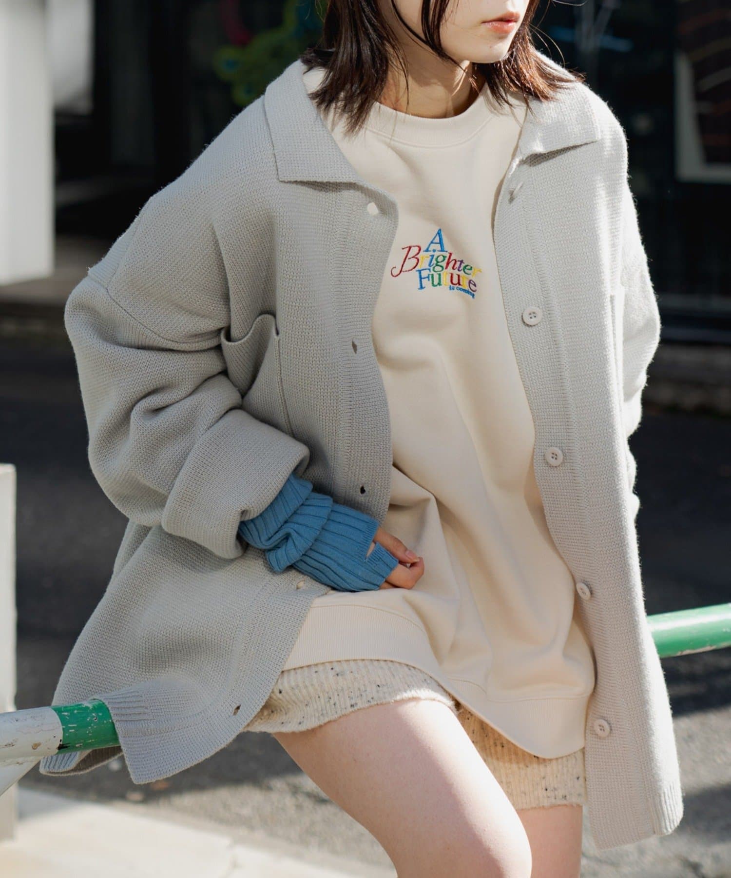 "A Brighter Future is coming"がアクセントのオーバーサイズスウェット。