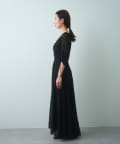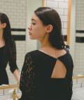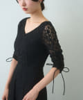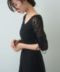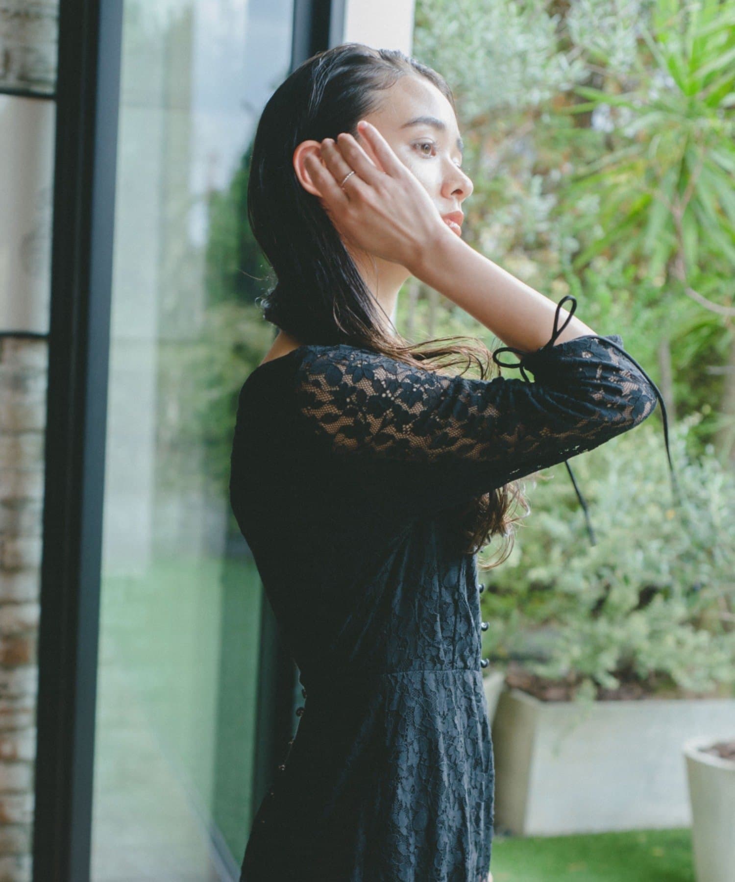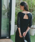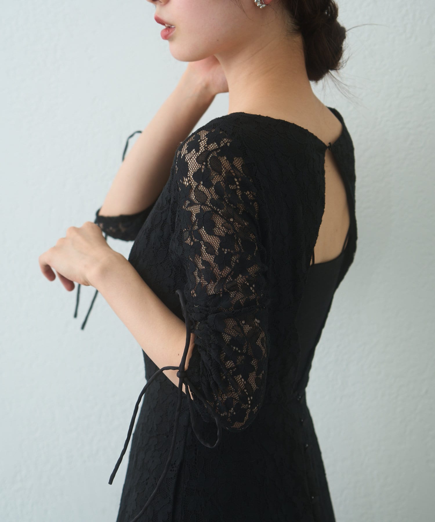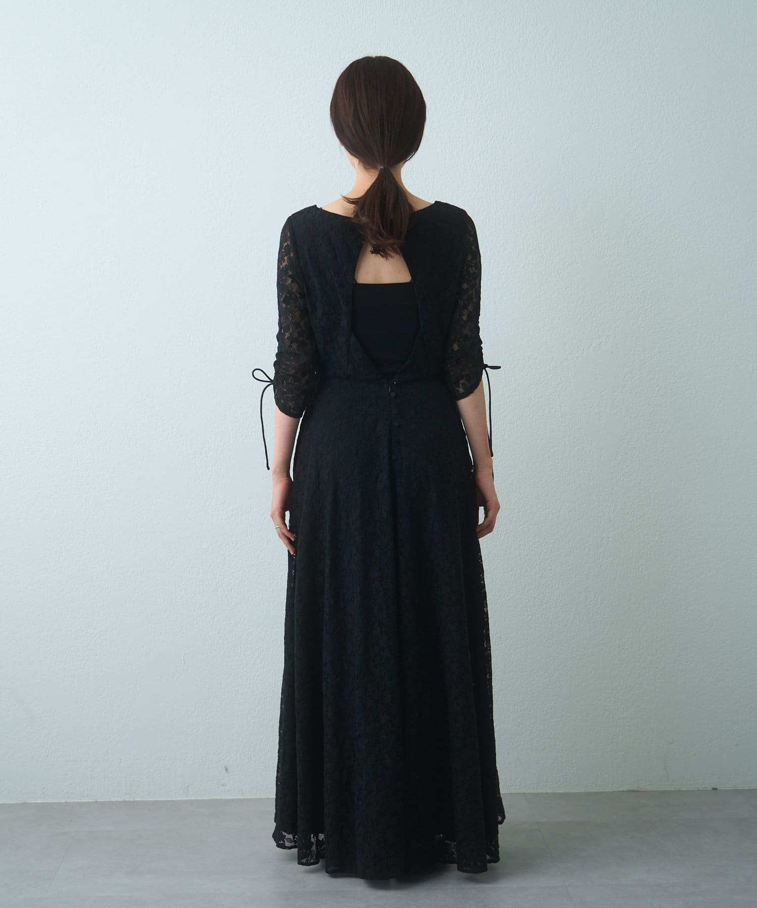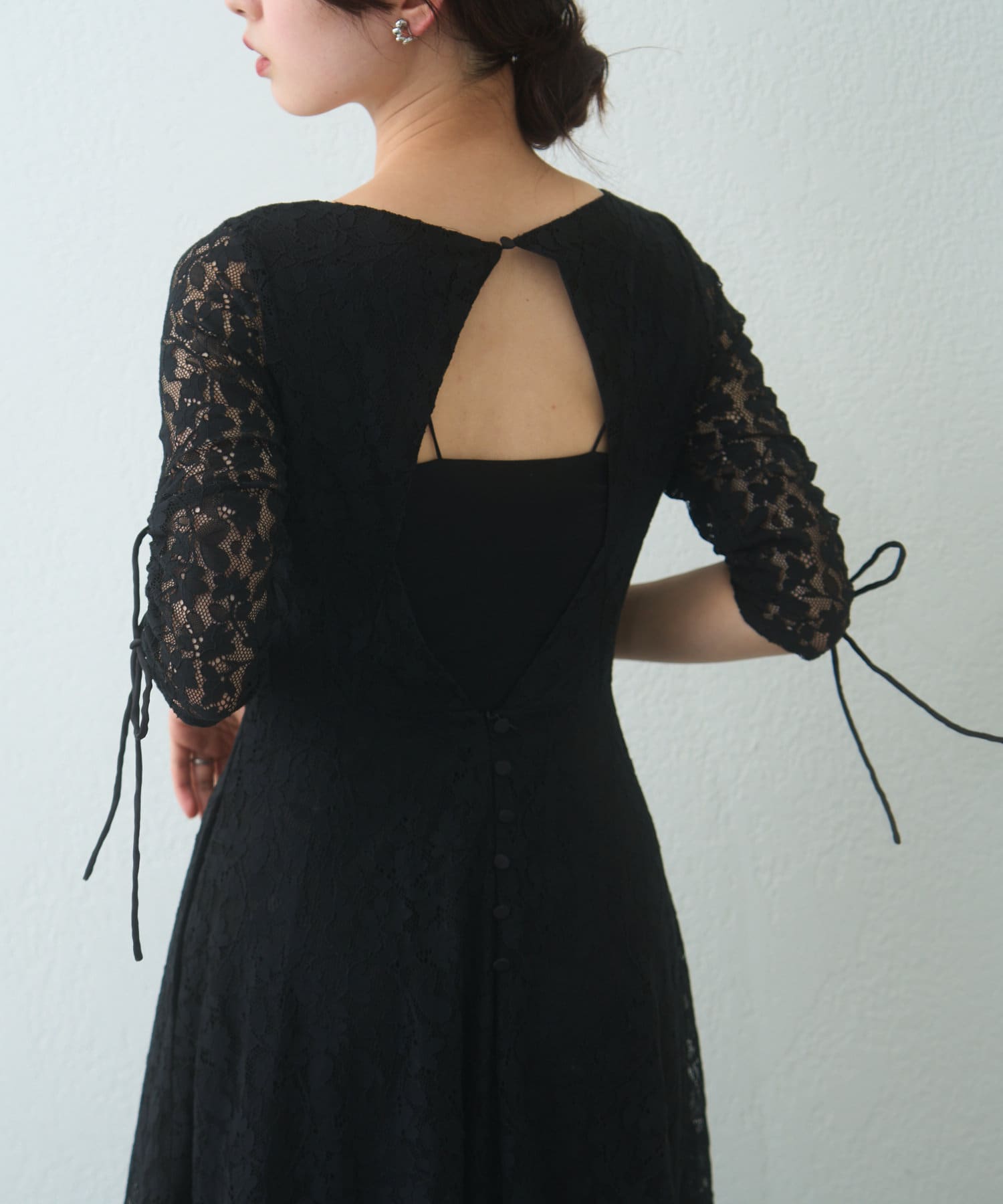 ざっくりと開いたバックスタイルがアクセントのレースドレス。