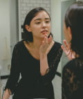 袖の部分には裏地が付いていないので程良い肌見せで女性らしい印象に。