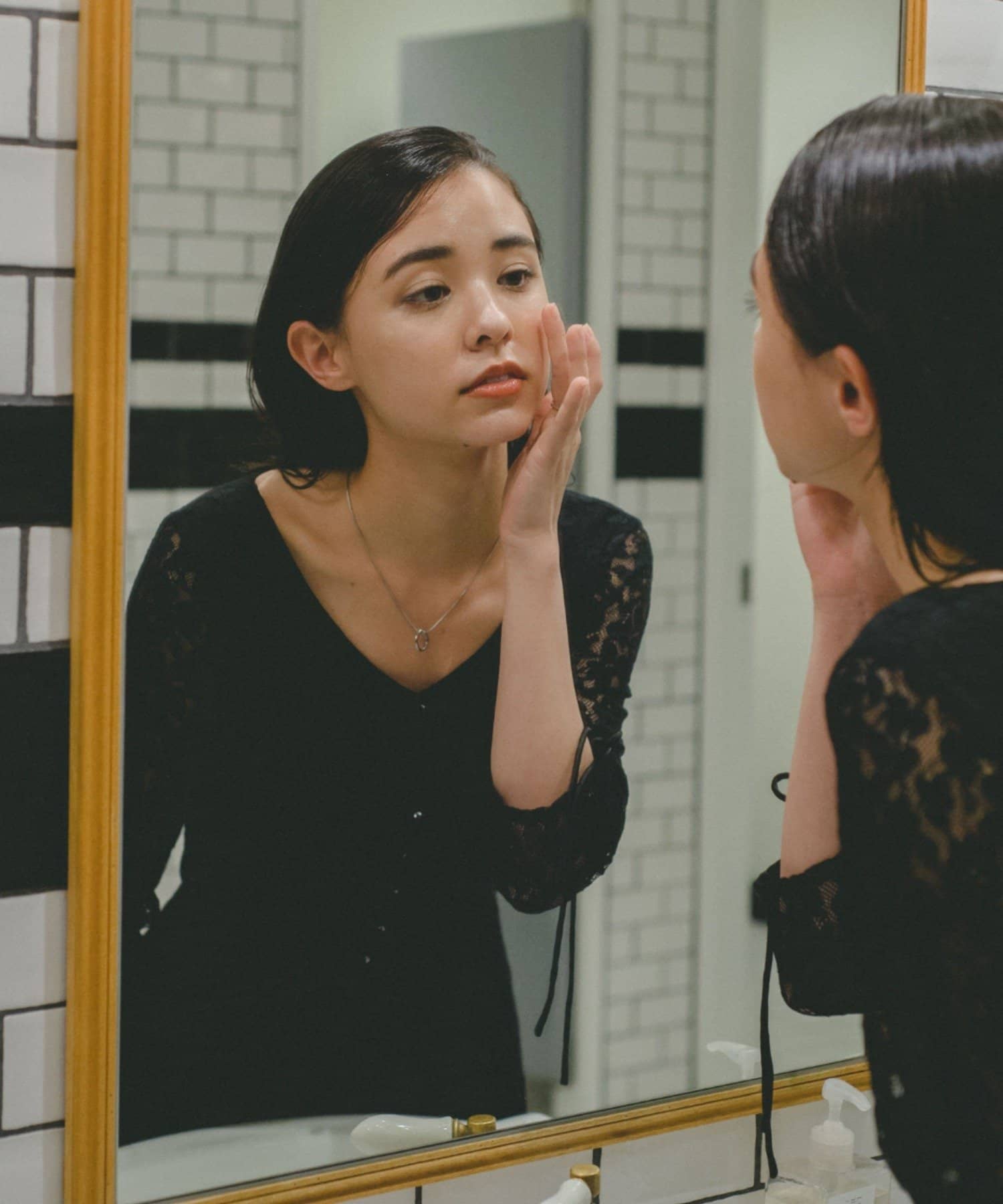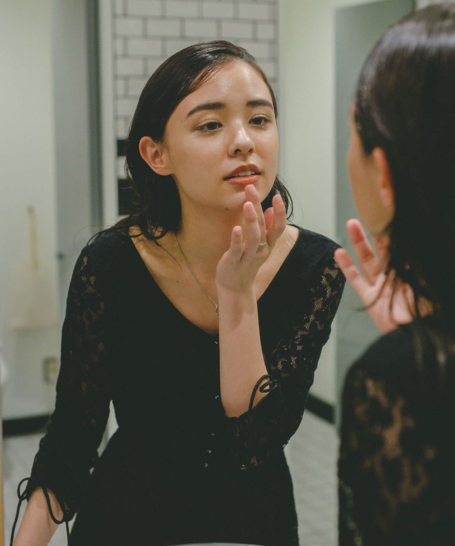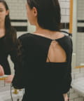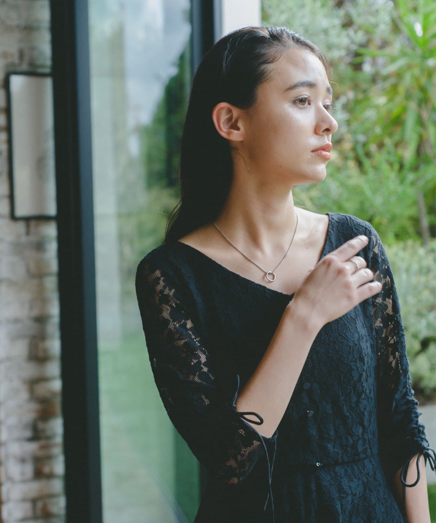 デコルテが綺麗に開いたデザインなのでネックレスが引き立ちます。