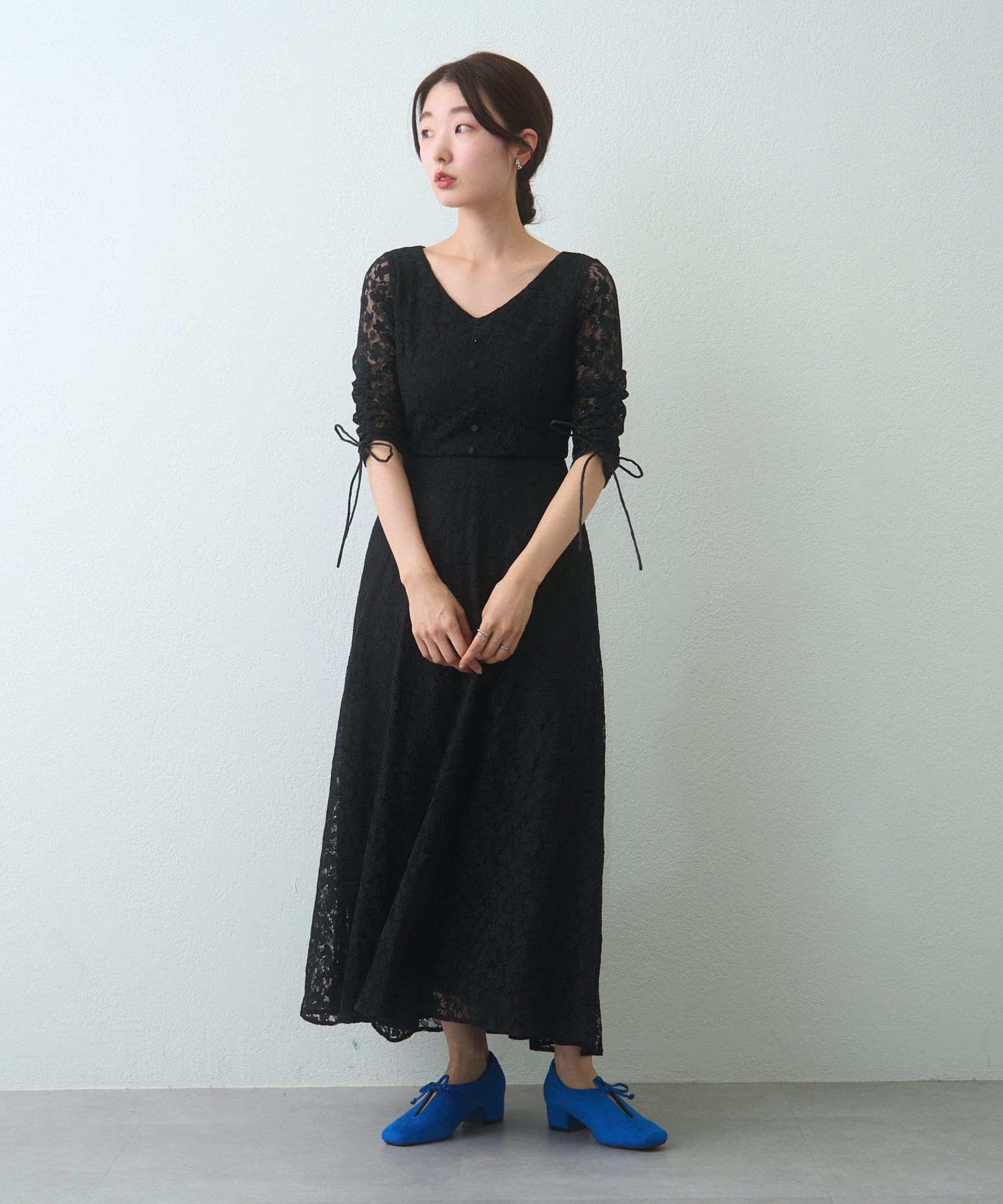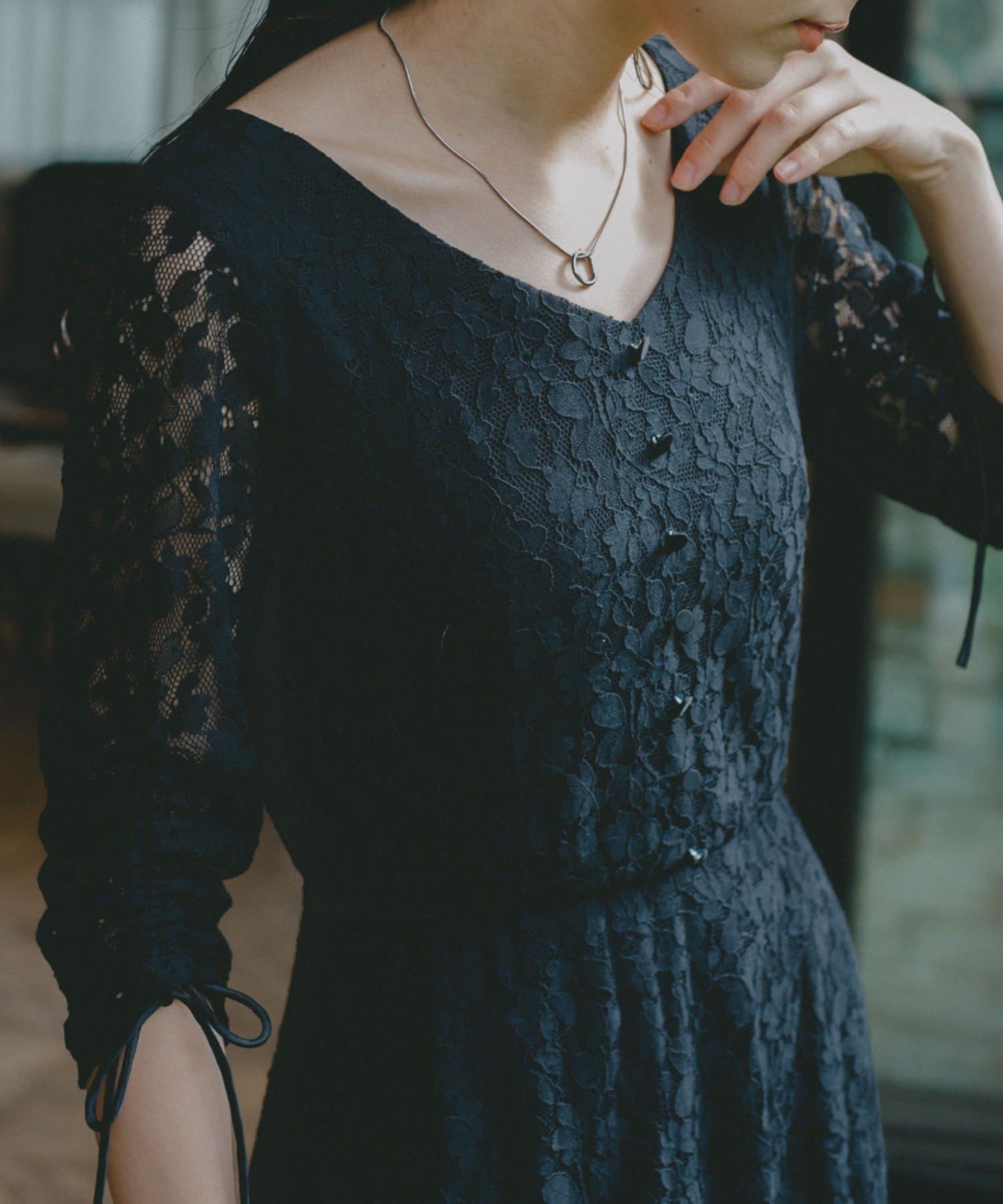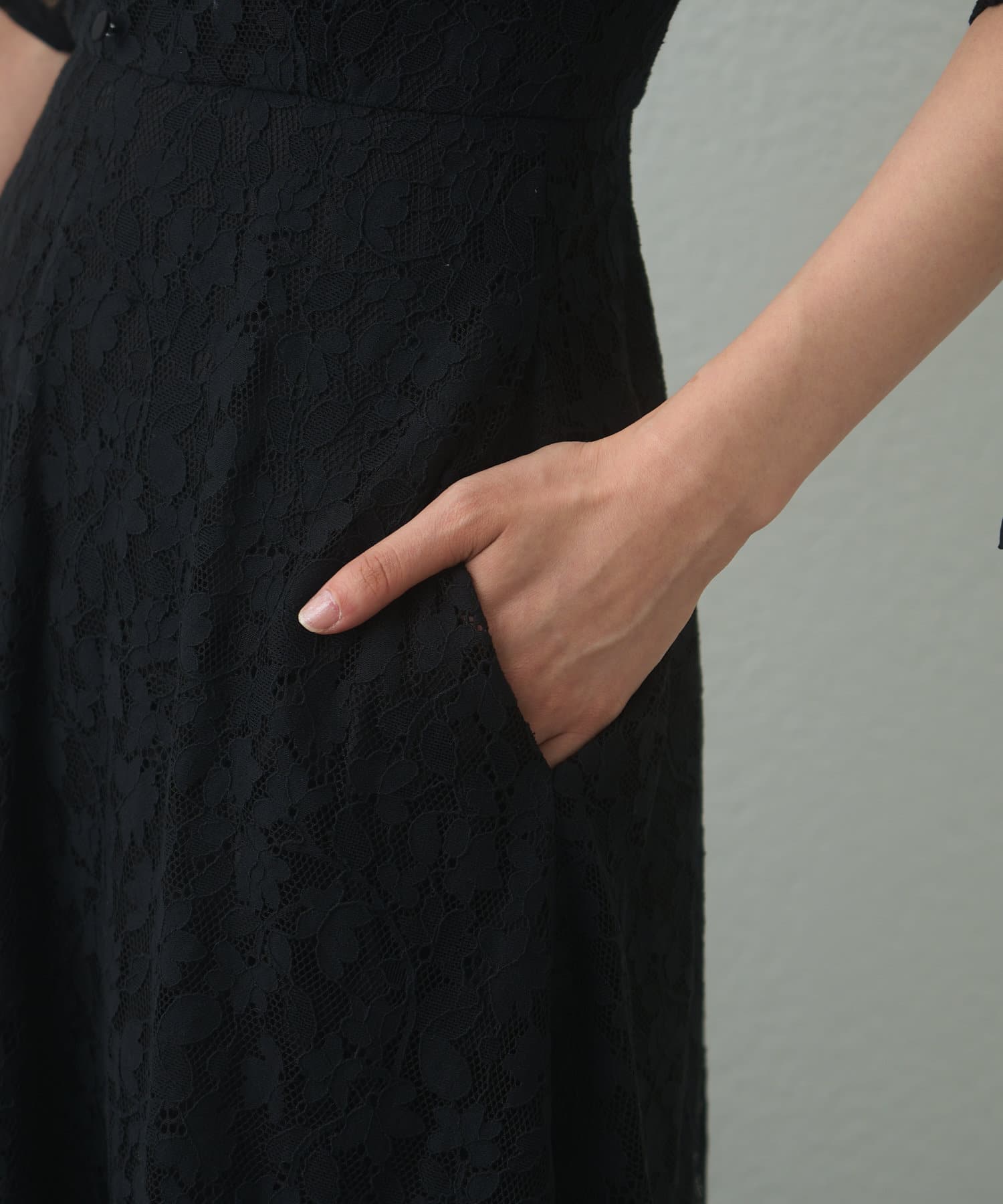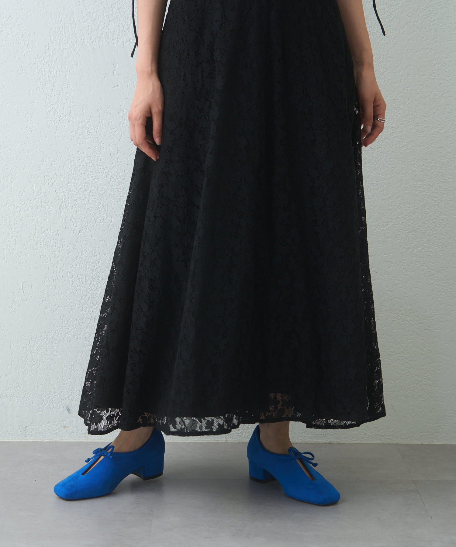 レースデザインにフレアシルエットが可愛らしい印象ですが、