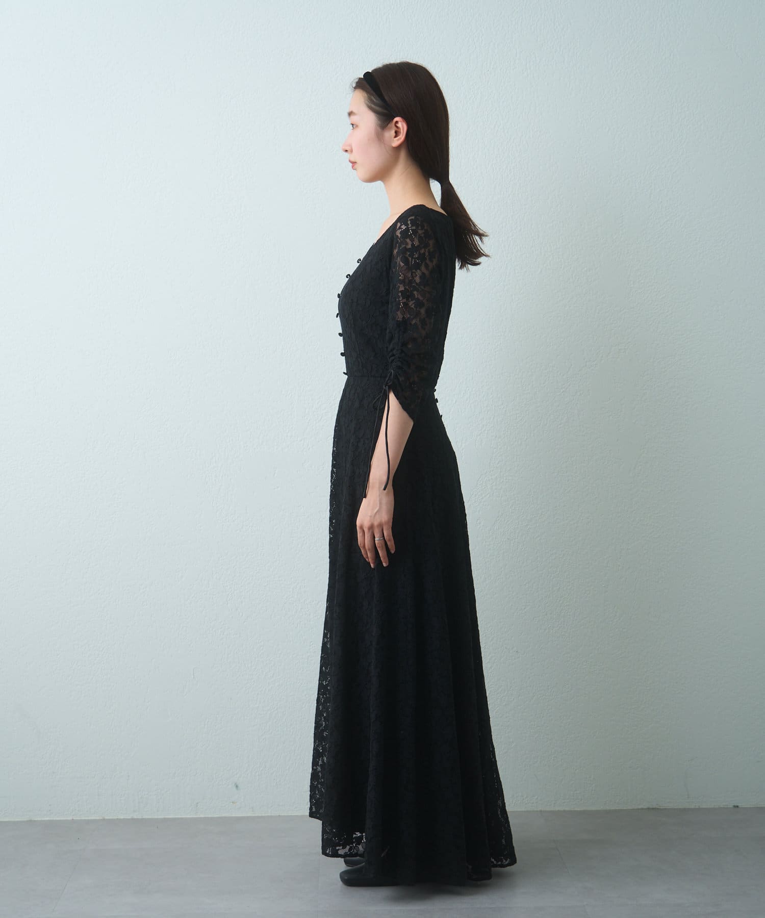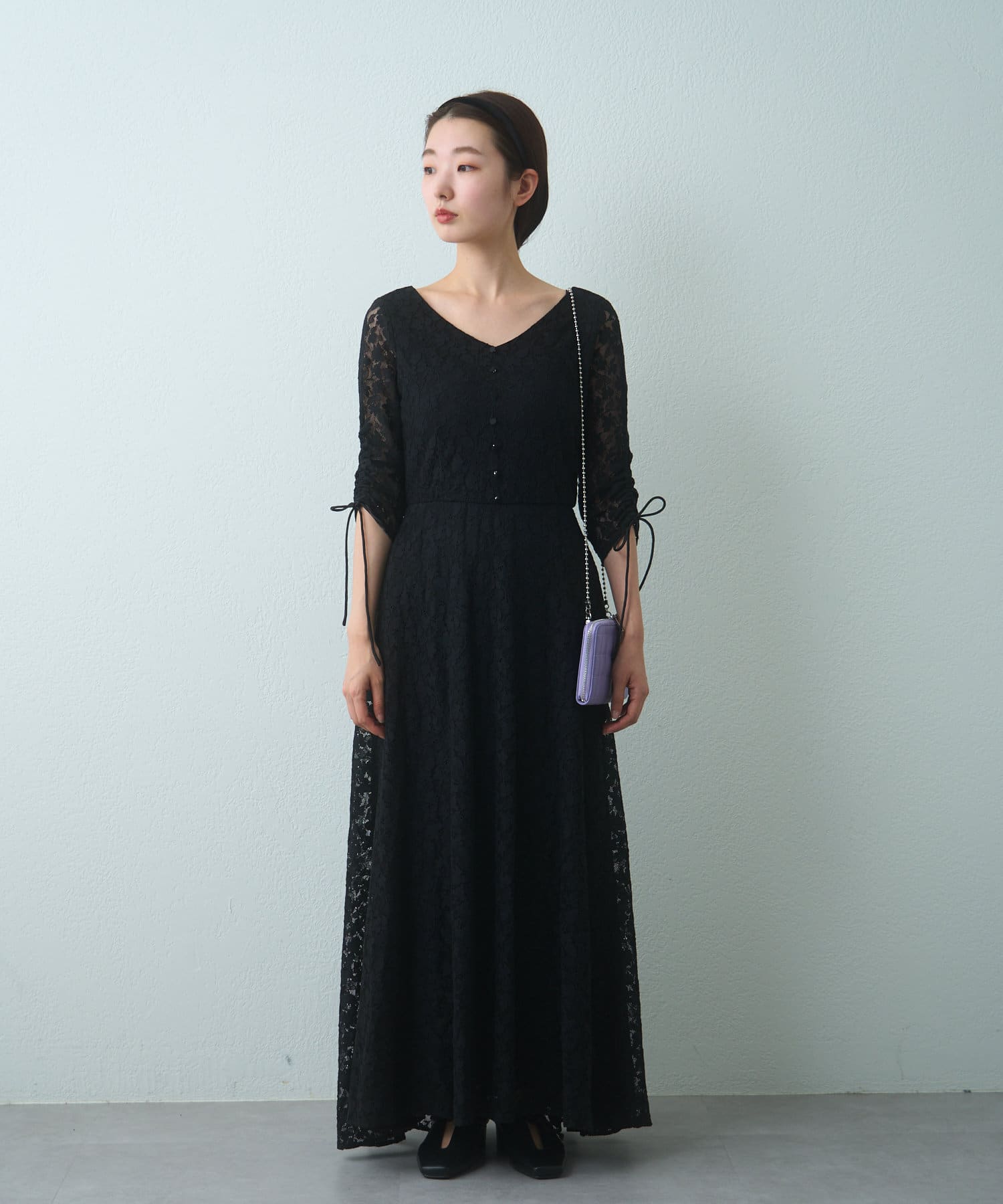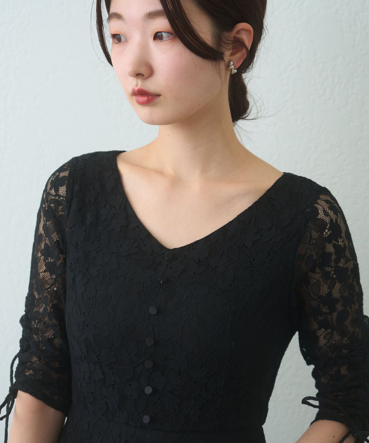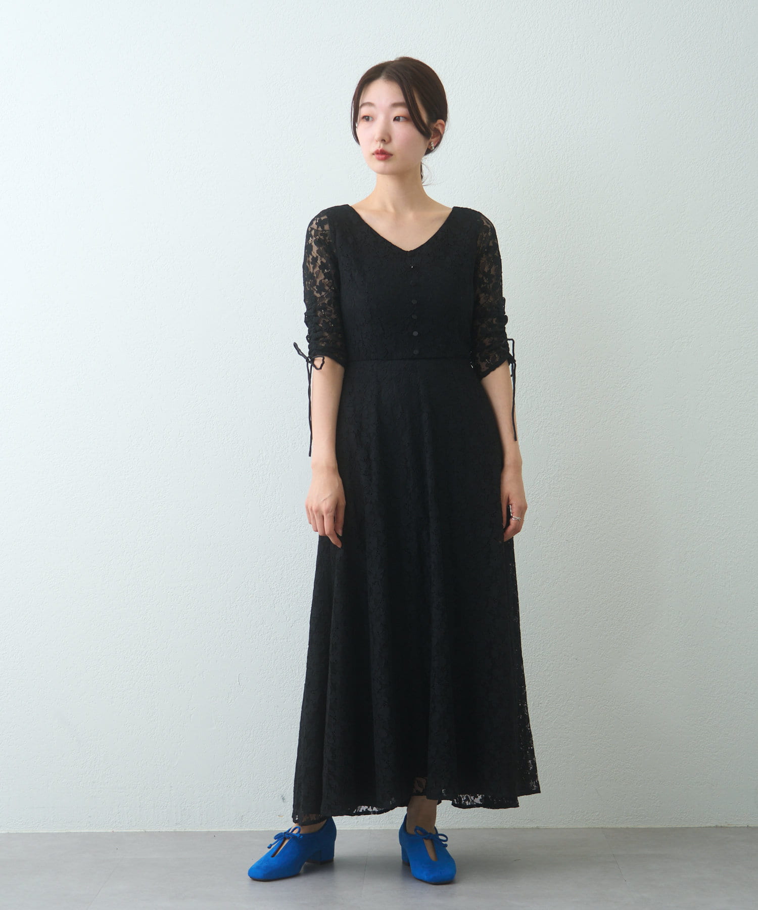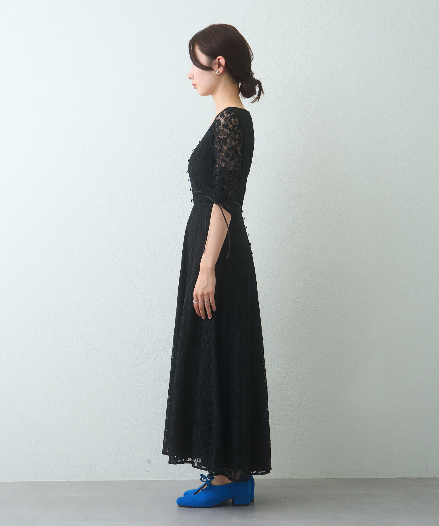 レースデザインにフレアシルエットが可愛らしい印象ですが、