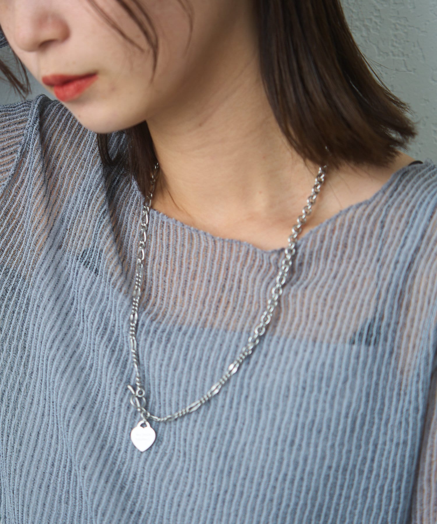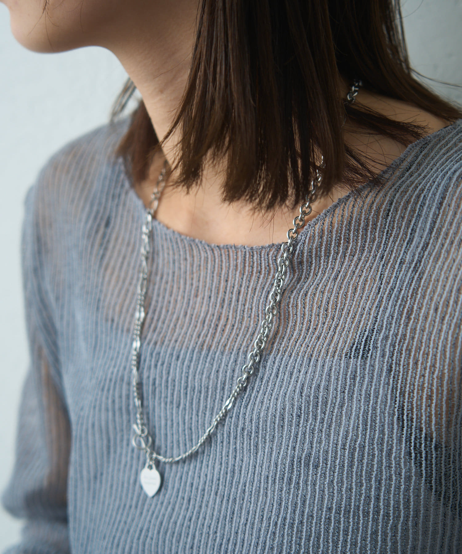 片方のチェーンを垂らしてYラインネックレスとしても使えます。