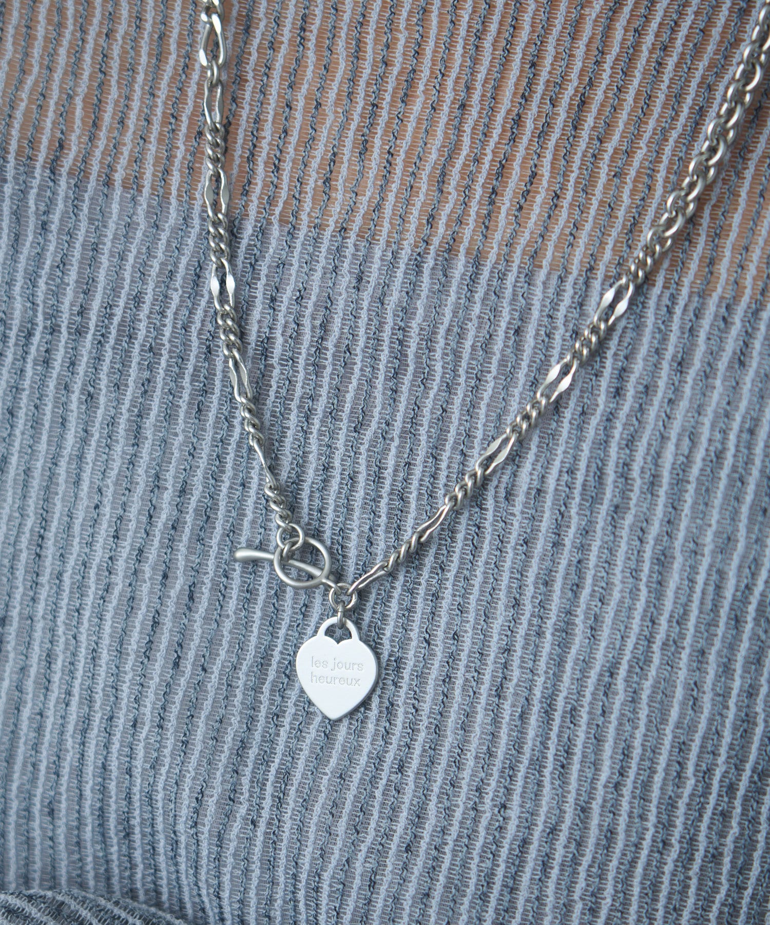 "les jours heureux"がハートのモチーフに刻まれたネックレス。