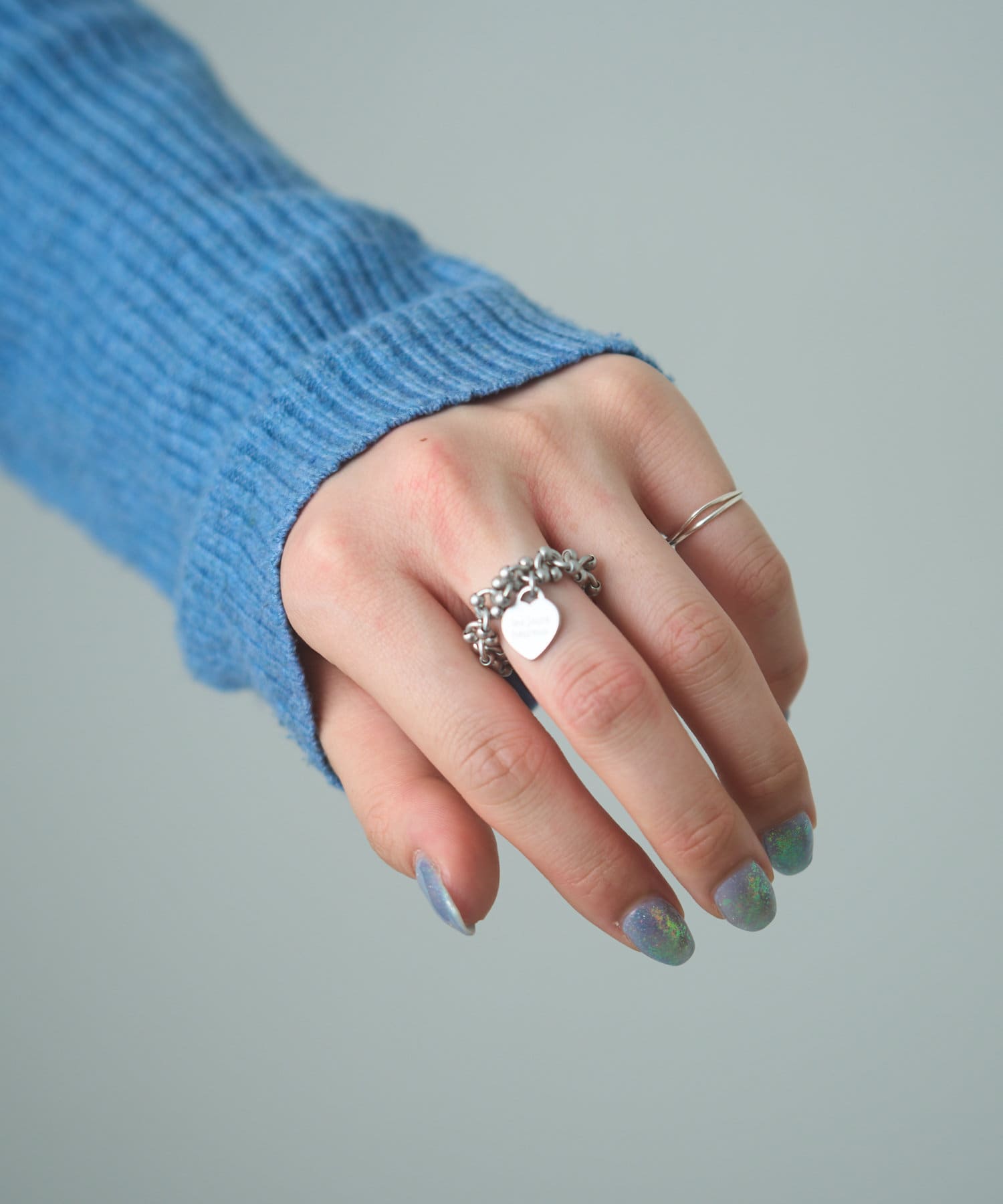 "les jours heureux"がハートのモチーフに刻まれたリング。
