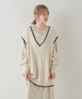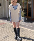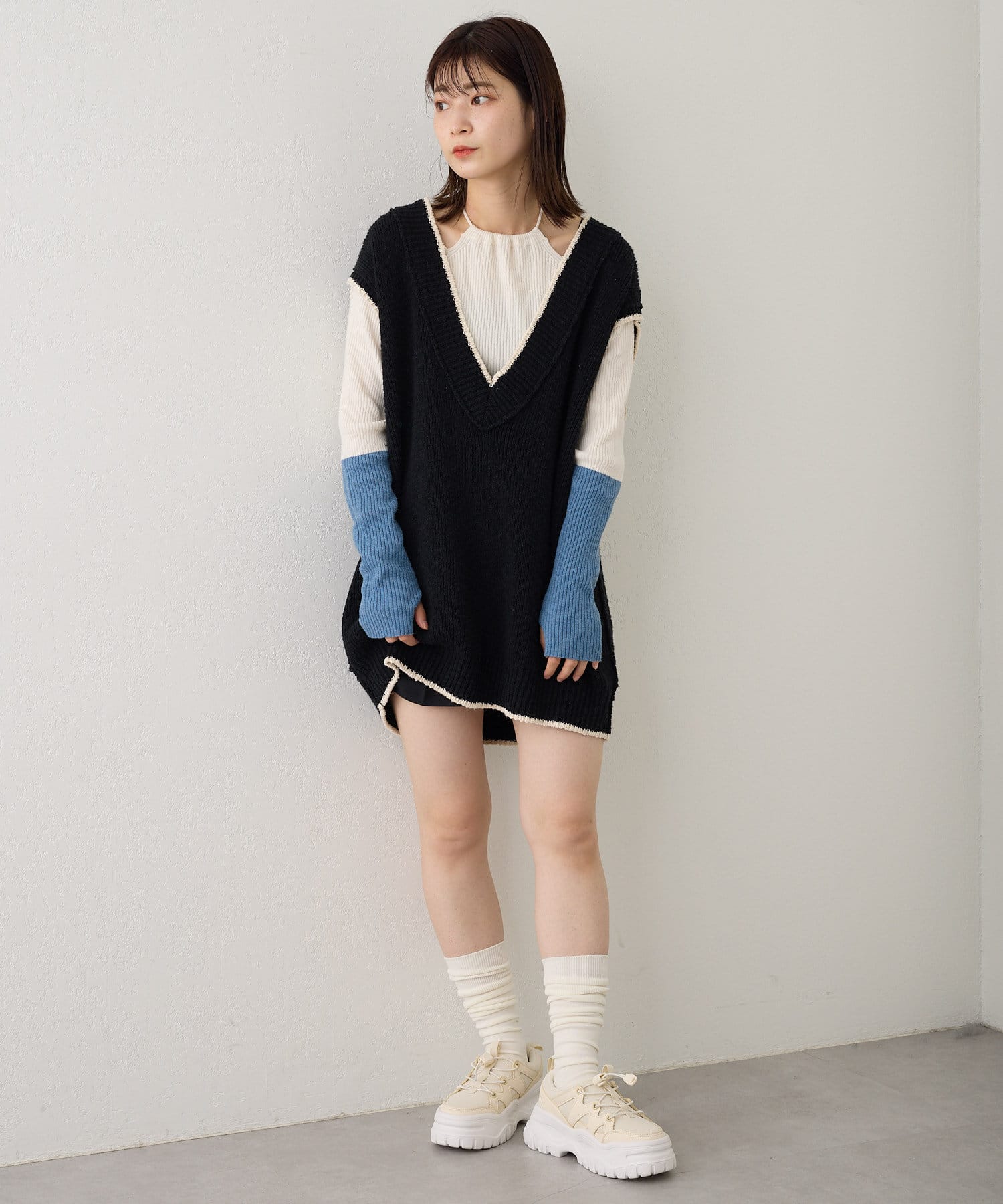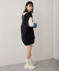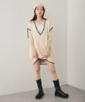 トレンドのミニボトムと合わせてワンピース風の着用がオススメ。
