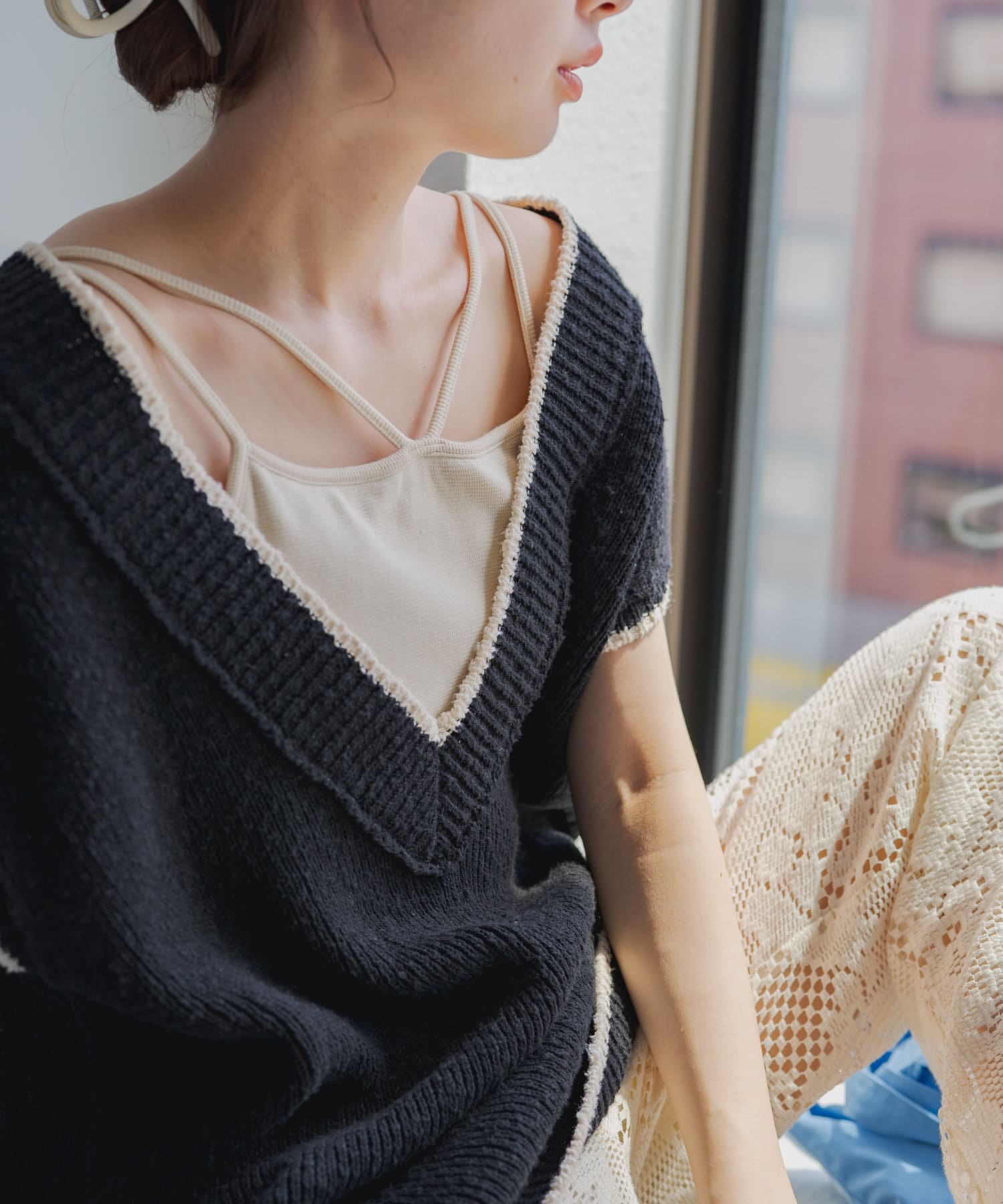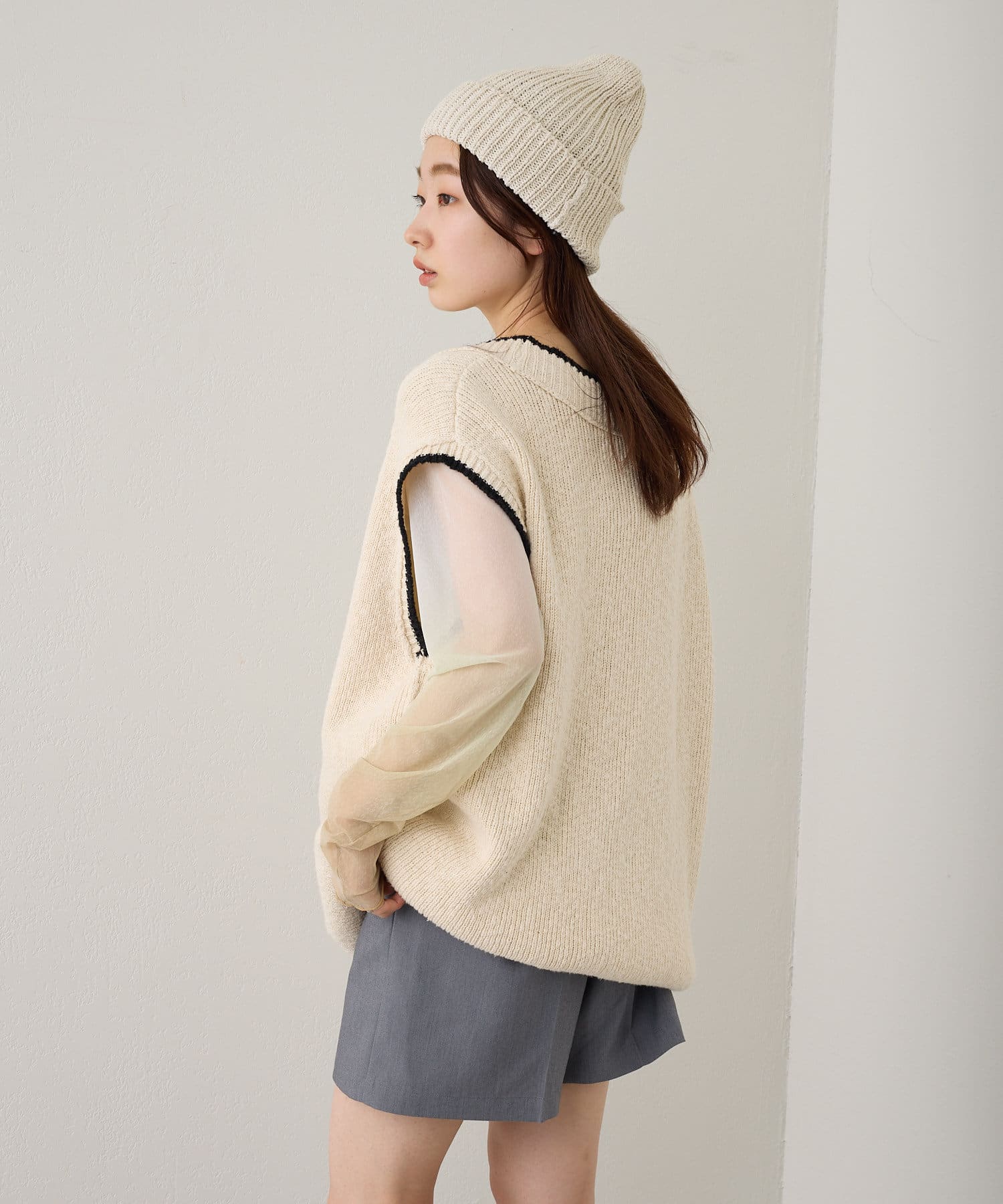 パイピングがアクセントのチルデンニットベストが今年も登場