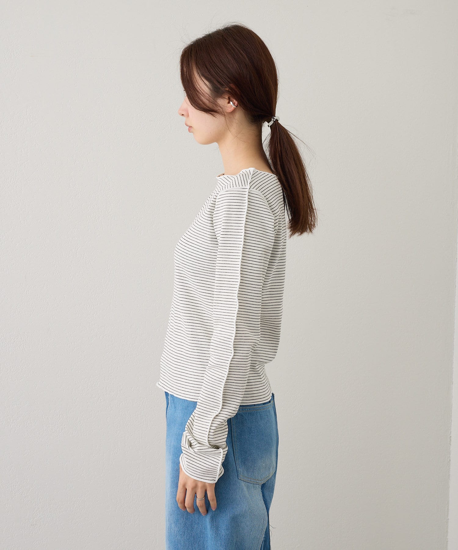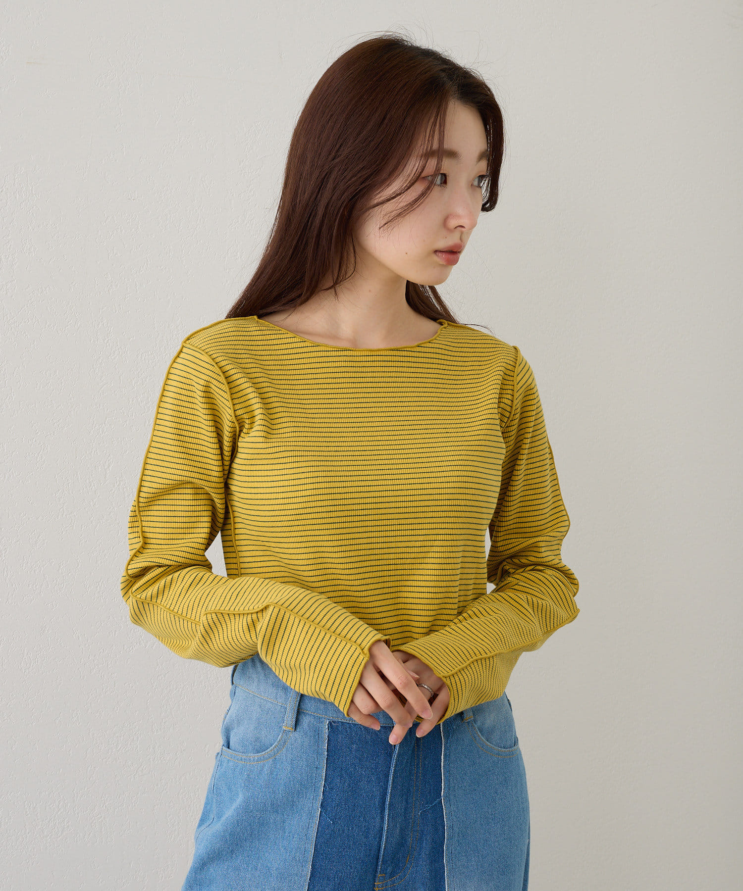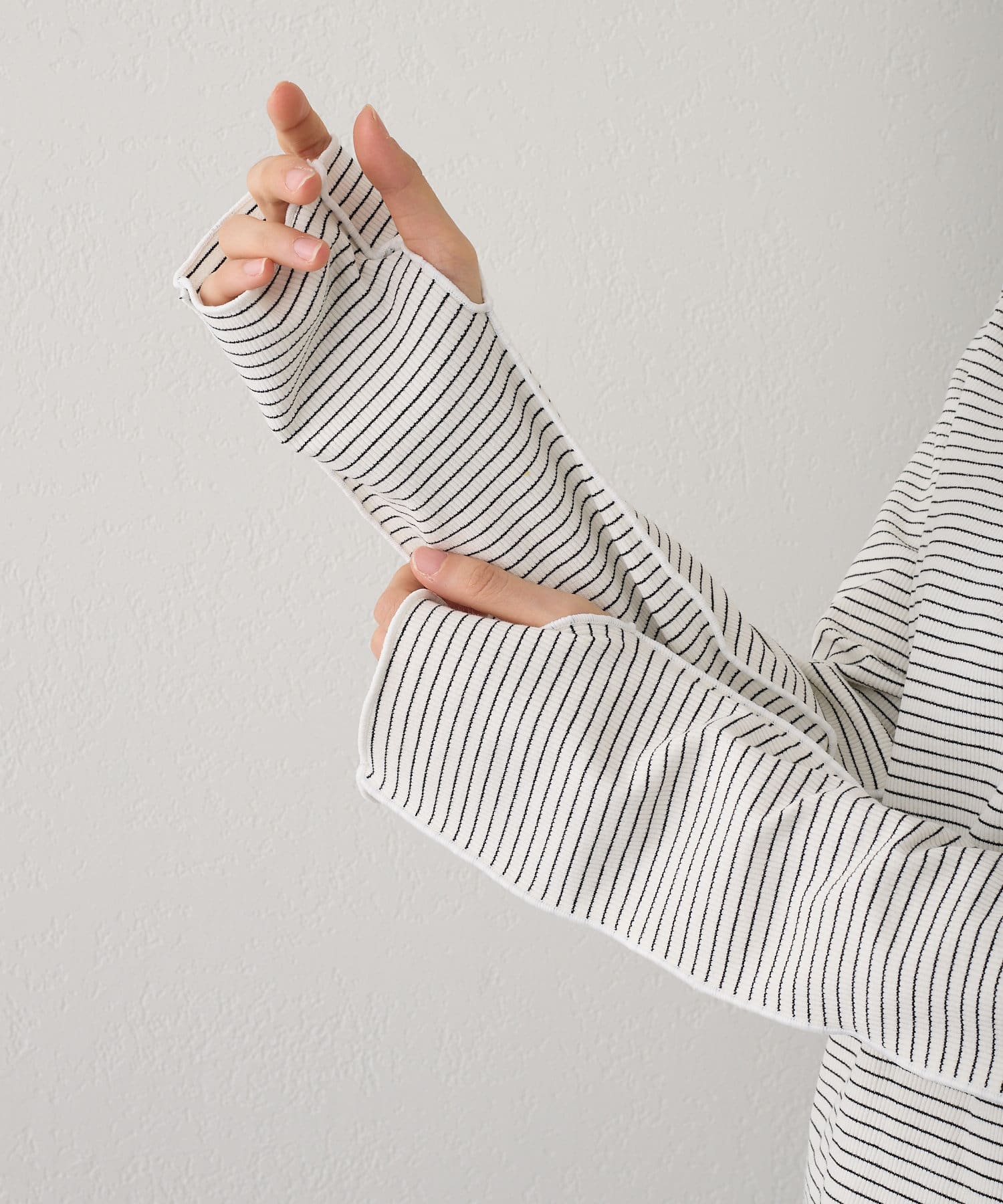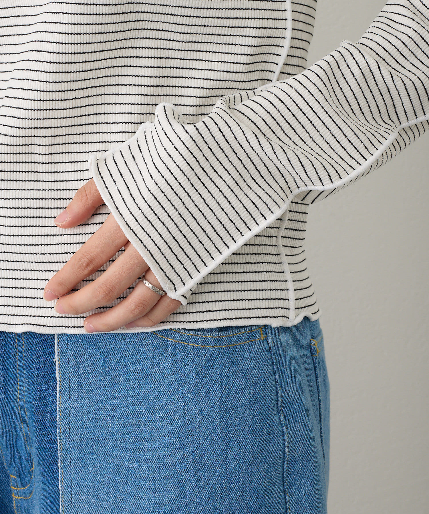 トレンド感満載のフィンガーホールで一味違ったボーダーteeです。