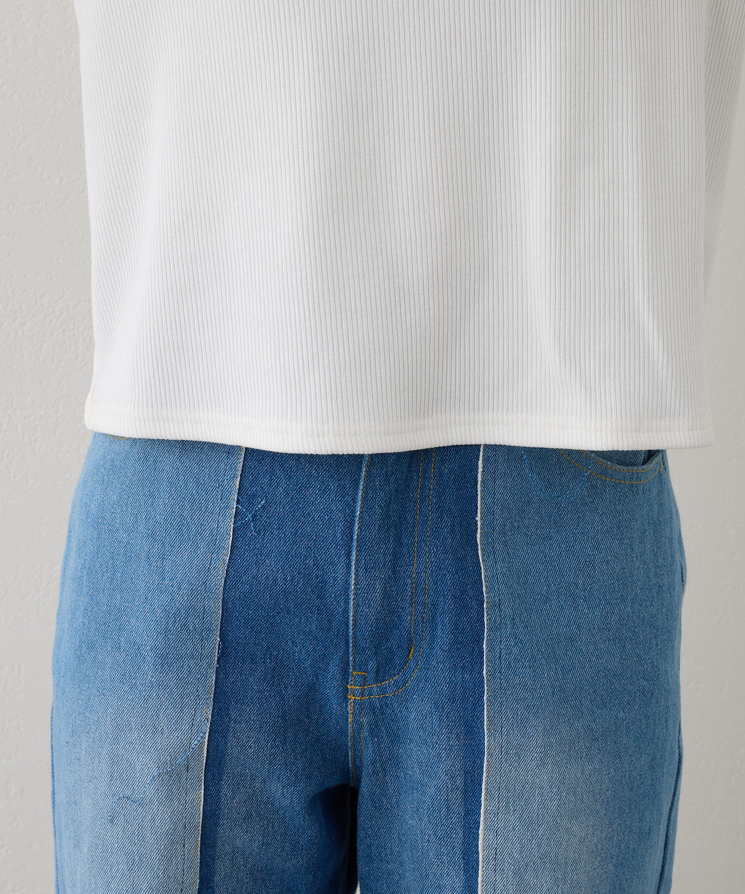 短めの丈感はタックインしてももたつかず、レイヤードにも活躍。