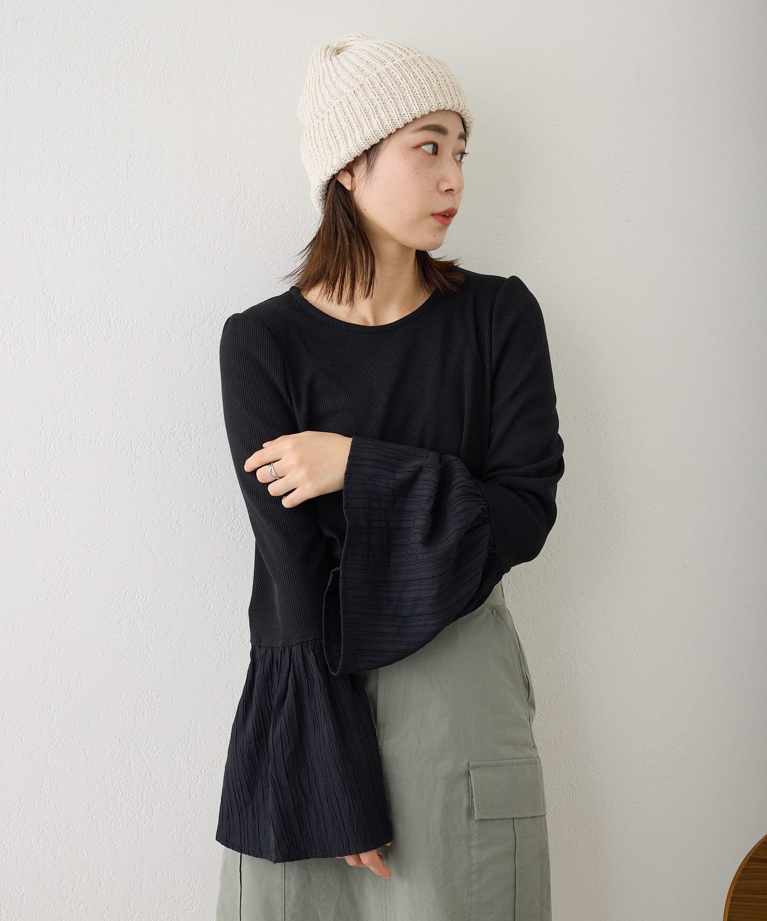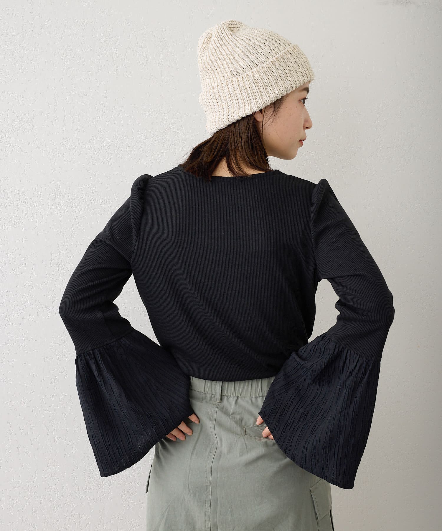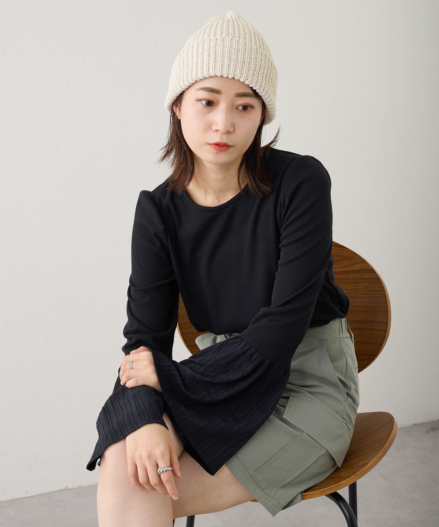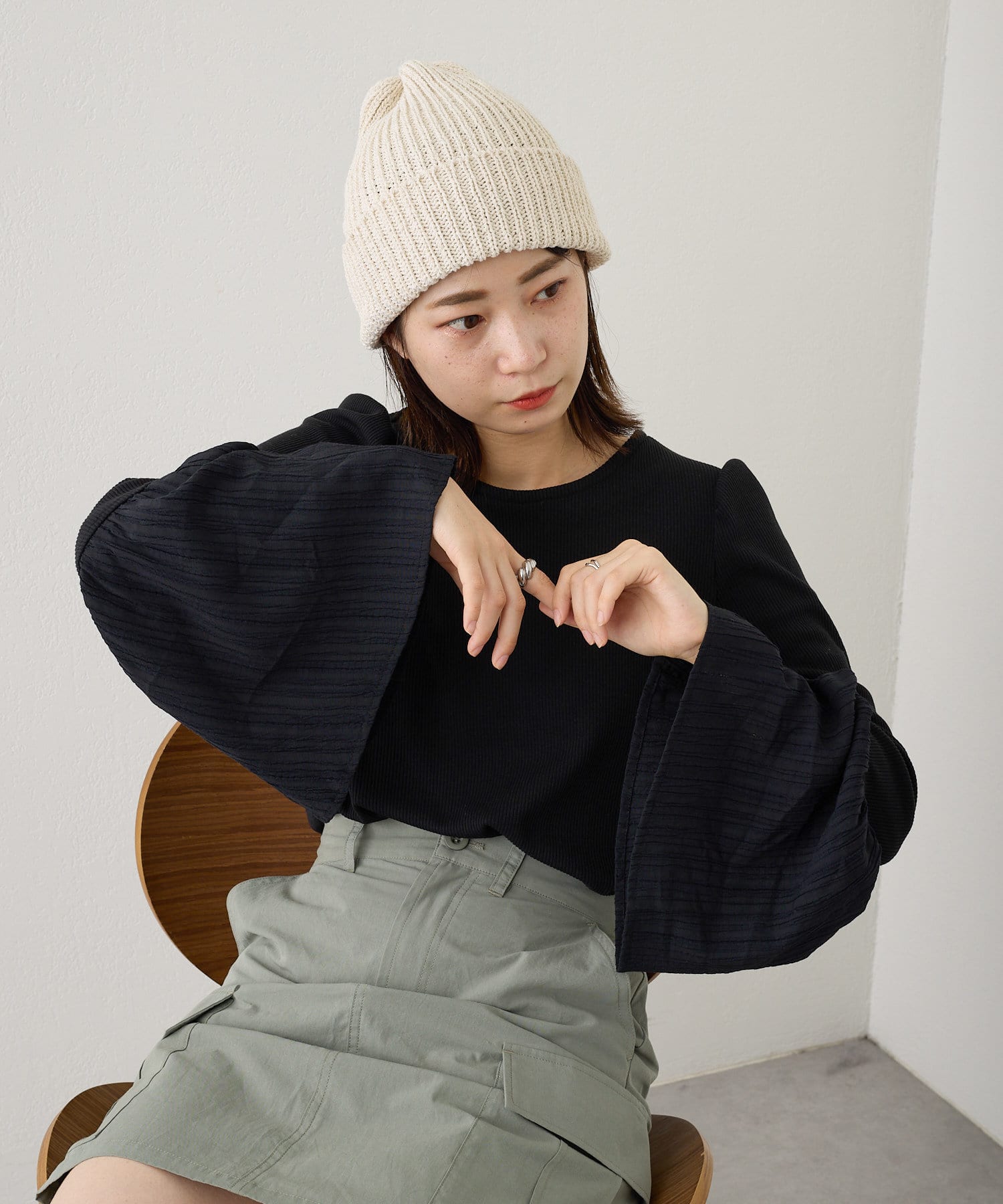 袖ティアードデザインを活かして一枚で着るのはもちろん、
