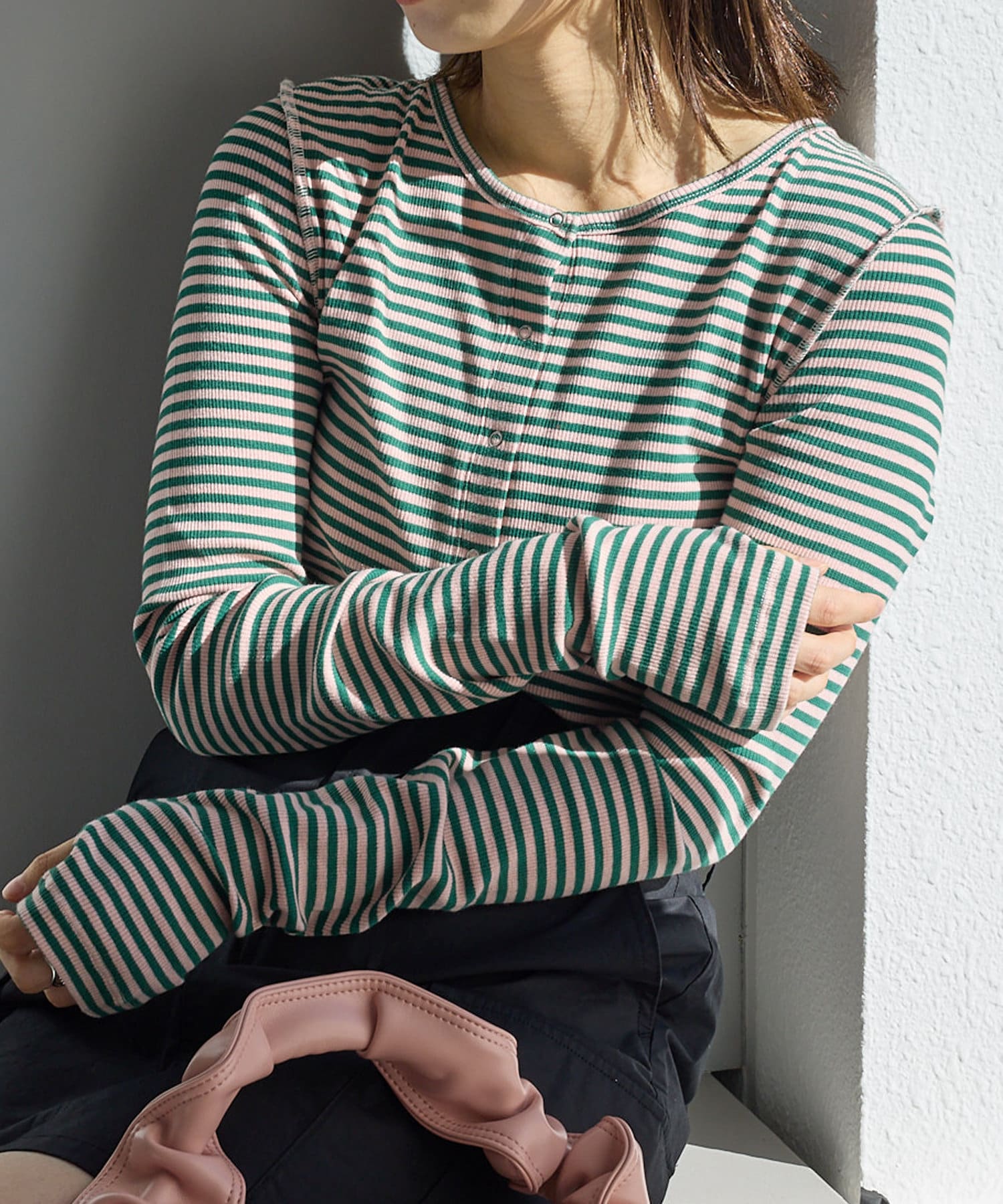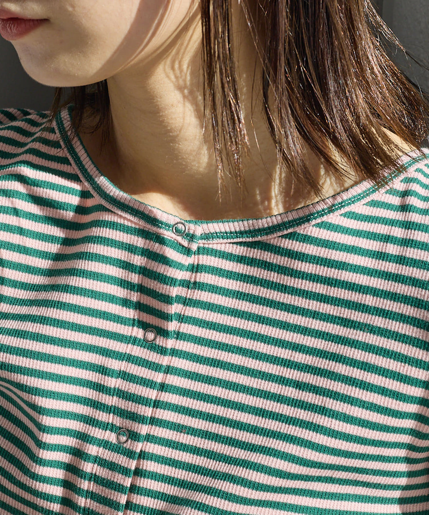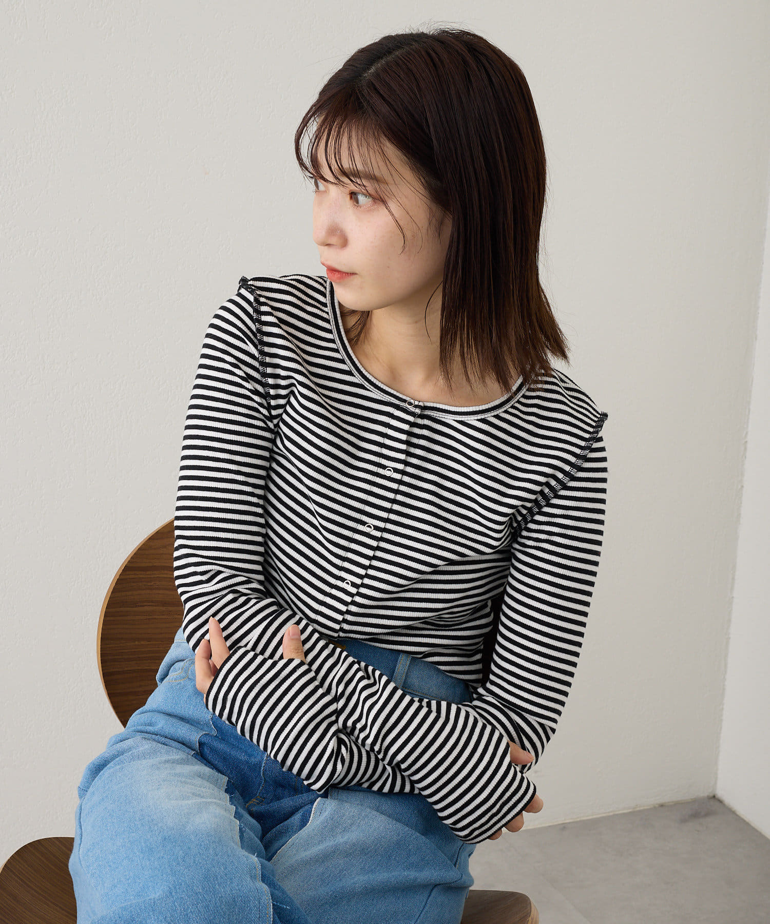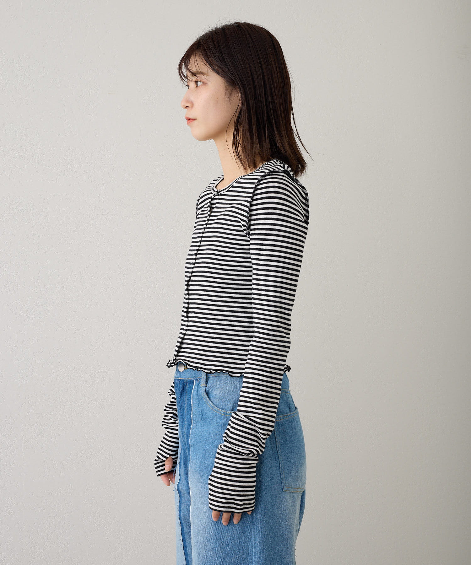 【2023SSアイテム/WEB限定】サムホールボーダー釦Tee