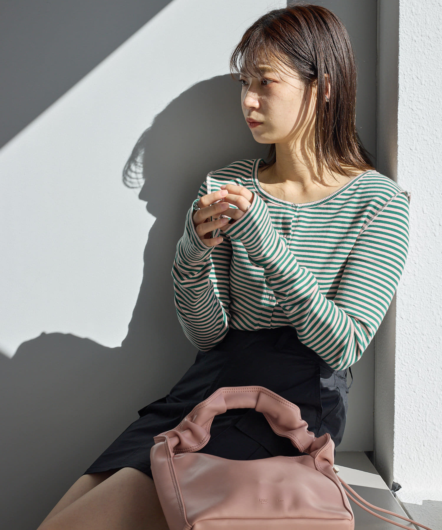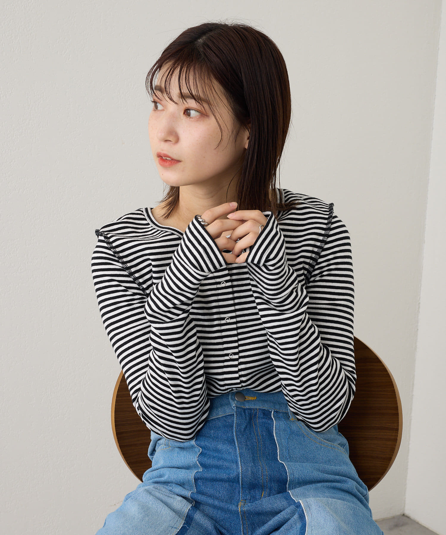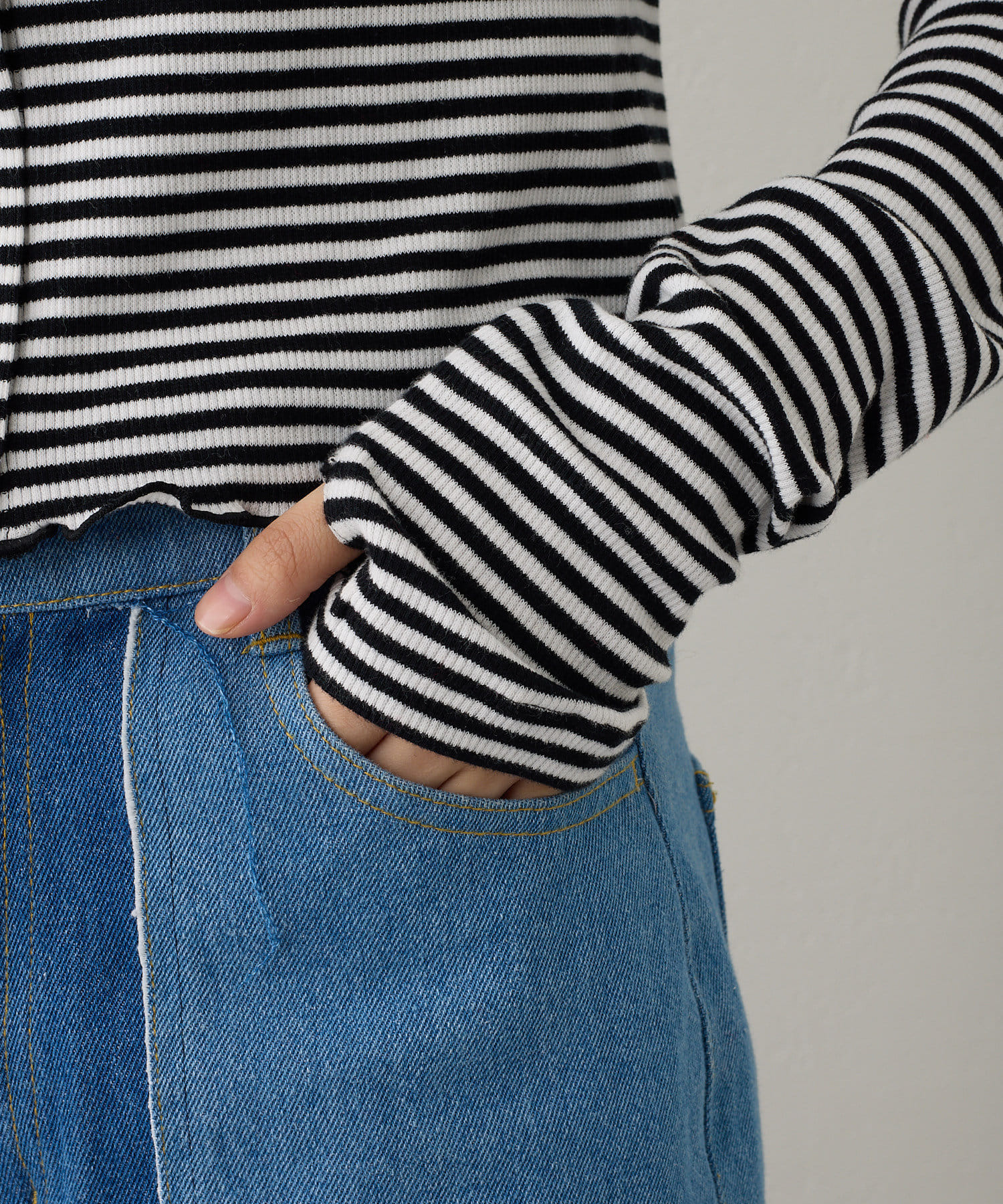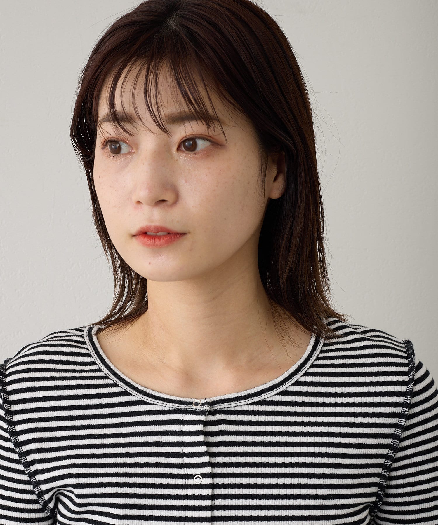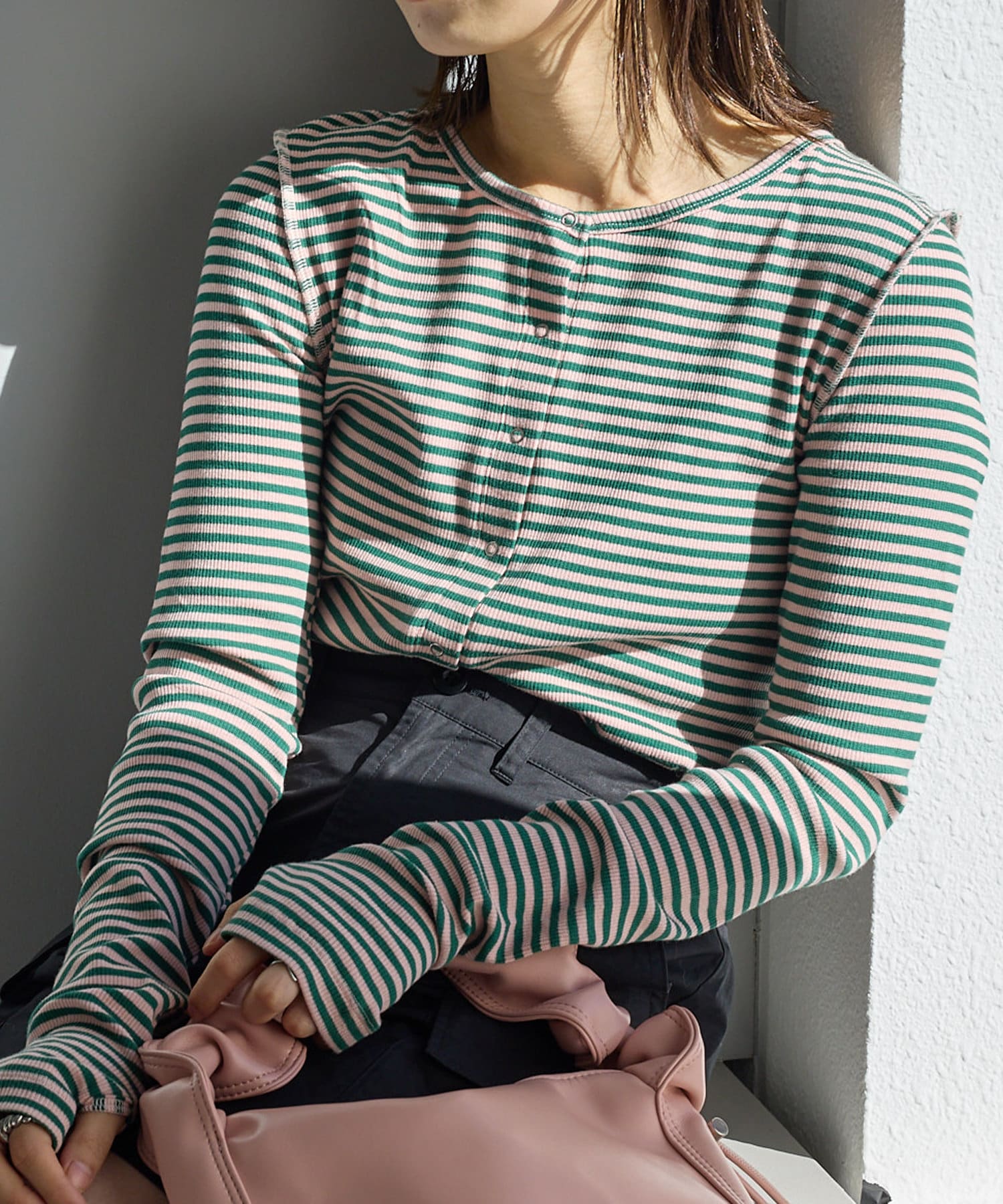 【2023SSアイテム/WEB限定】サムホールボーダー釦Tee