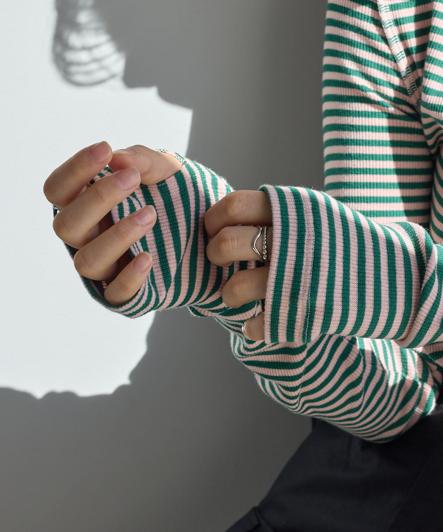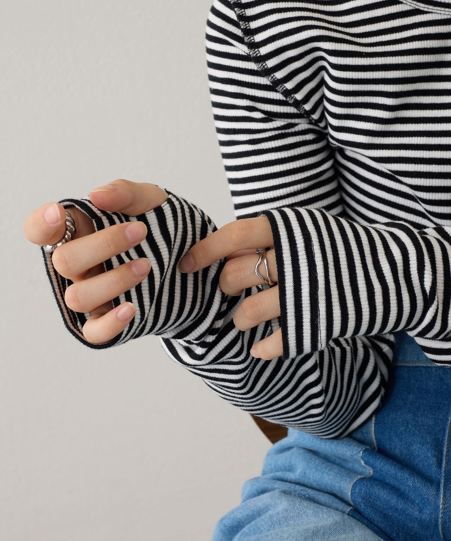 フィンガーホールのデザインは手元に華やかさをプラスしてこなれ感を出してくれます。