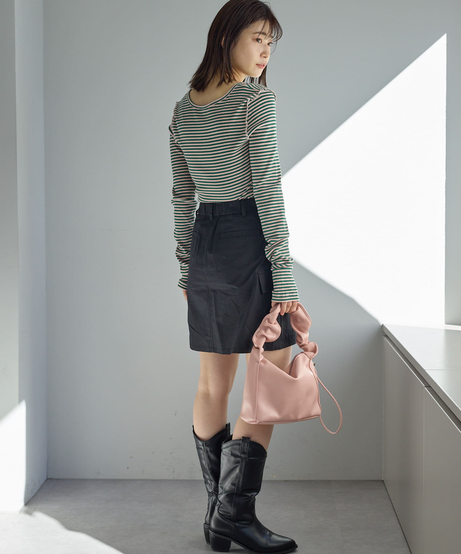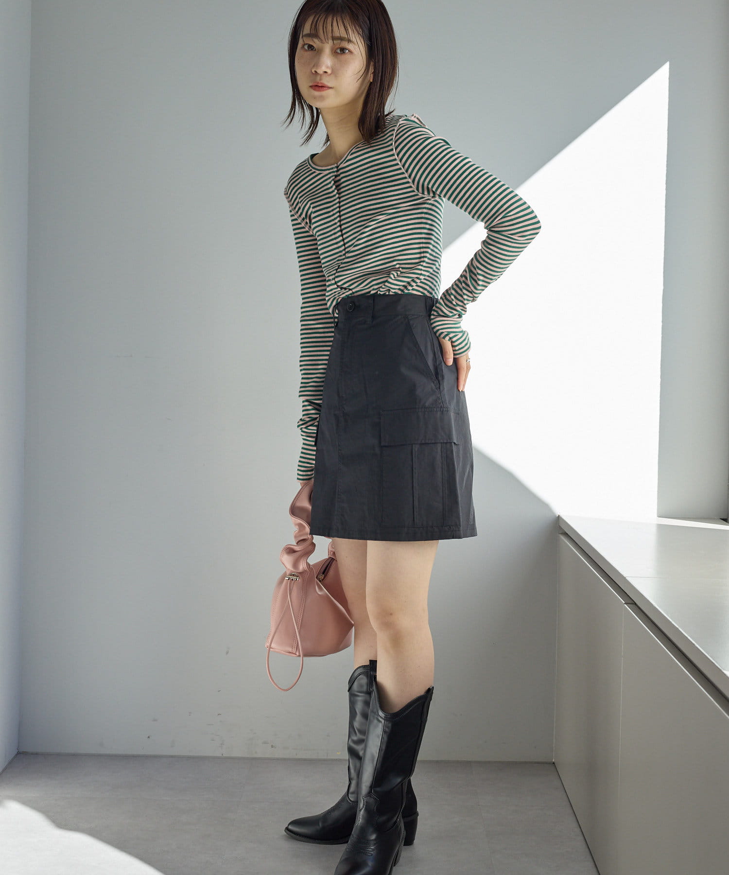 女性らしく着たい方は、Iラインスカートやマーメイドスカートと合わせ、