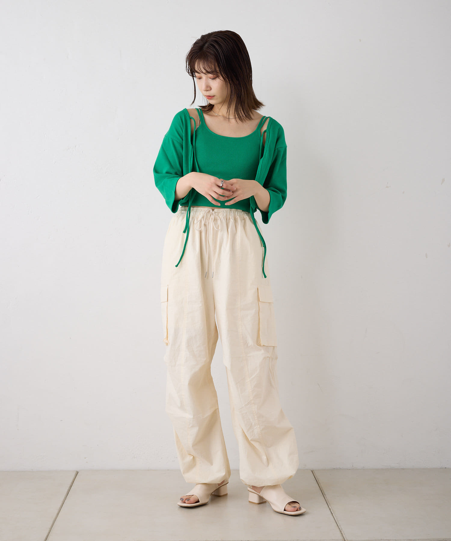 同色のカーディガンとカップ付きのキャミソールがセットになったアイテム。