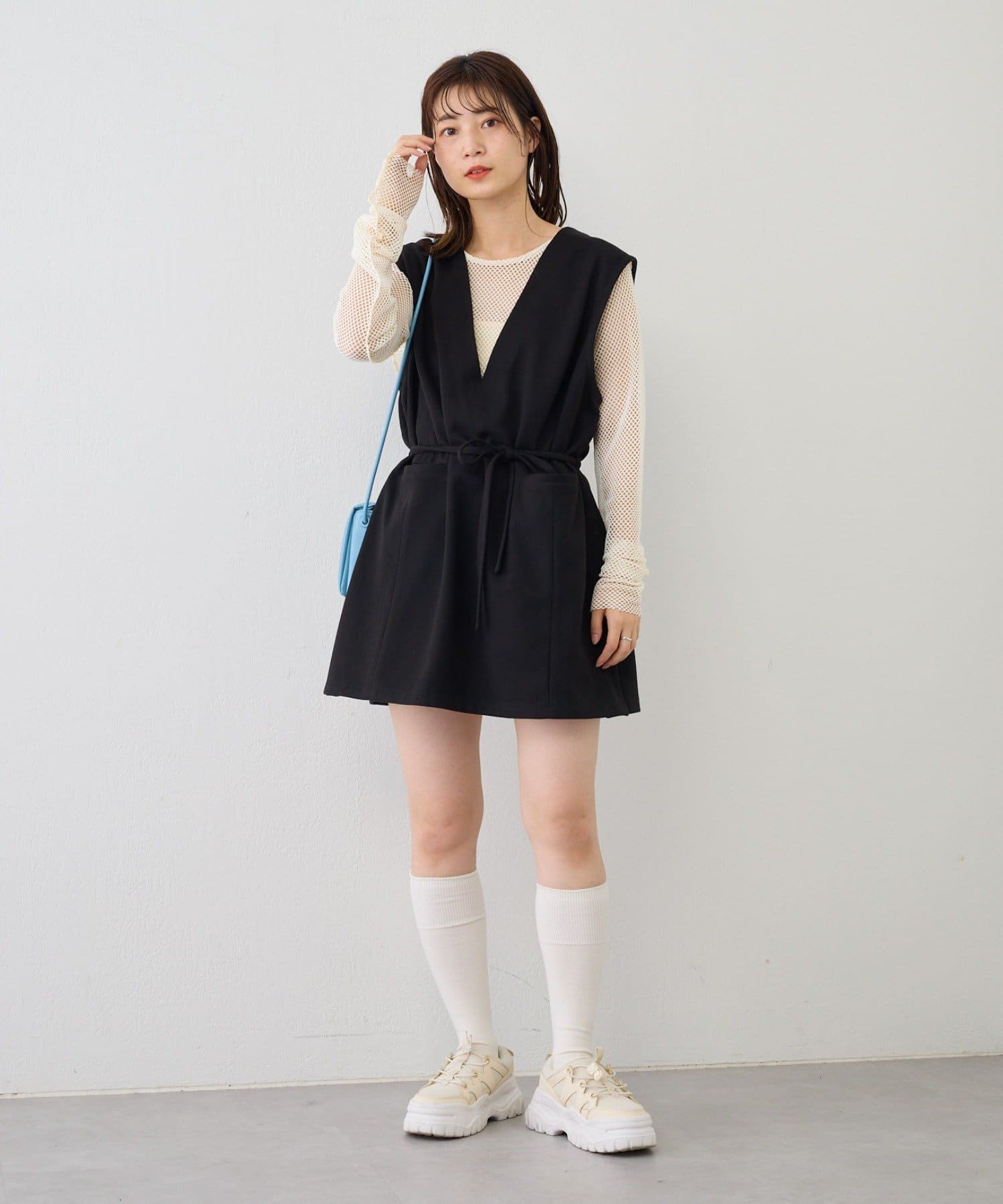 インナーにキャミソールやカットソーはもちろん、メンズライクなシャツやロンTなどともレイヤード可能です。