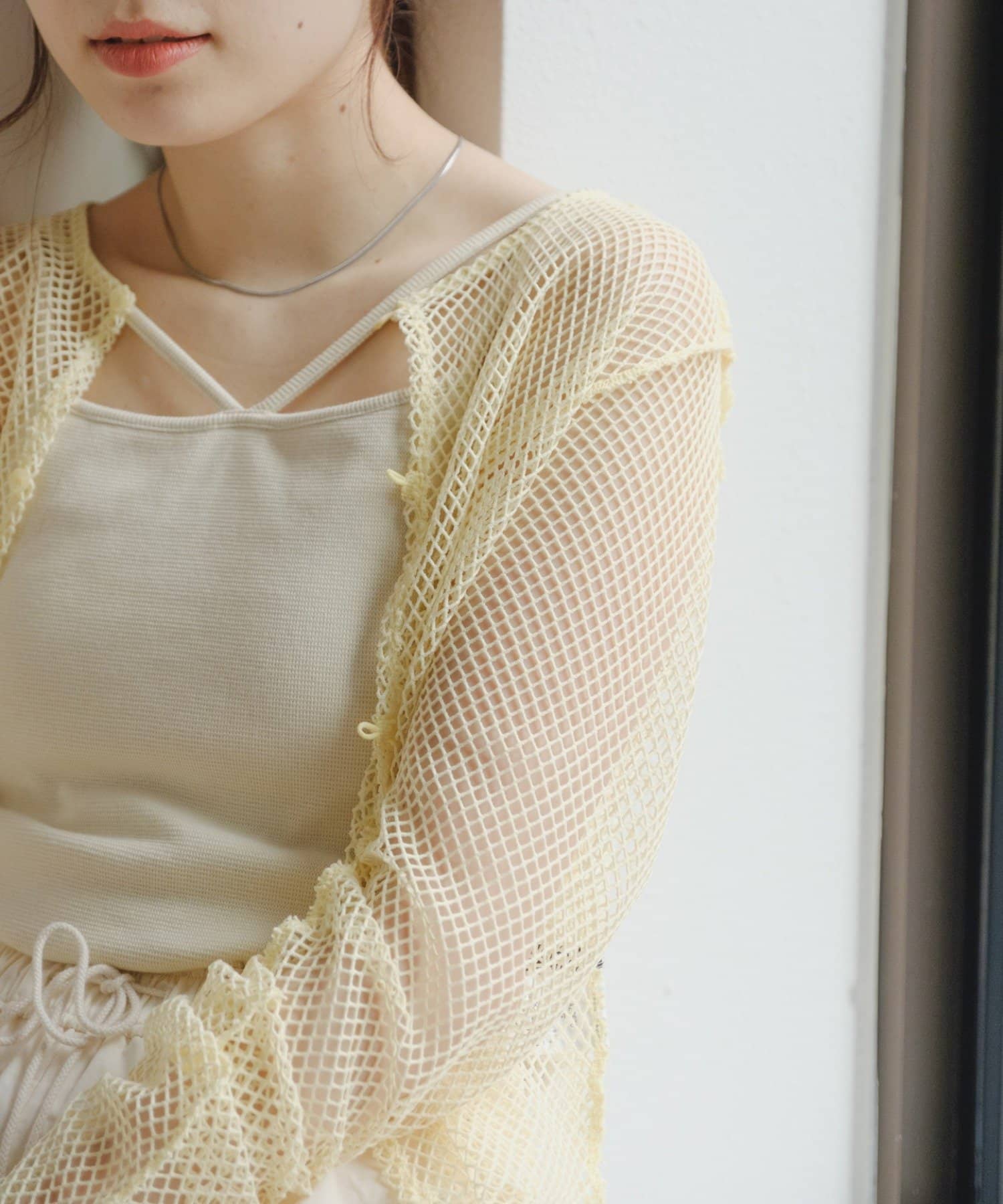 0人が参考になったと回答しています。春夏使える y 2023.03.11 アイボリー F 身長161cm 体重50kg~54kg 25歳~29歳 購入場所:店舗メッシュなので引っかけないように気をつけようと思います。袖口も縫われているとかではないのでほつれないか心配ですが、いろんな着方ができそうでかわいいです。