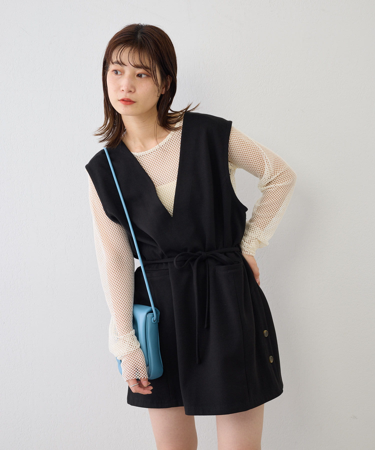 インナーにキャミソールやカットソーはもちろん、メンズライクなシャツやロンTなどともレイヤード可能です。