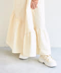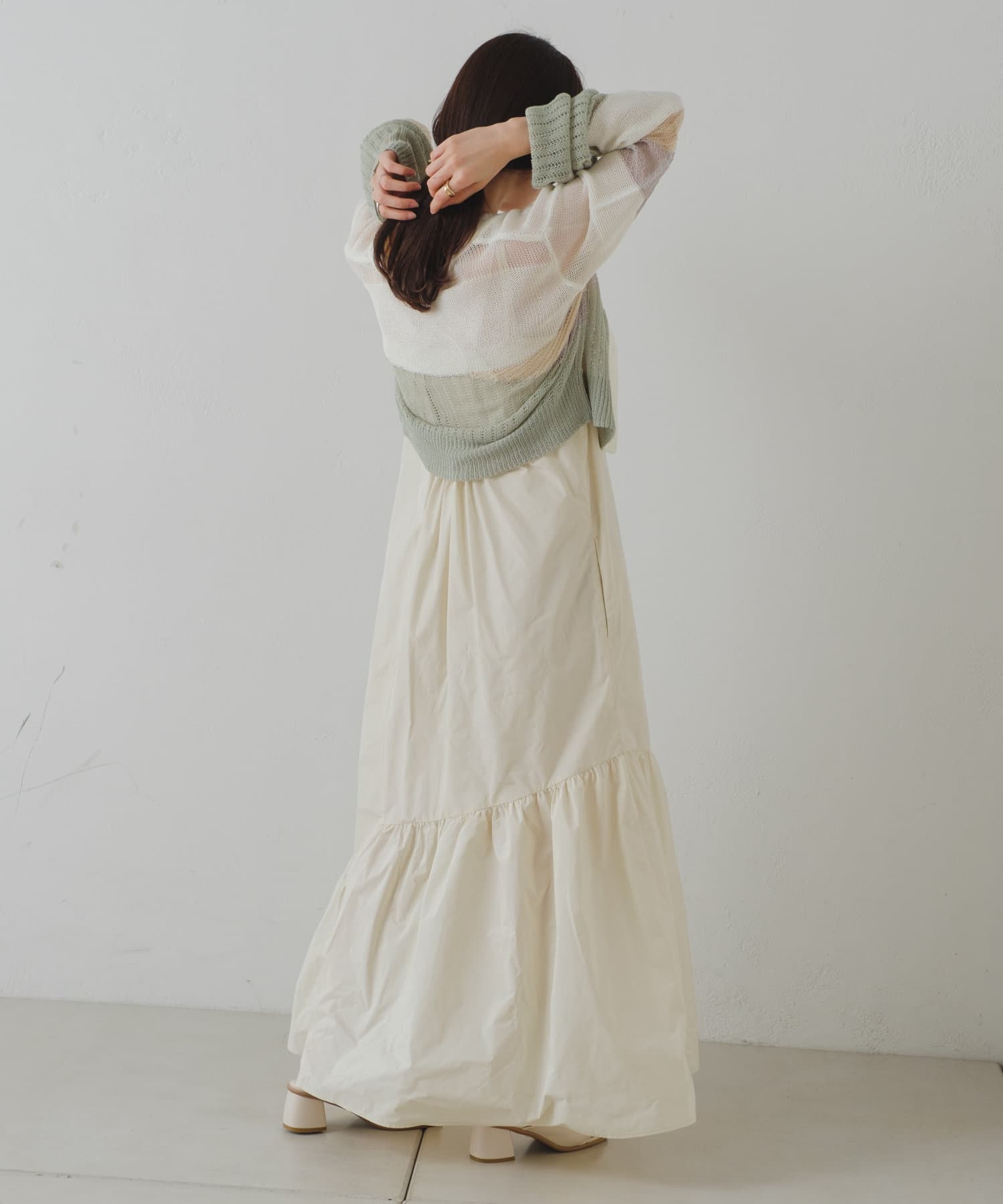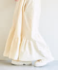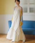 裾にかけて広がるマーメイドシルエットで、長めの丈感もポイント。