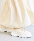 白でも素材がシャカシャカしていて甘すぎなくて良きです。白のトップスに合わせてオールホワイトも可愛いです。