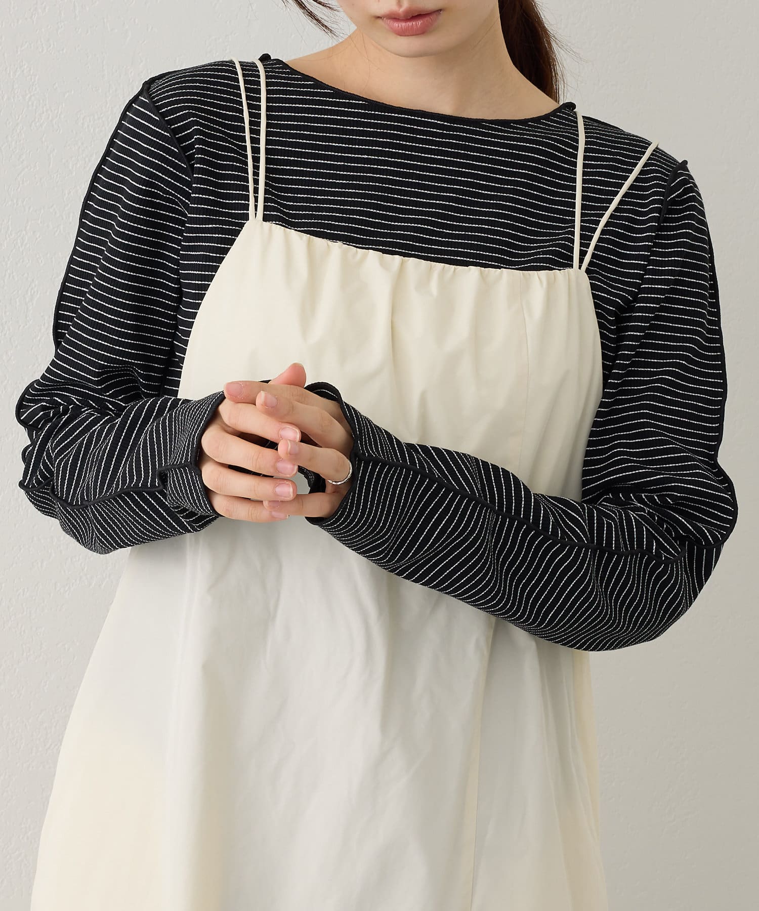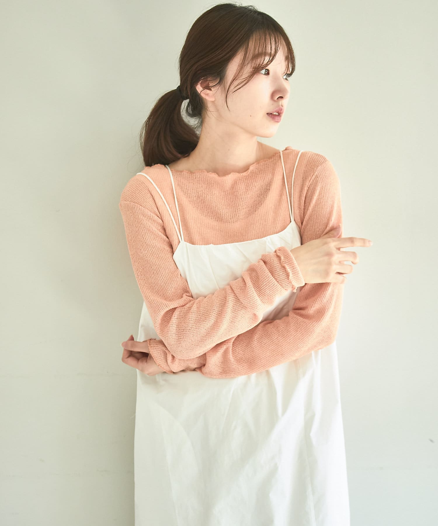 クロップド丈のトップスを上に重ねれば素敵なレイヤードスタイルに。