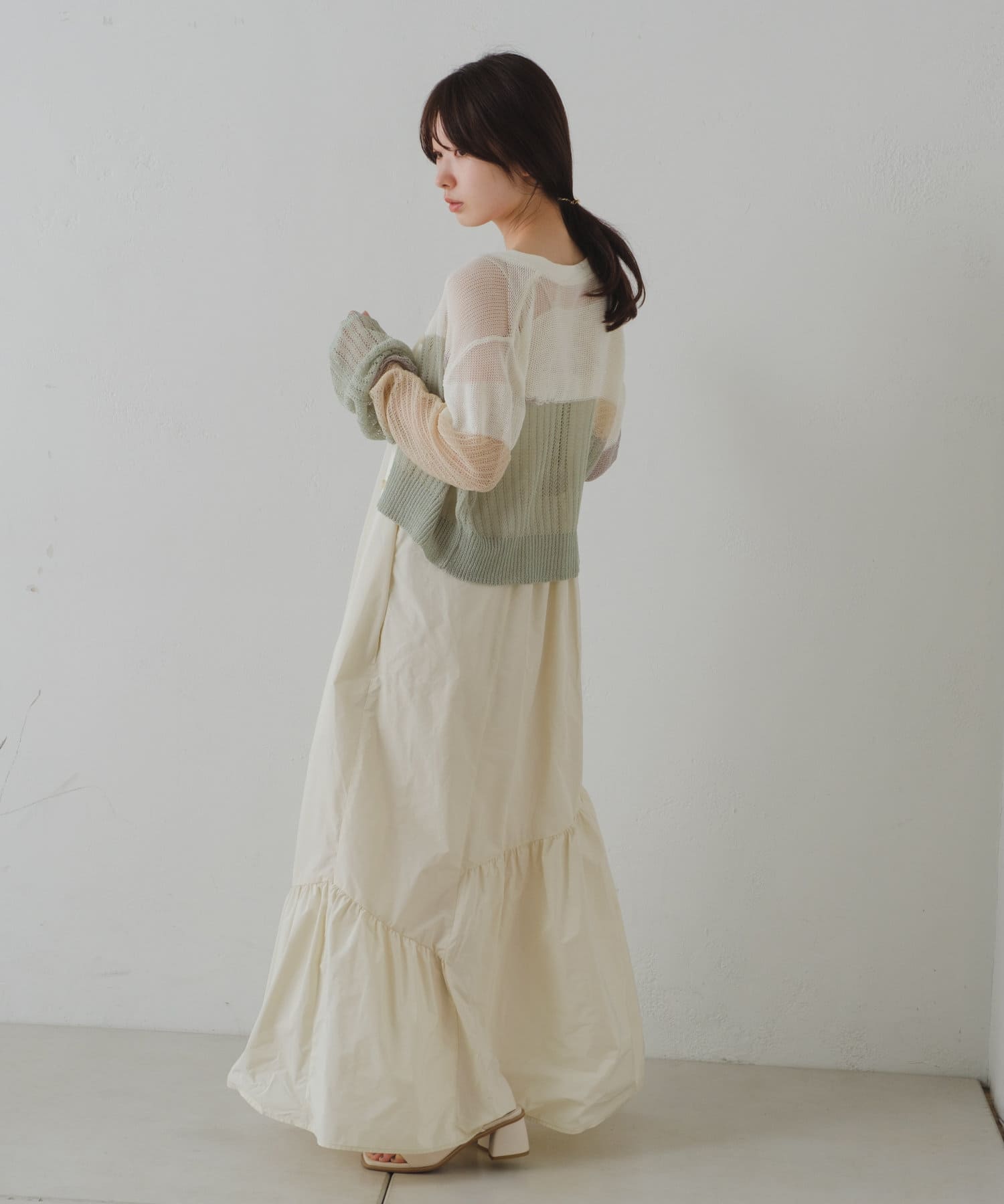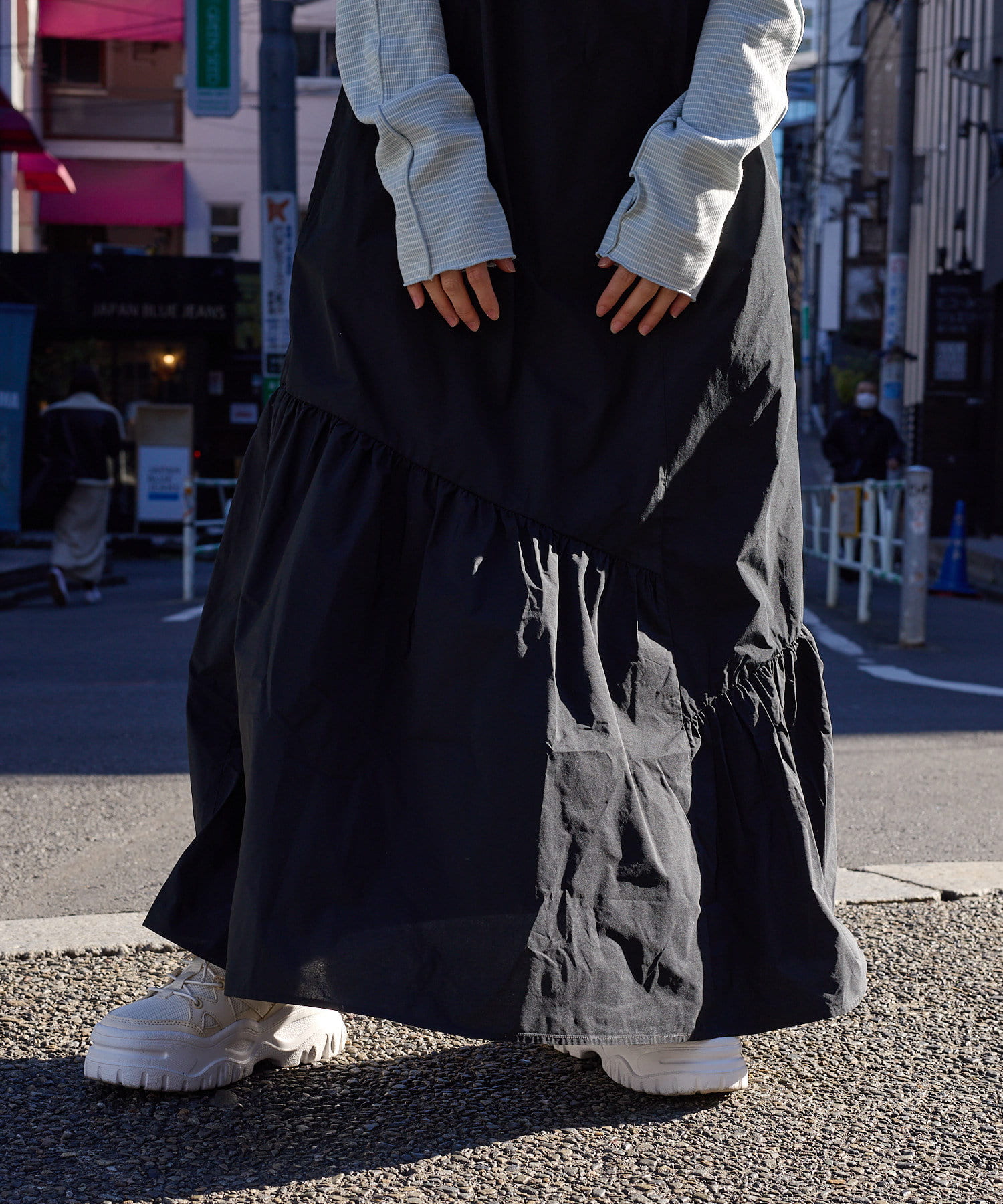 ティアードの切替ラインがアシメトリーになって、因りデザイン性がアップ。