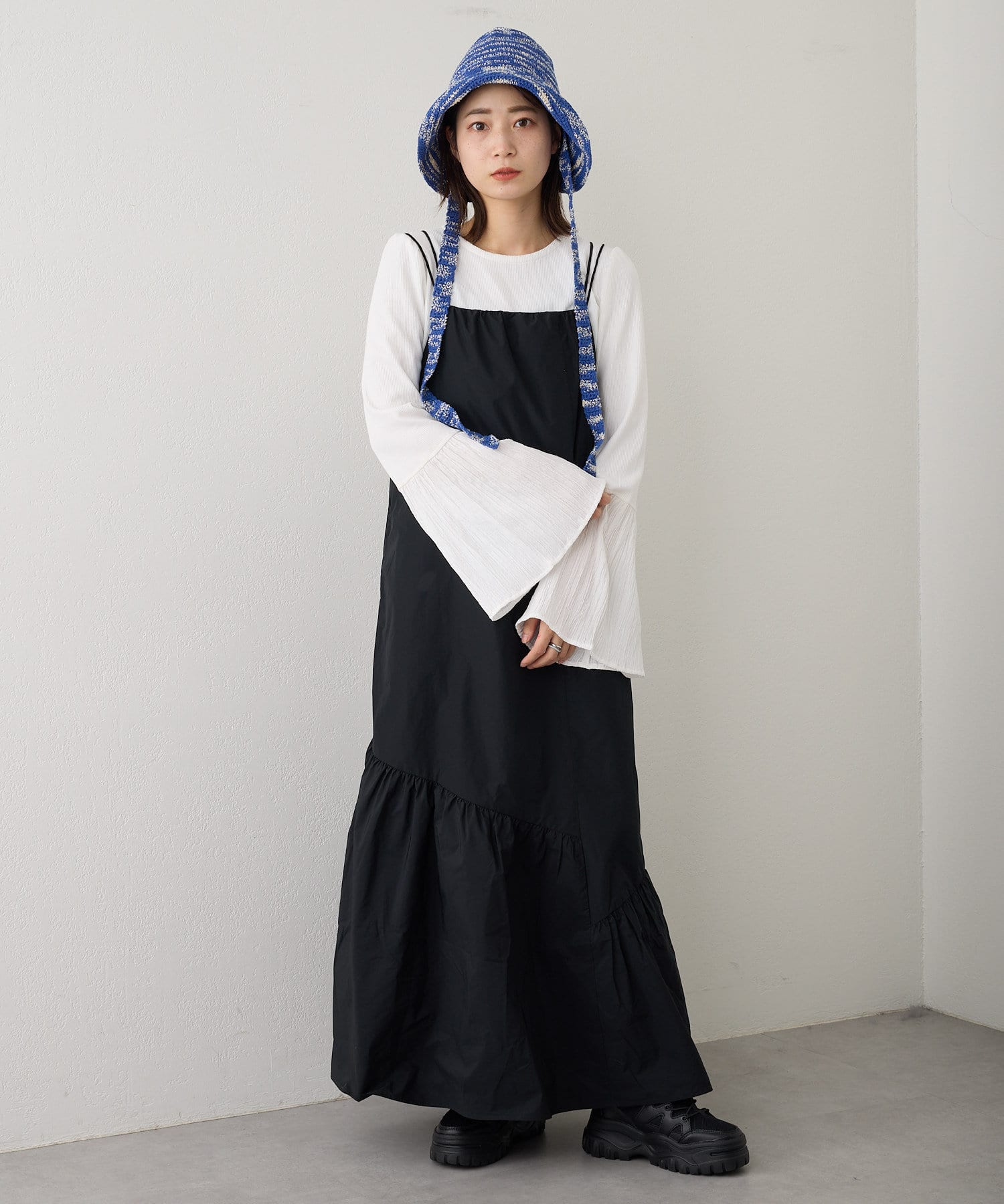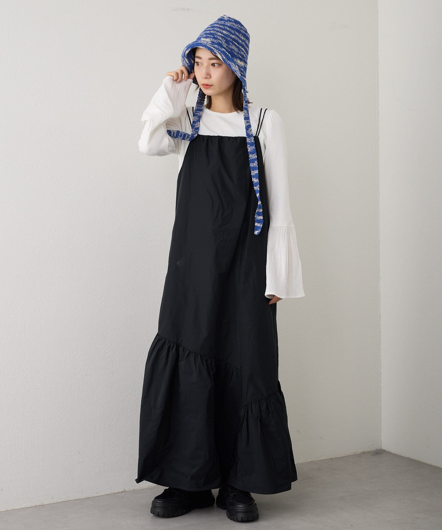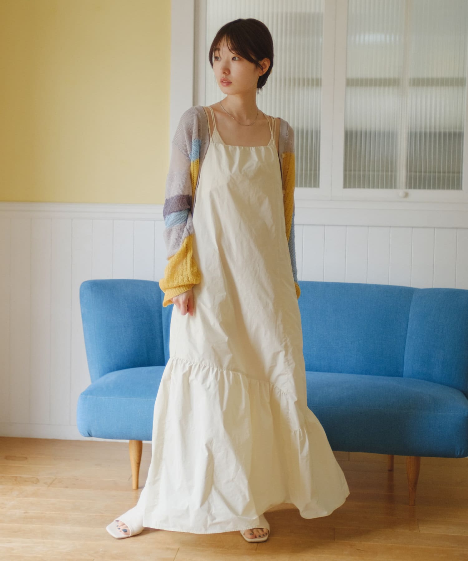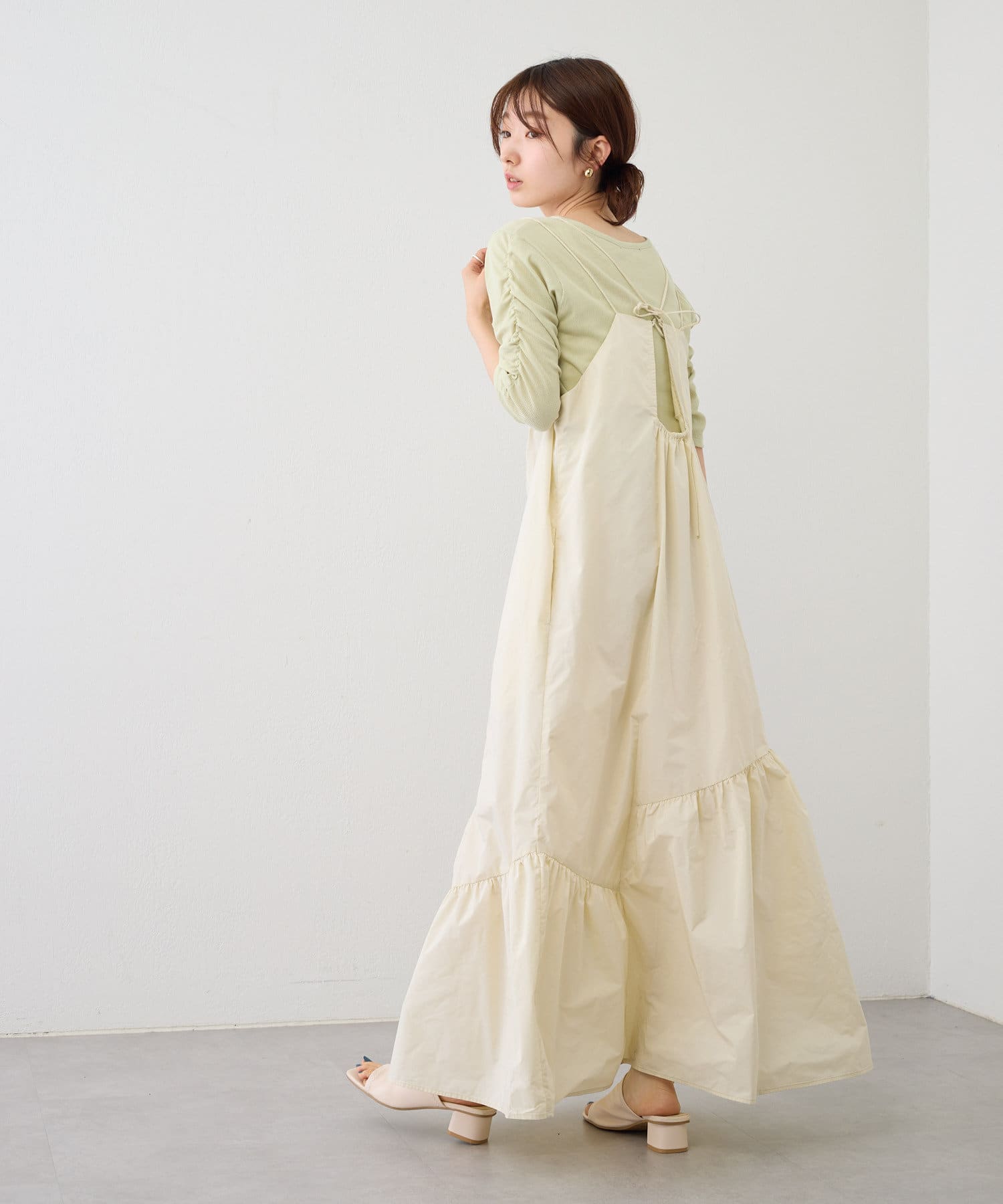 ボリューミーなギャザーが魅力のロングキャミドレス