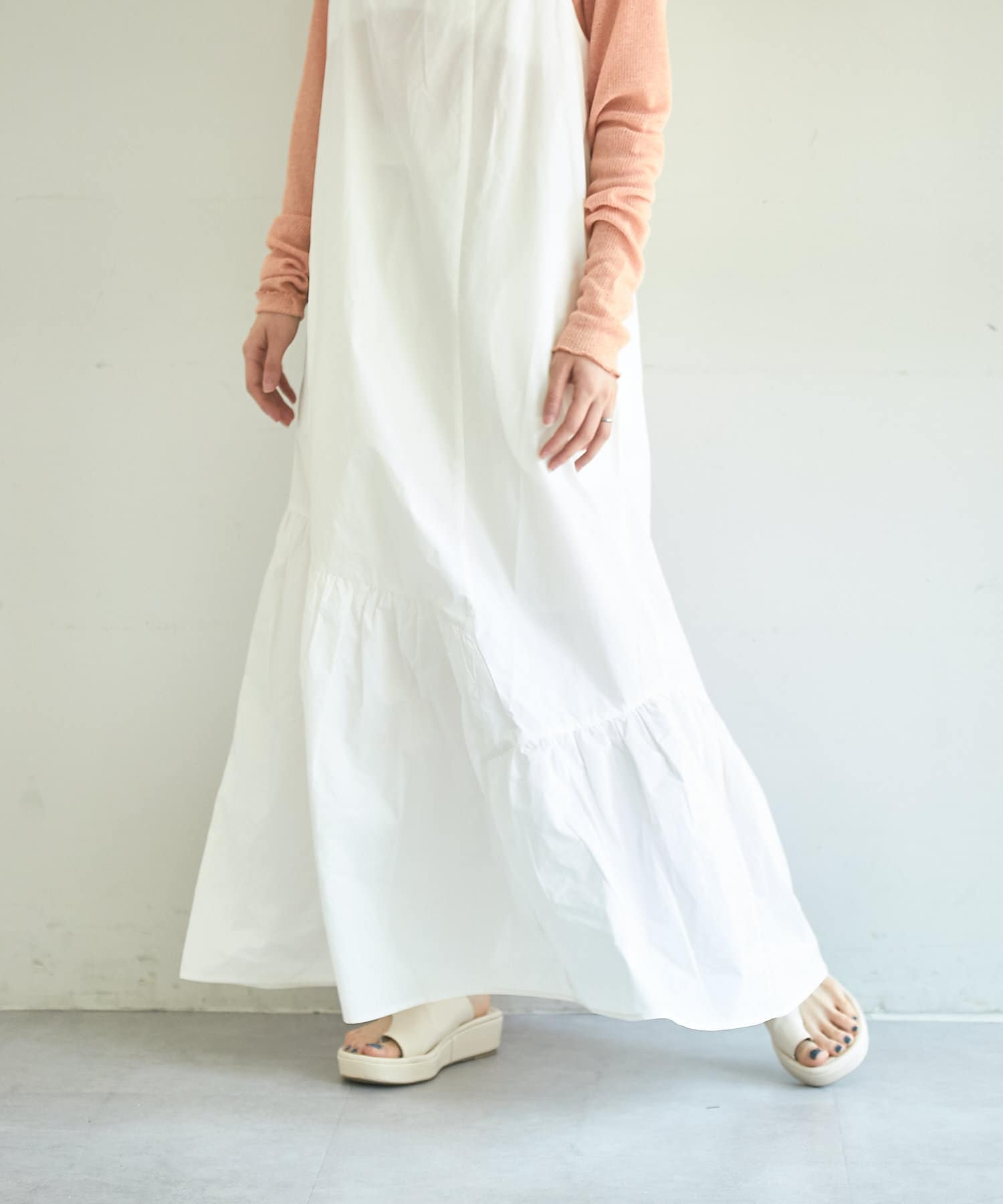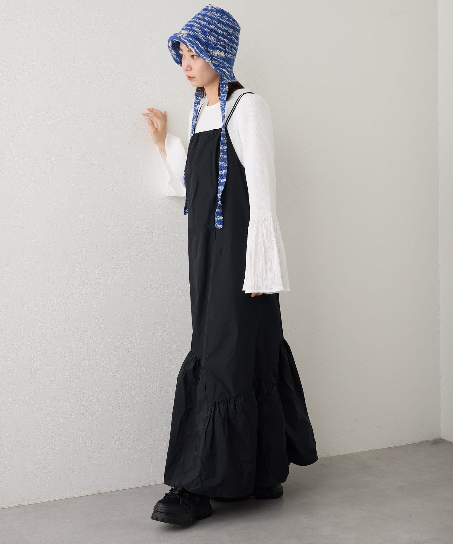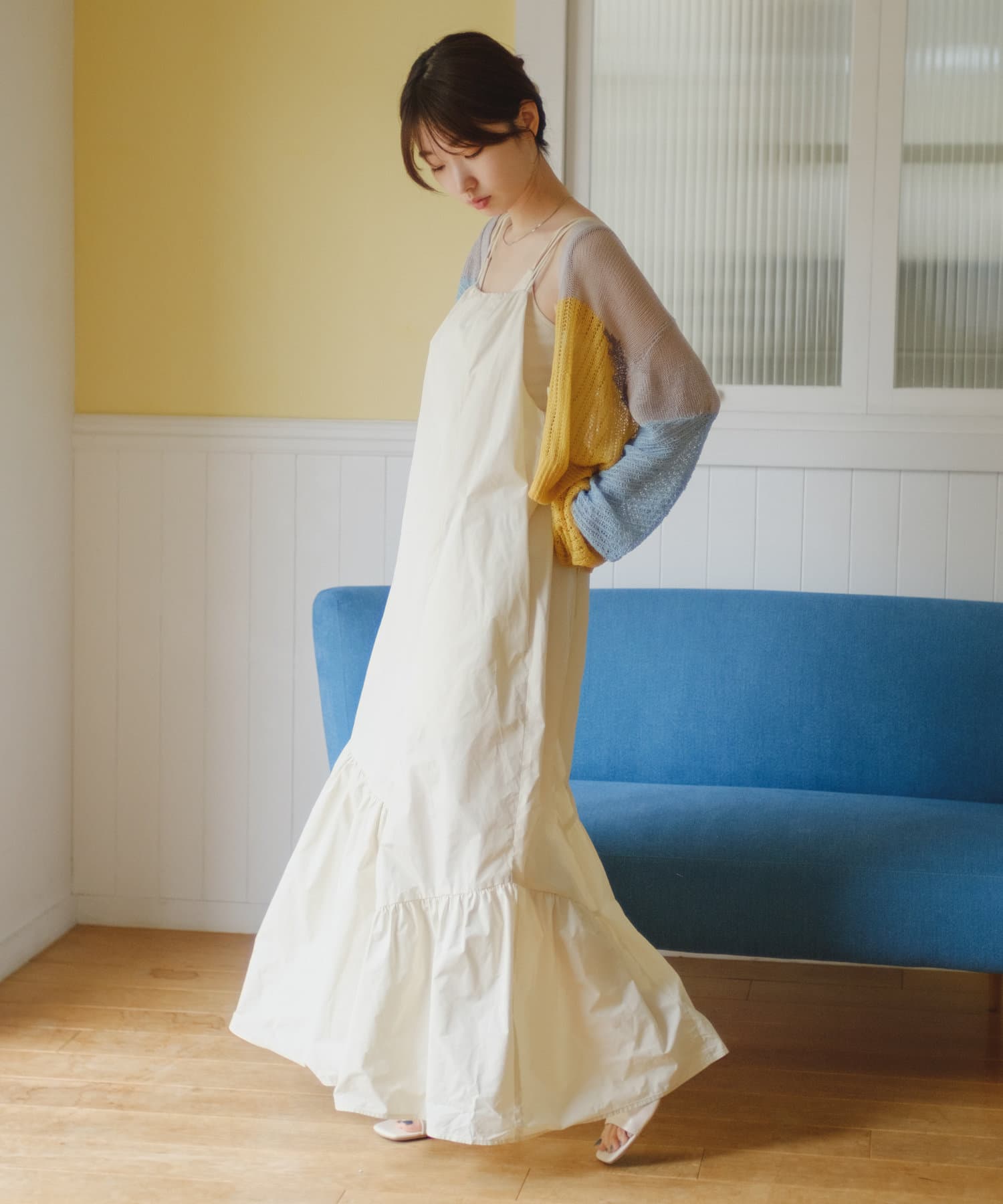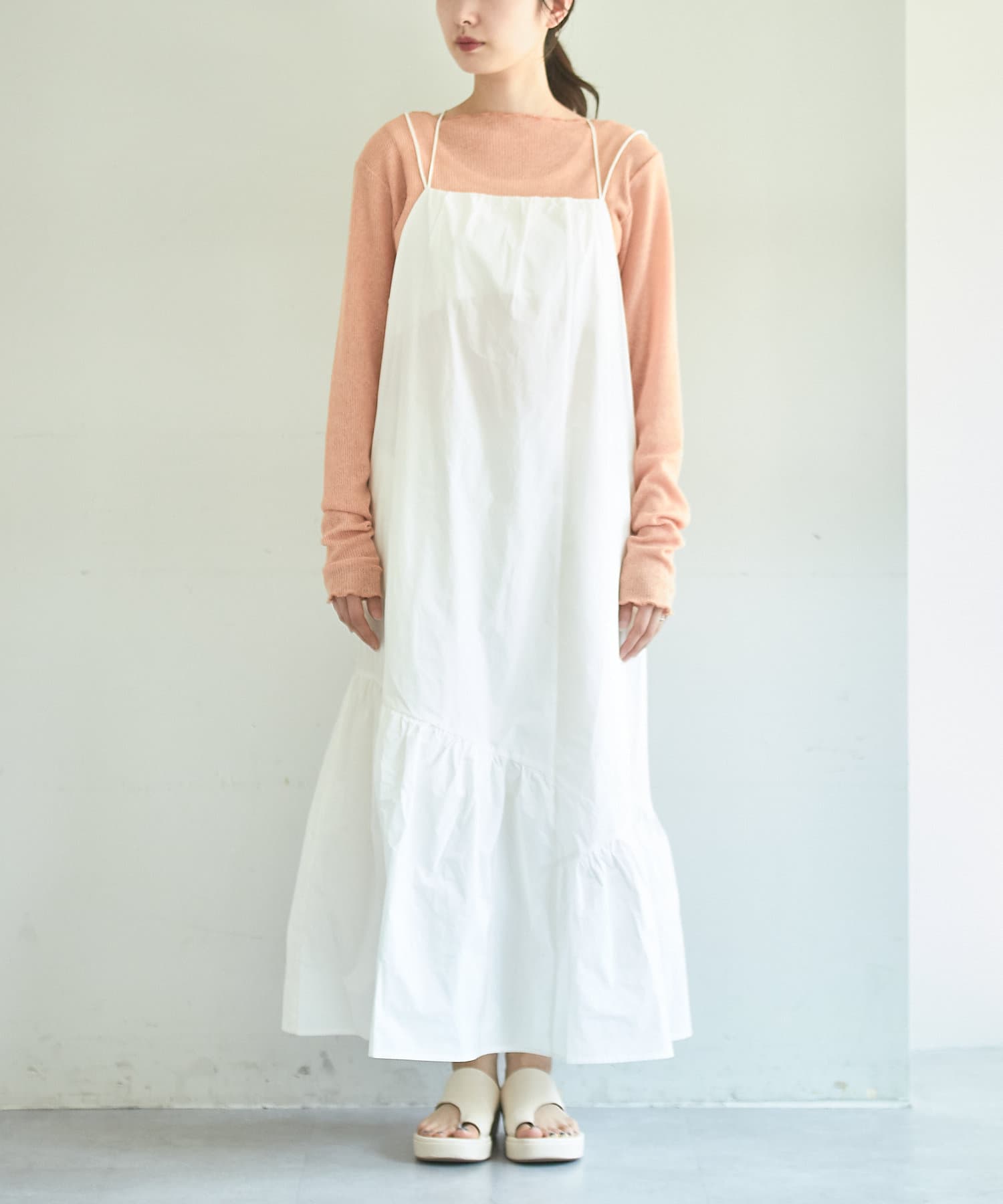 ボリューミーなギャザーが魅力のロングキャミドレス