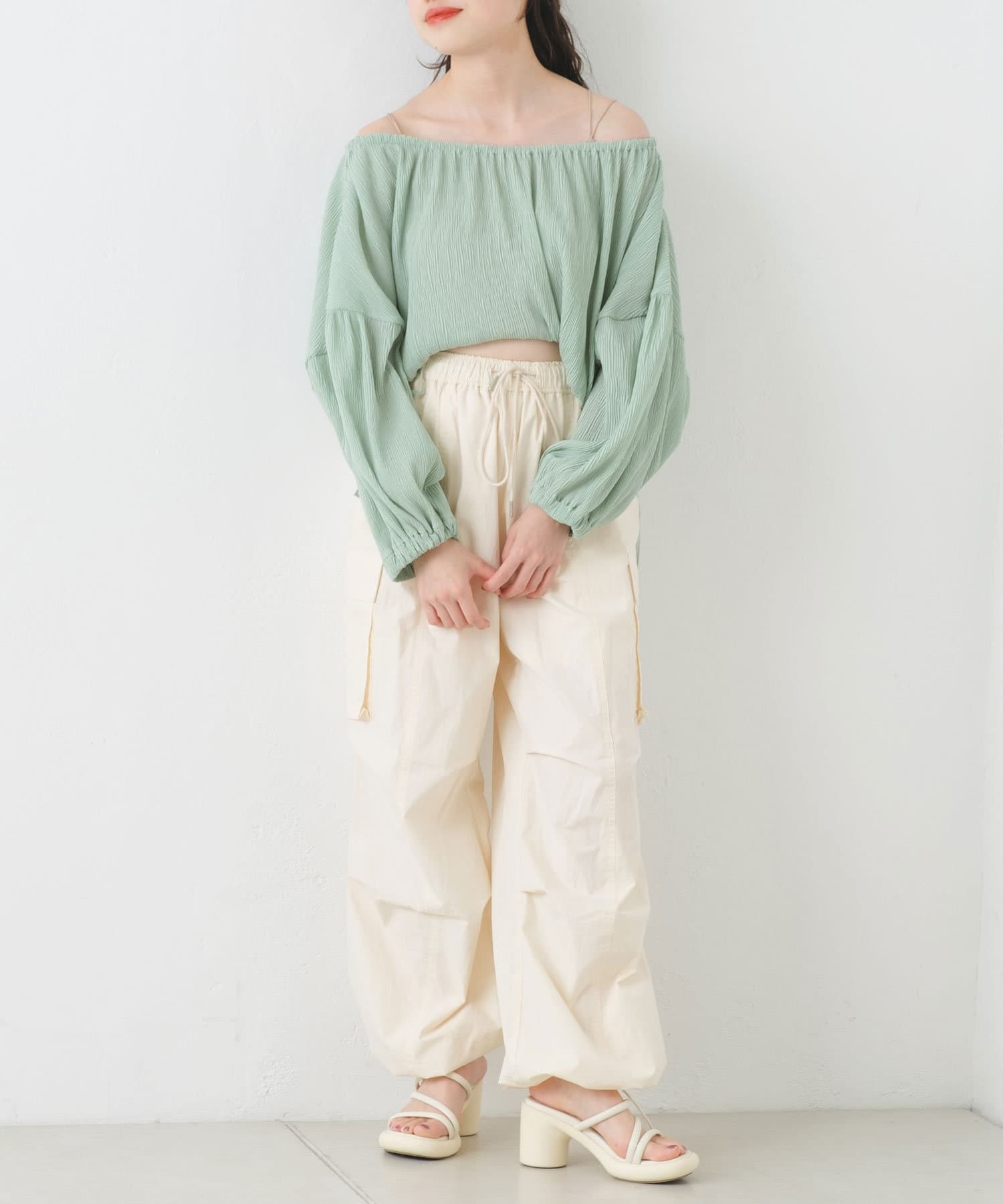 コンパクトなショートトップスと合わせて、女性らしさを際立たせるスタイリングがオススメ。