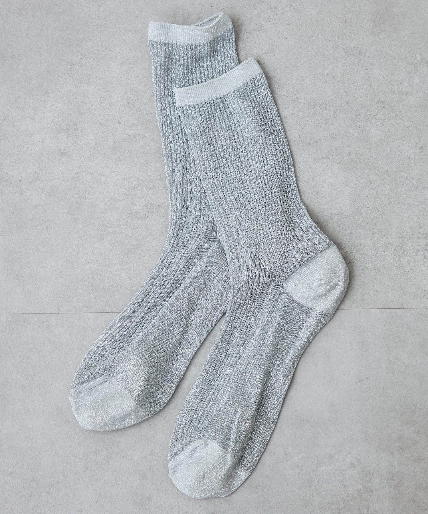 シンプルな無地ソックスにラメを散りばめたデザイン。