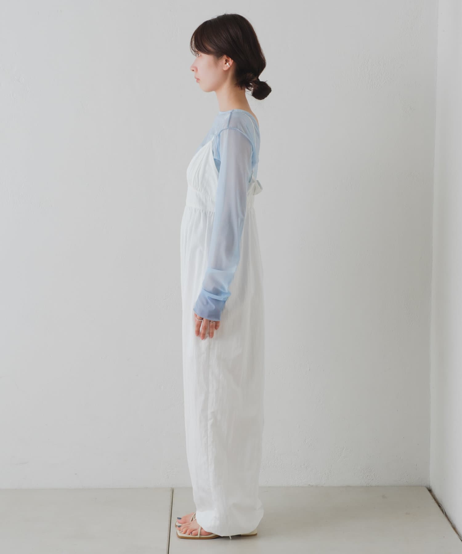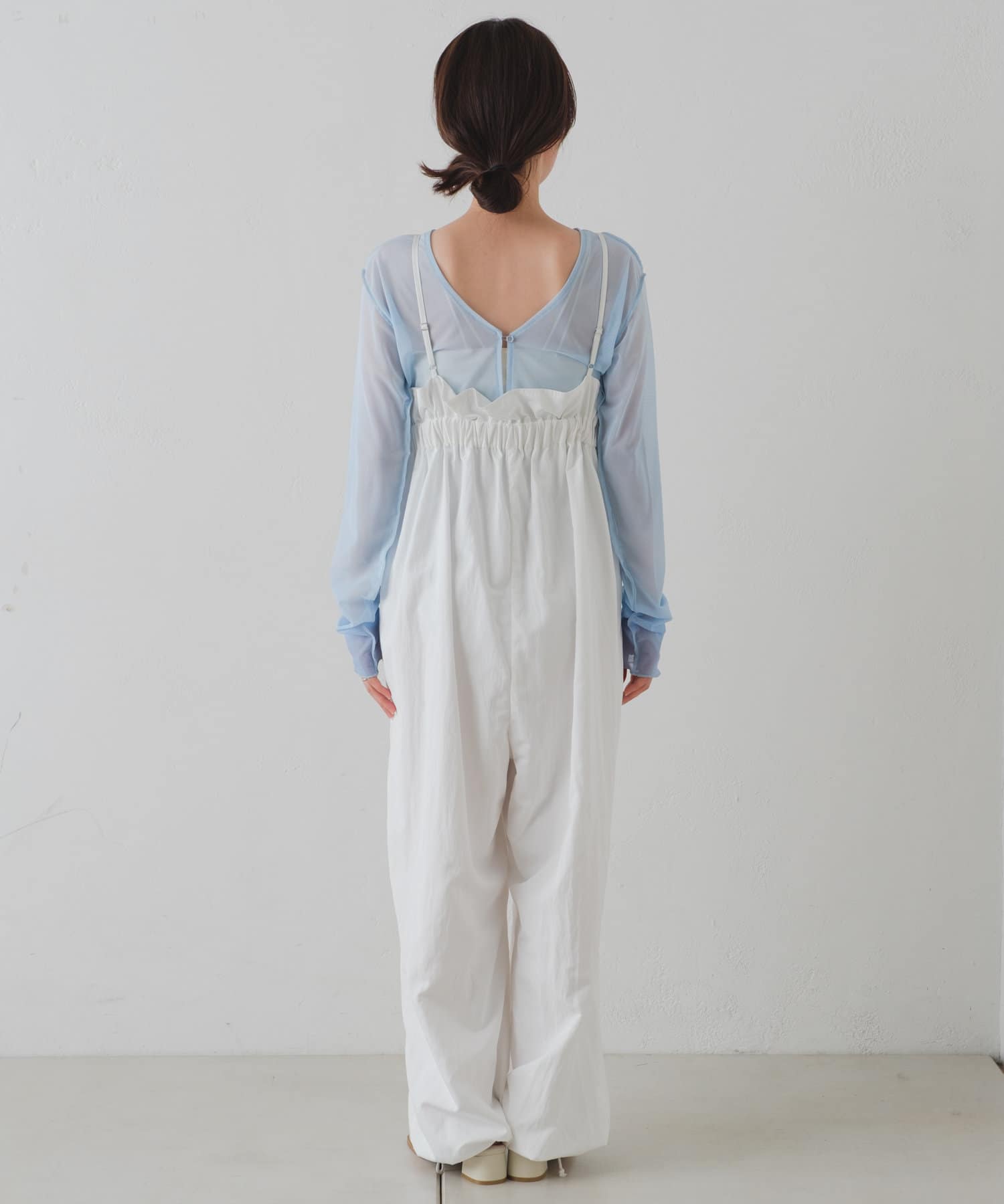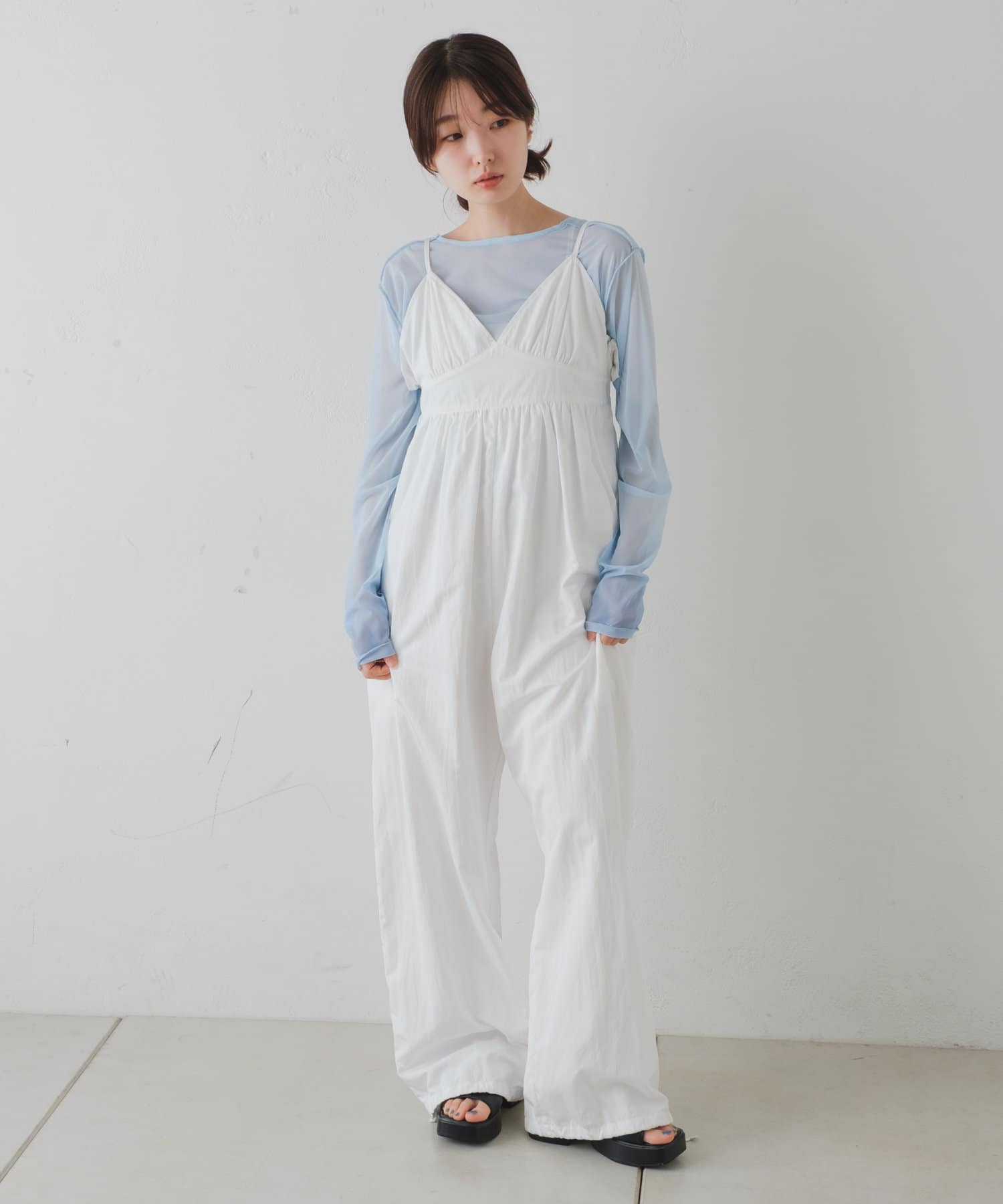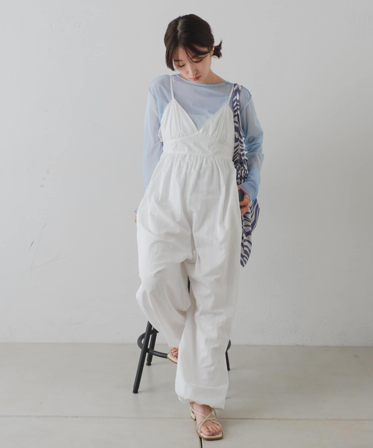 インナーがしっかり見えるキャミサロペットデザインなので、柄インナーやシアーインナーが相性抜群。