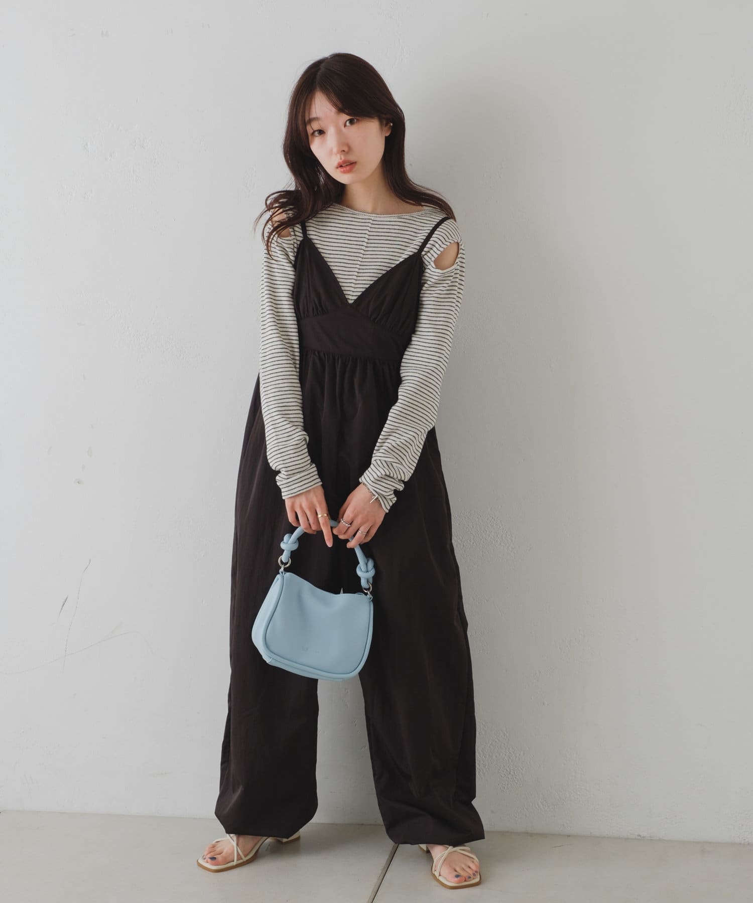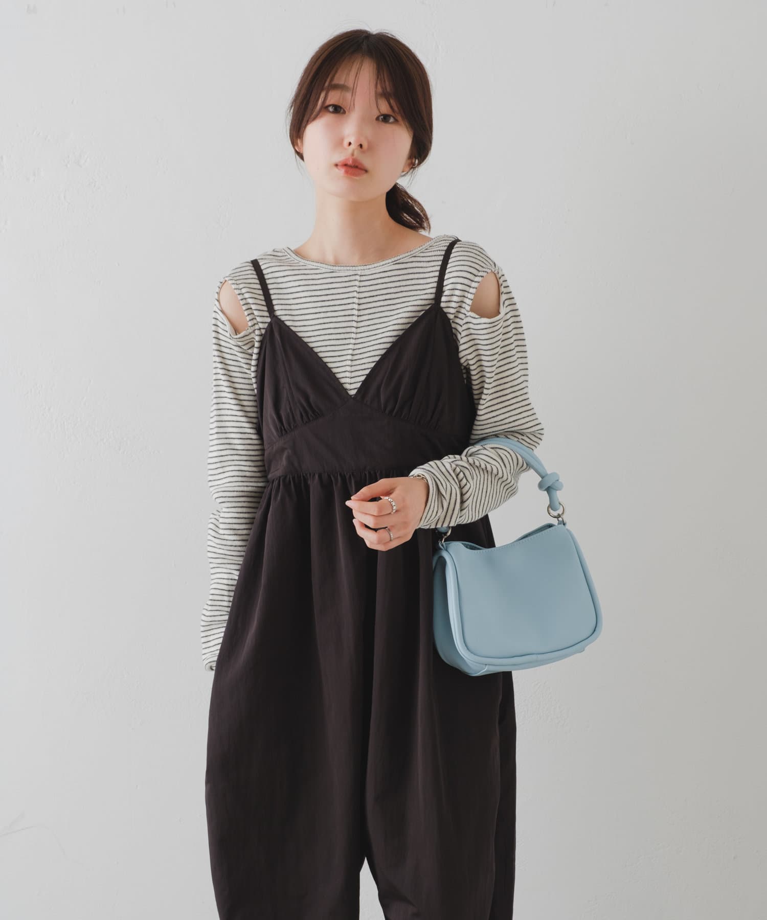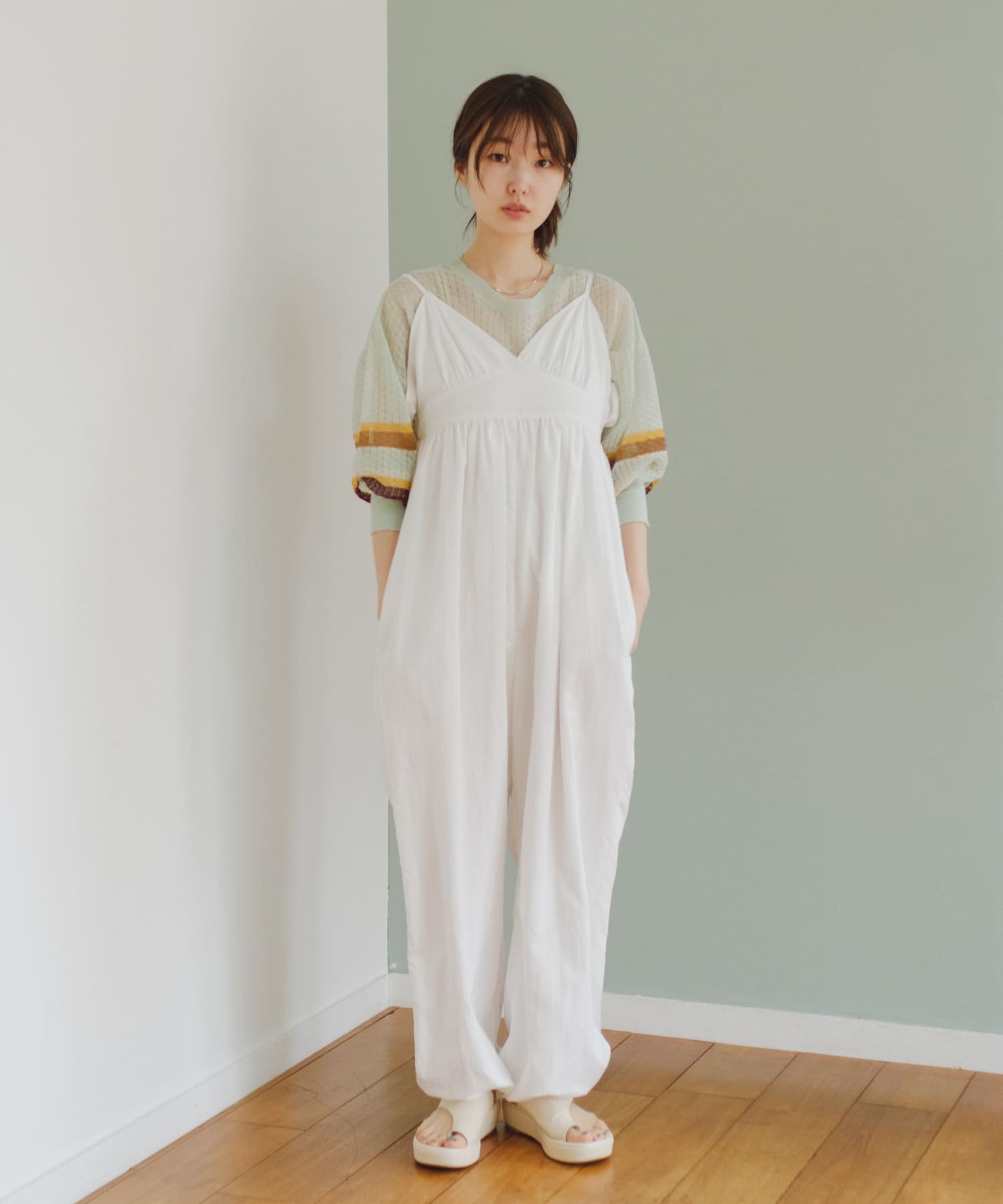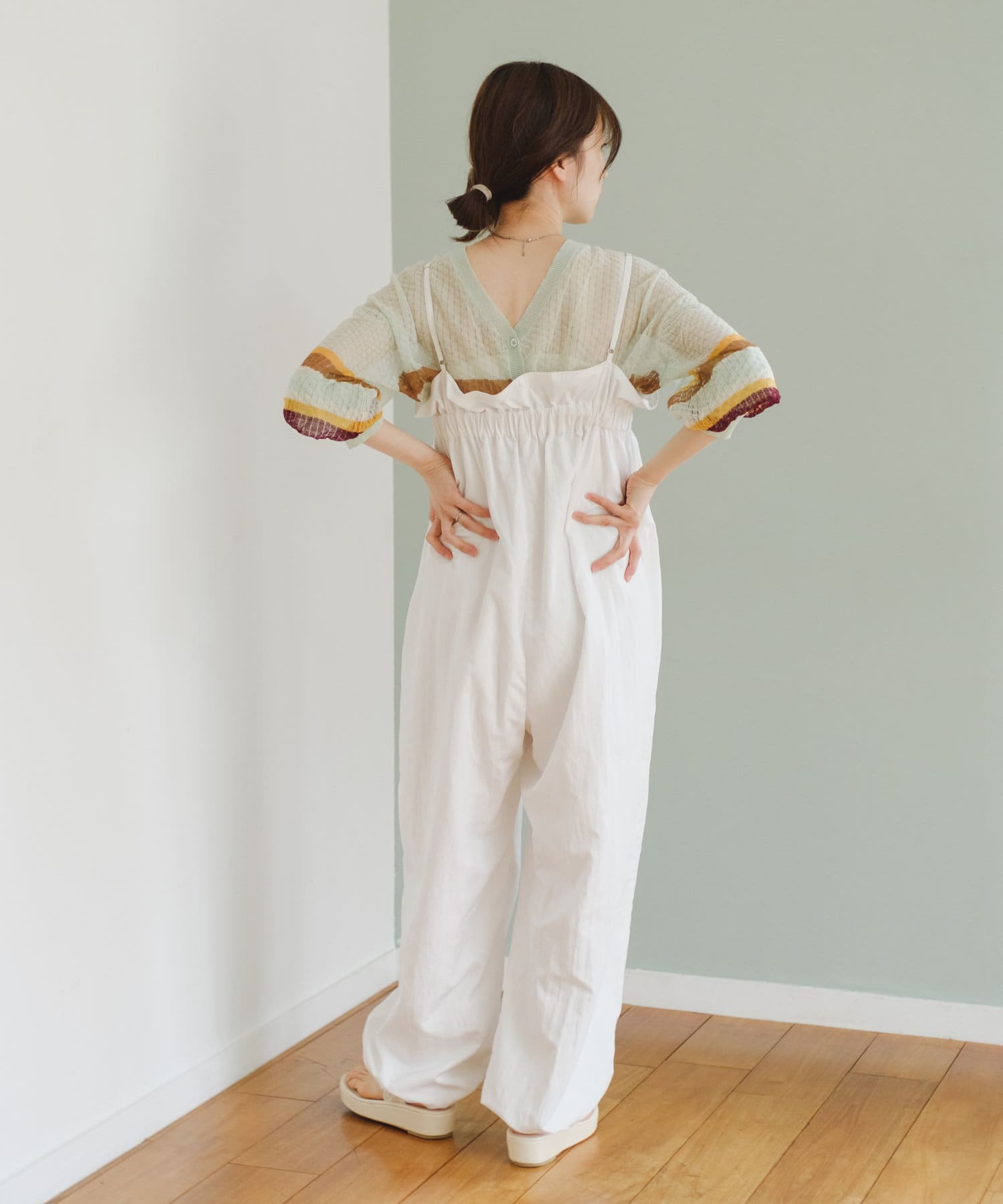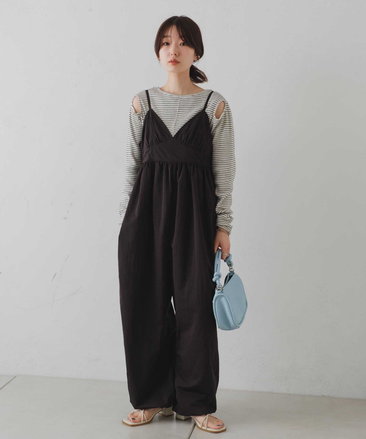 インナーがしっかり見えるキャミサロペットデザインなので、柄インナーやシアーインナーが相性抜群。