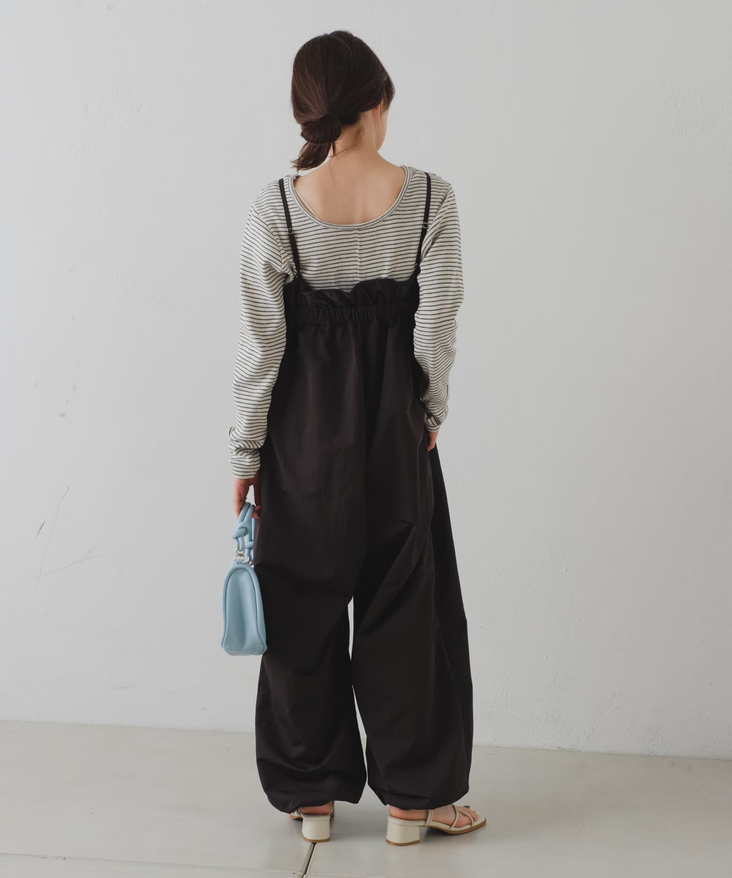 ナイロン素材が今年らしい、サロペットが登場