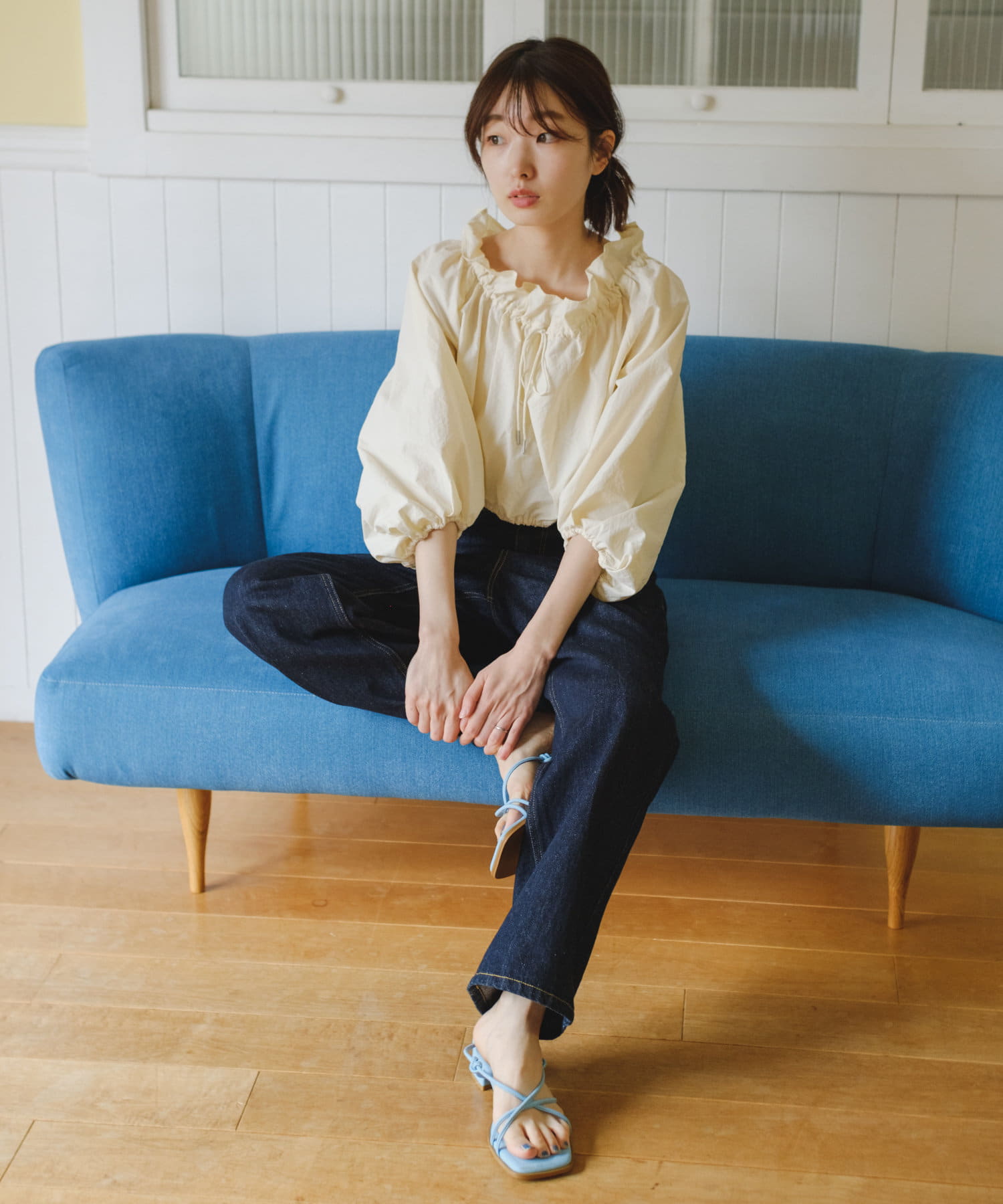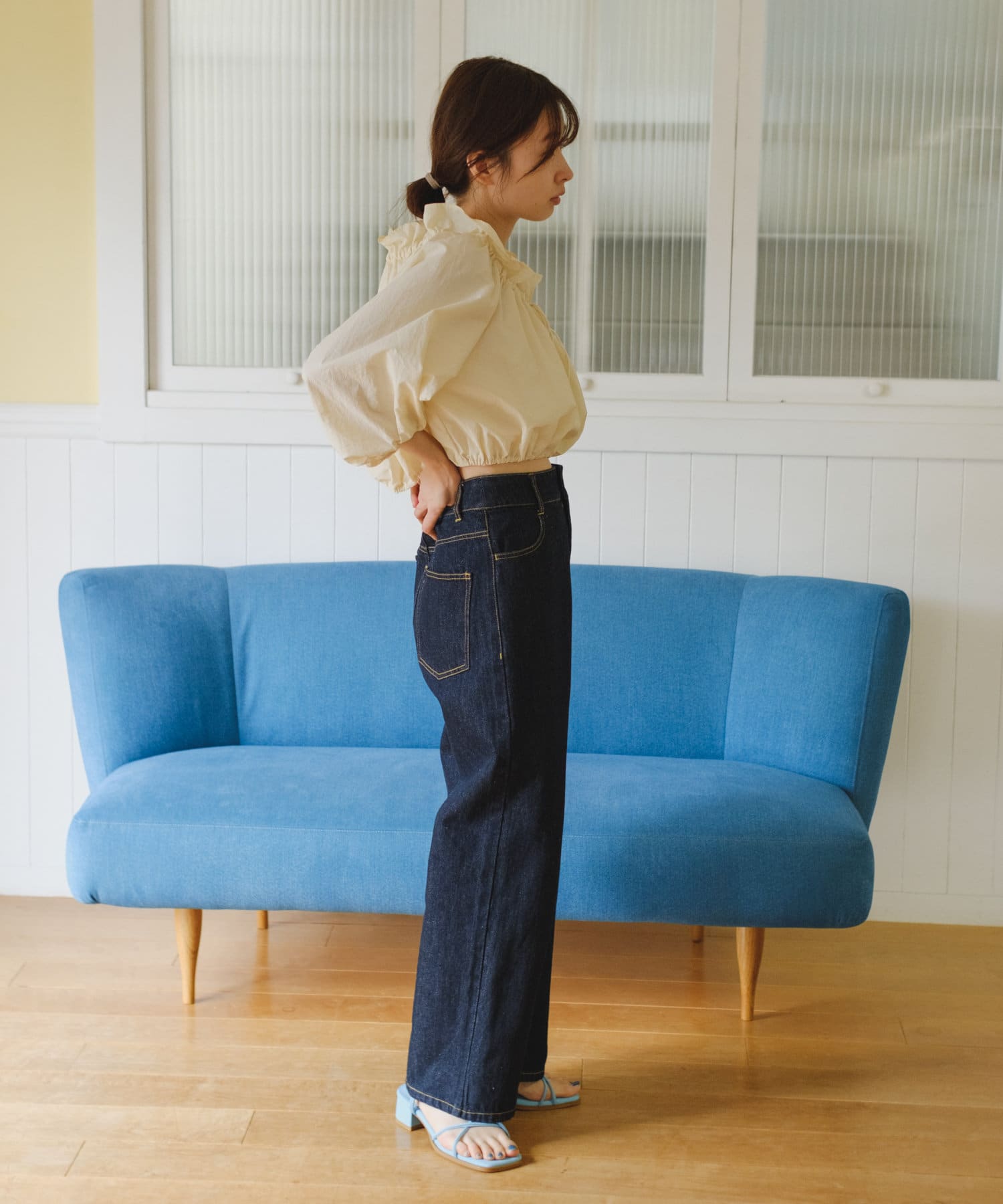程よくフィット感のあるハイウエストのシルエットなのでスタイルアップが叶います。