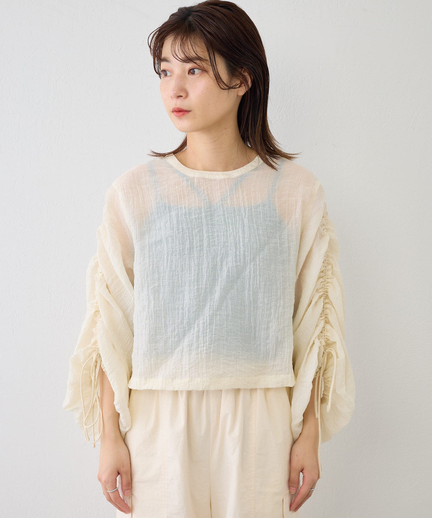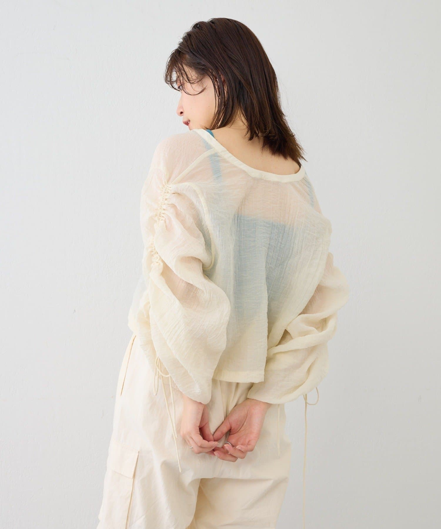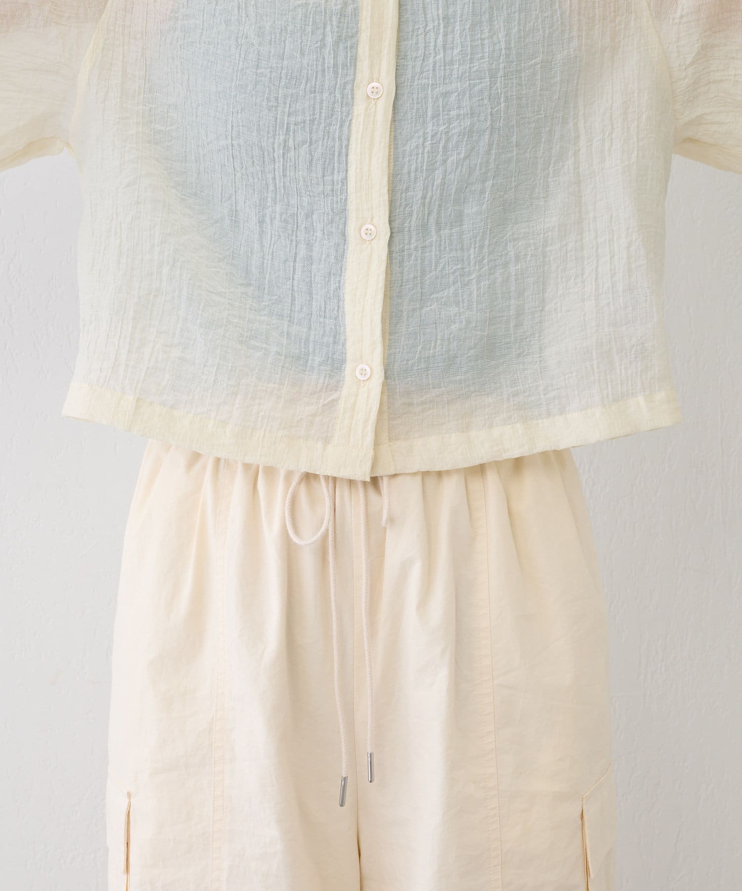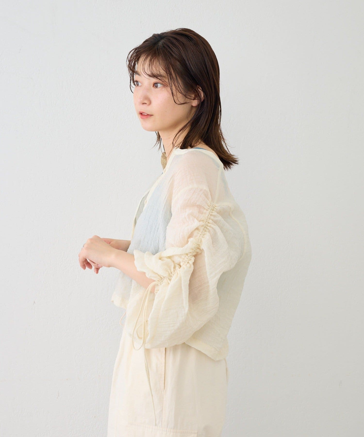 程よい透け感が涼し気な女性らしいシアーシャツ。