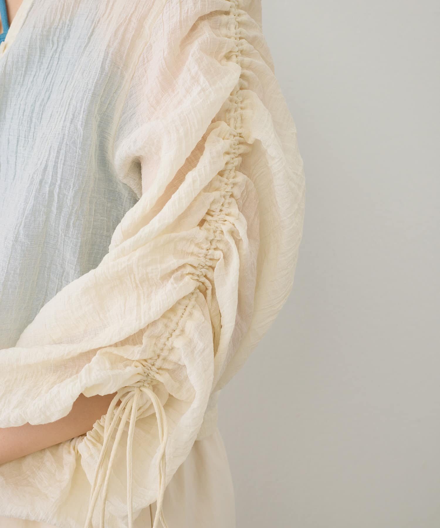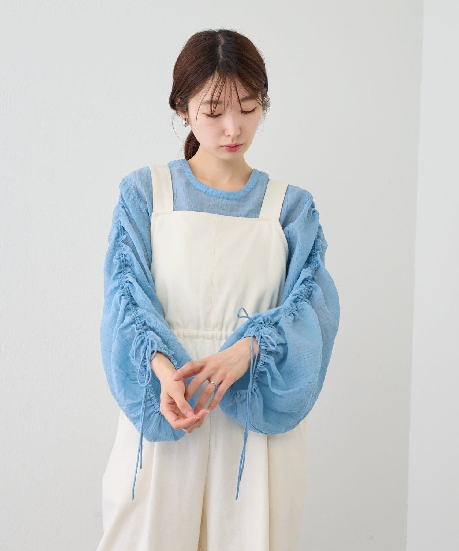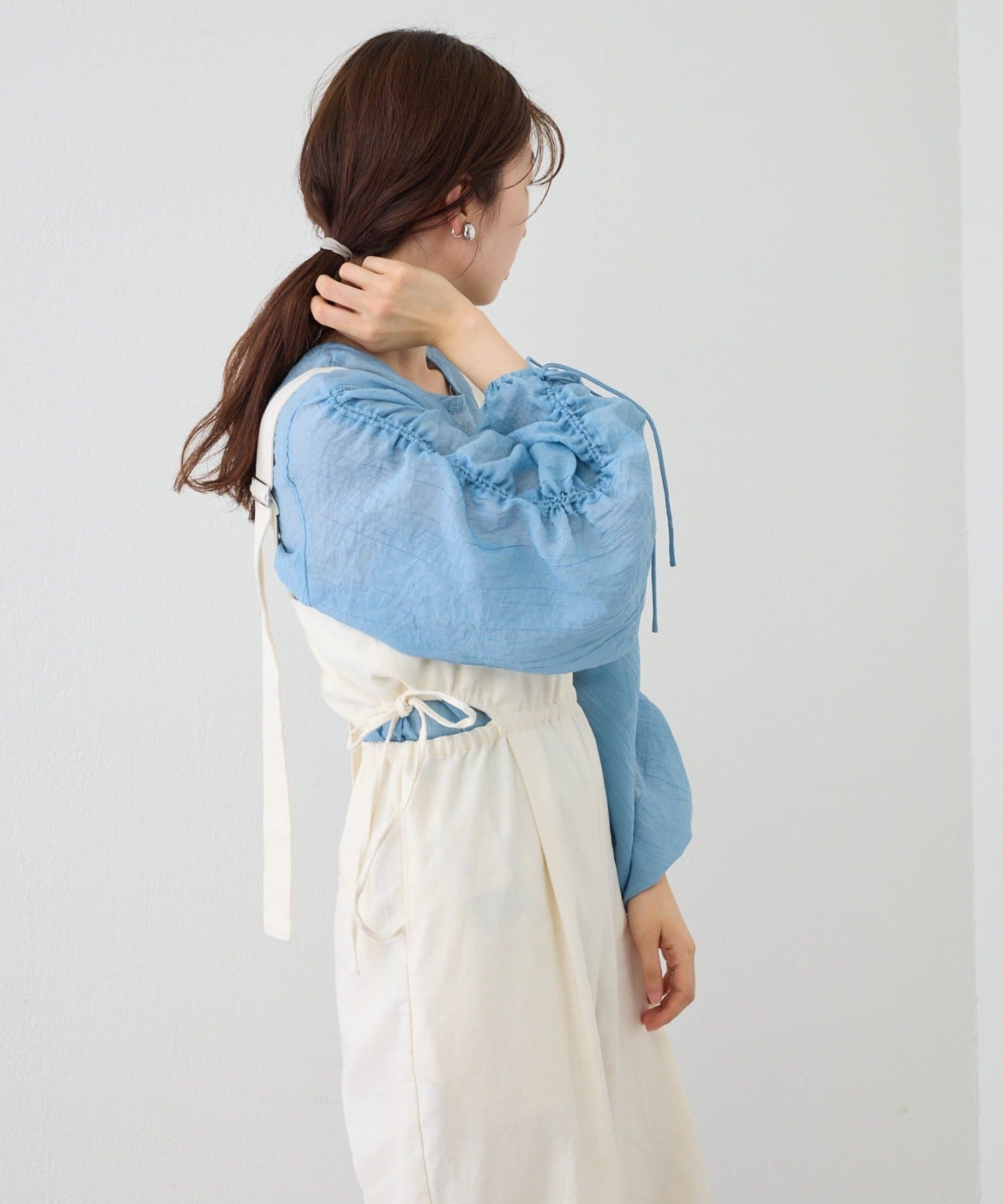 袖はドロスト仕様になっており、お好みでギャザーのボリュームと丈を調節できます。