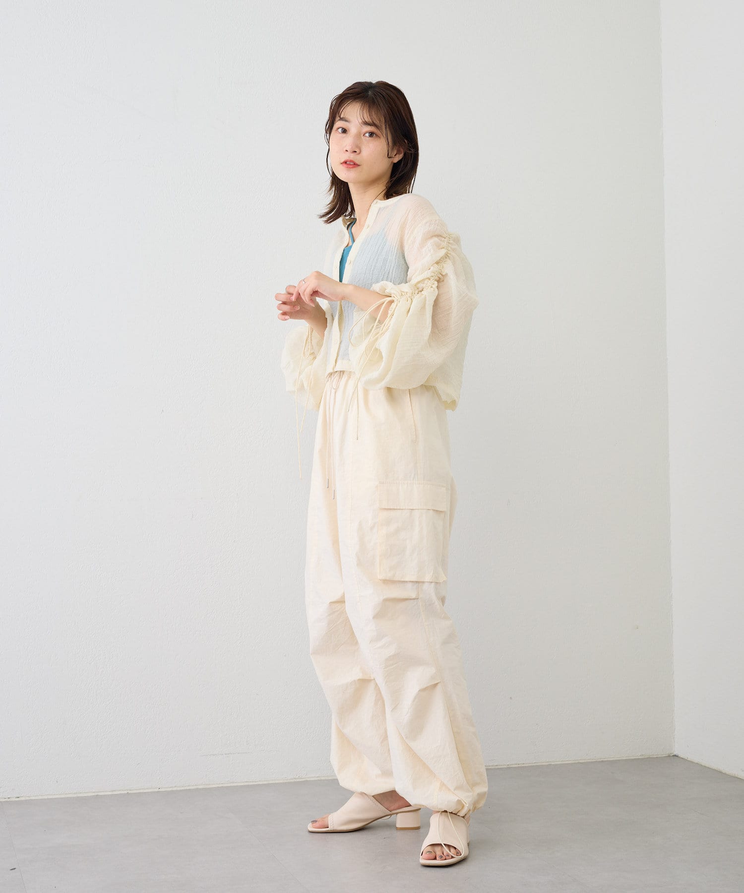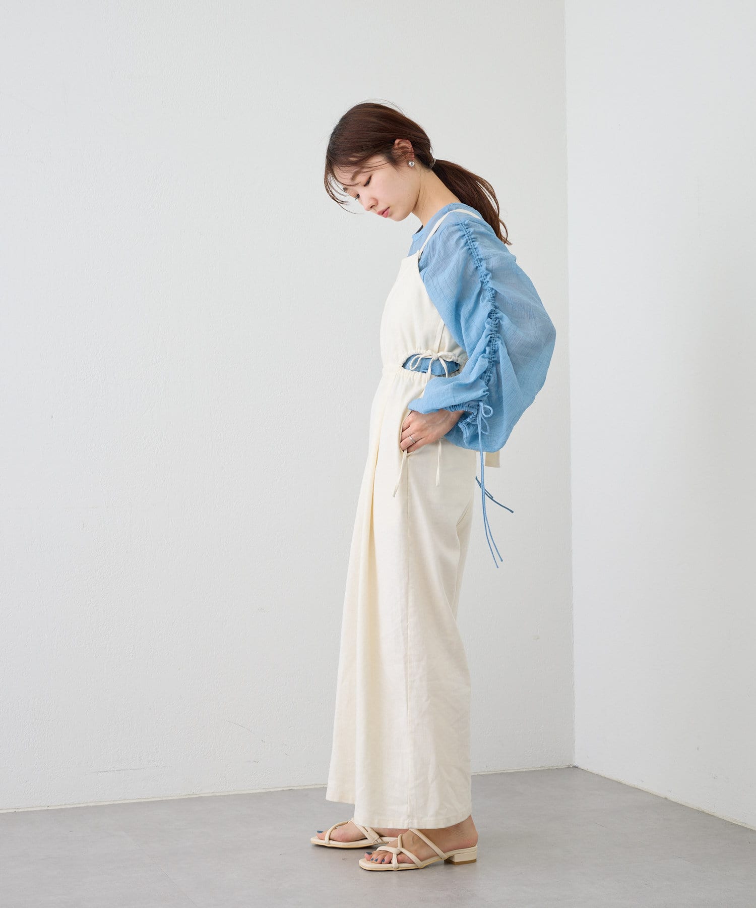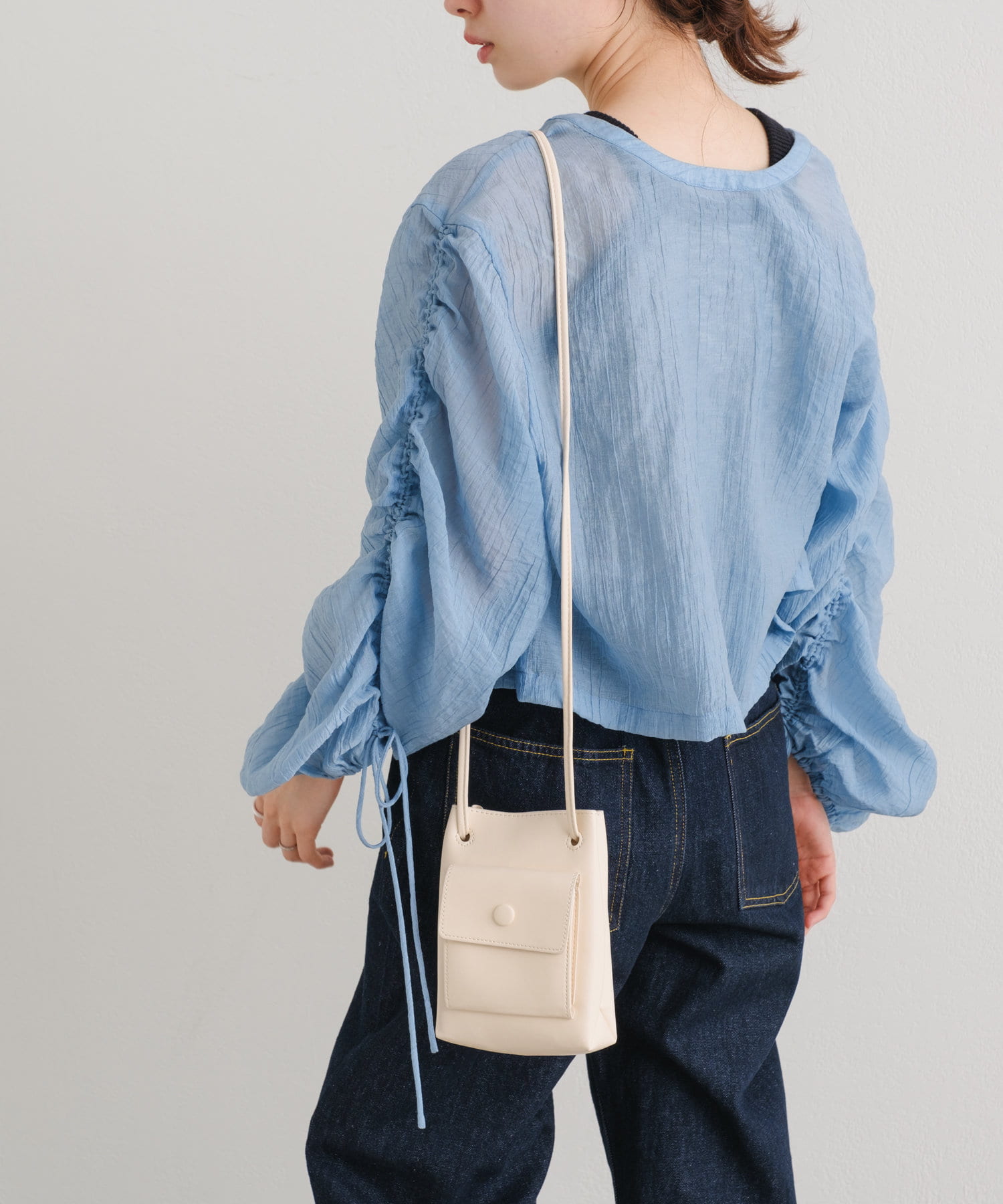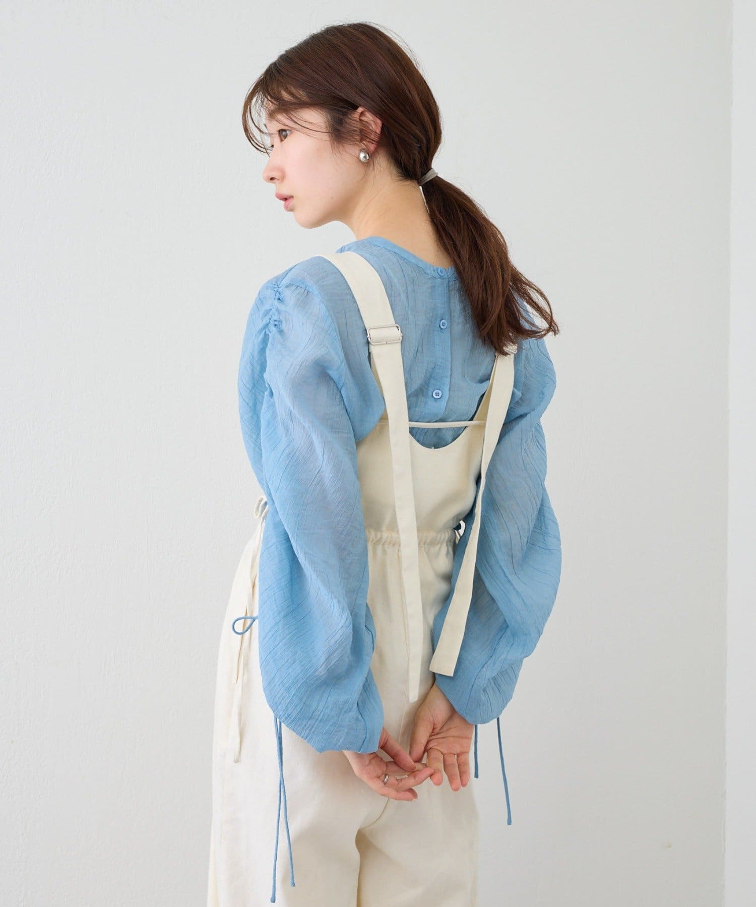 袖はドロスト仕様になっており、お好みでギャザーのボリュームと丈を調節できます。
