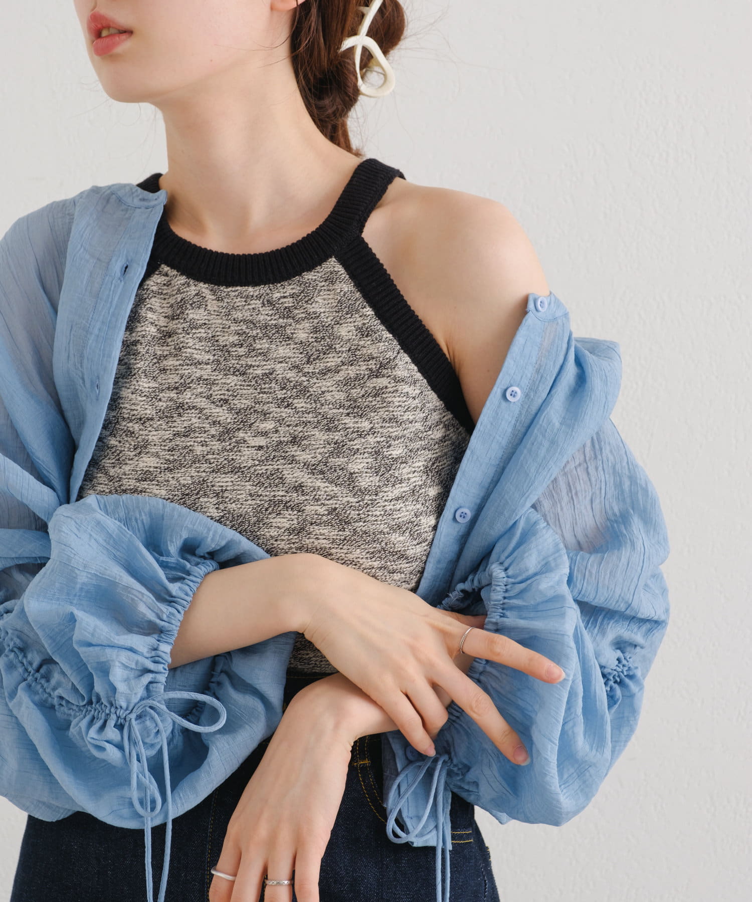 透け感があるのでレイヤードスタイルを楽しめます。